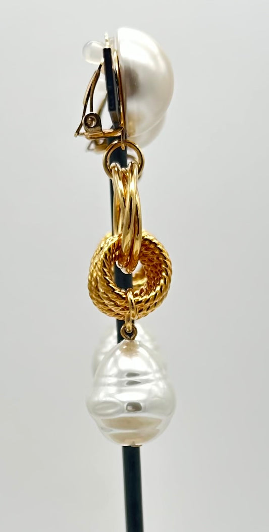 Boucles d'oreilles dorées cabochon perle - Francine BRAMLI