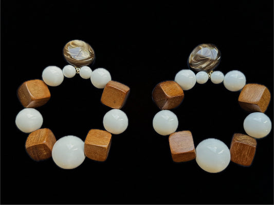 Bastille Jules - Cercle en perles blanches et cubes bois - Francine BRAMLI