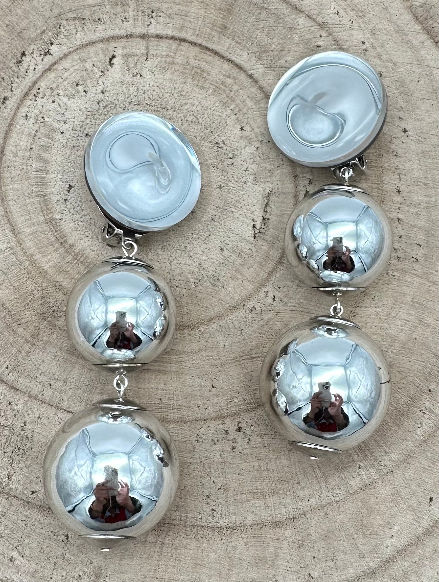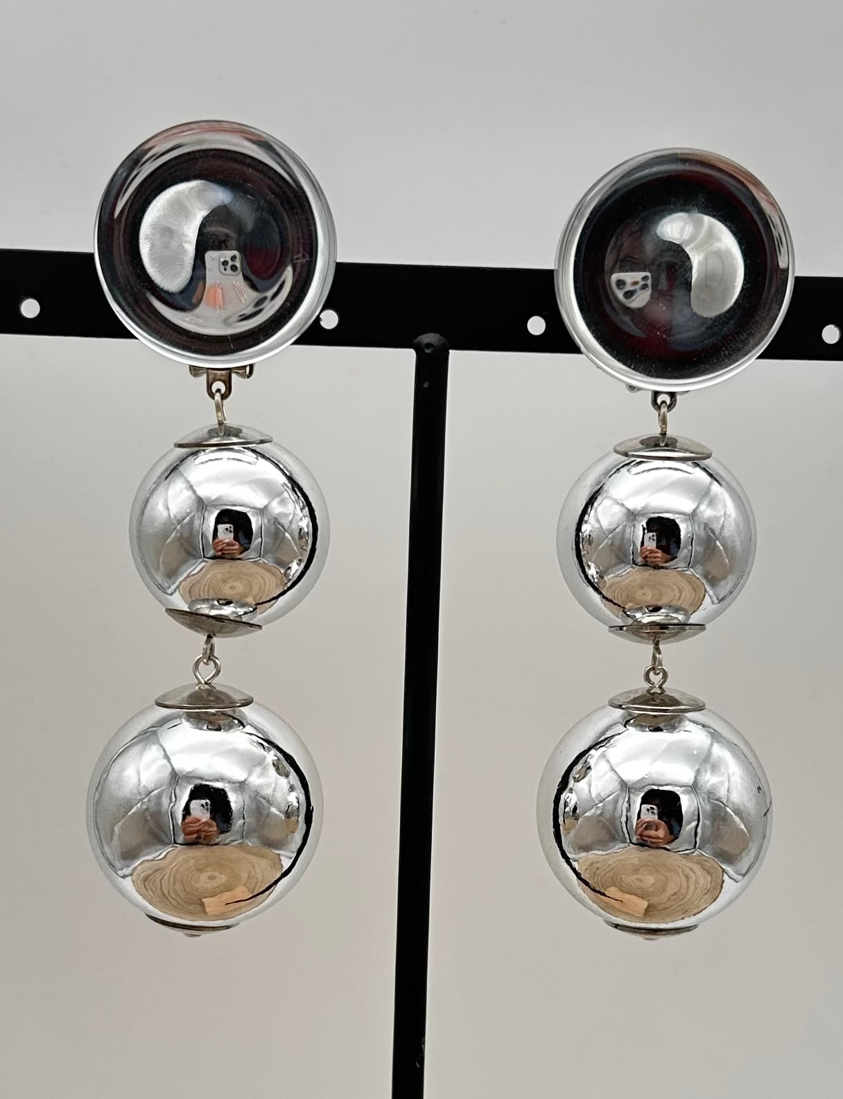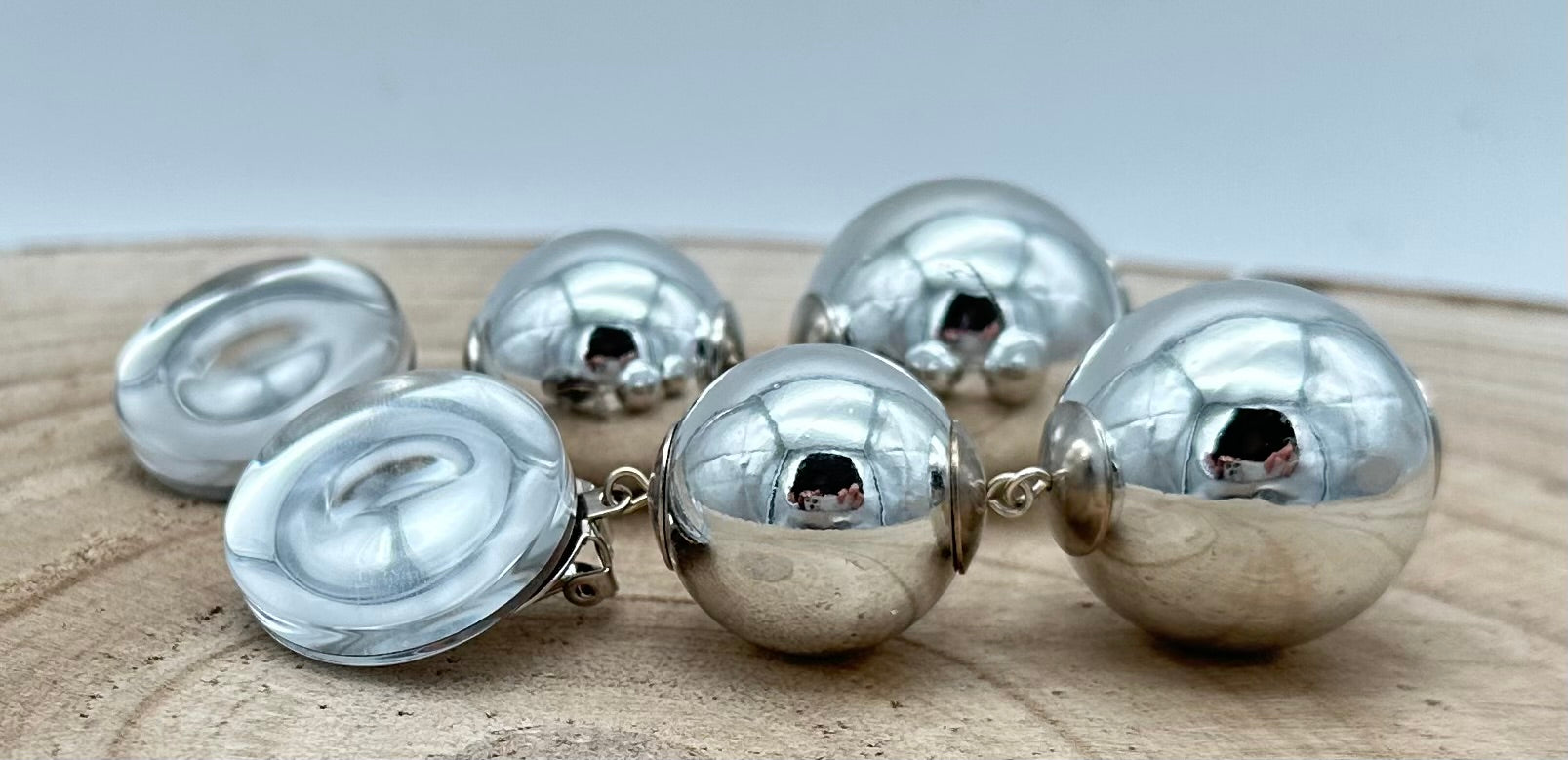 Boucle d’oreille Argent, perle , cabochon miroir - Francine BRAMLI