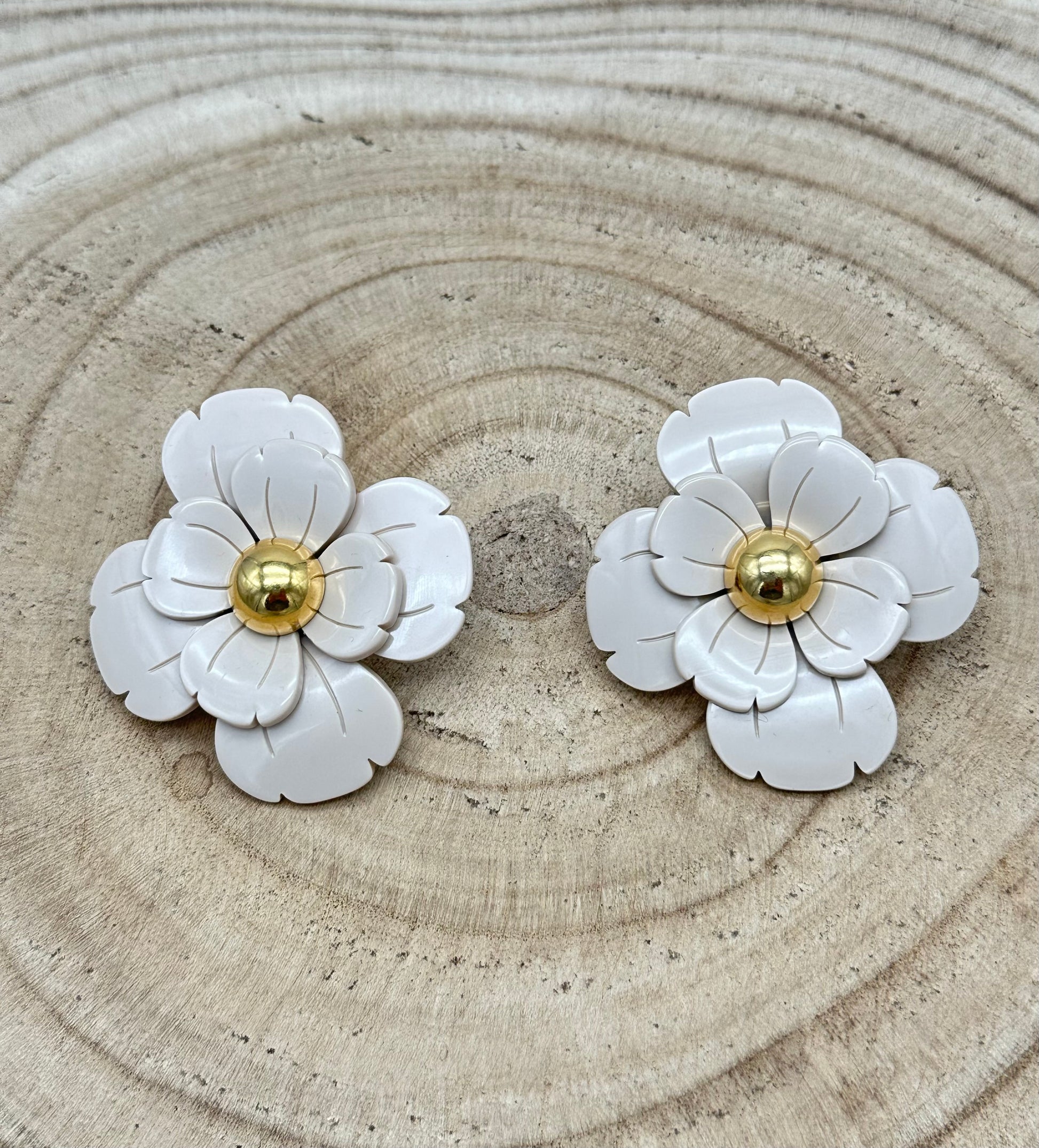 Boucles d’oreilles cabochons fleurs, acétate - Francine BRAMLI