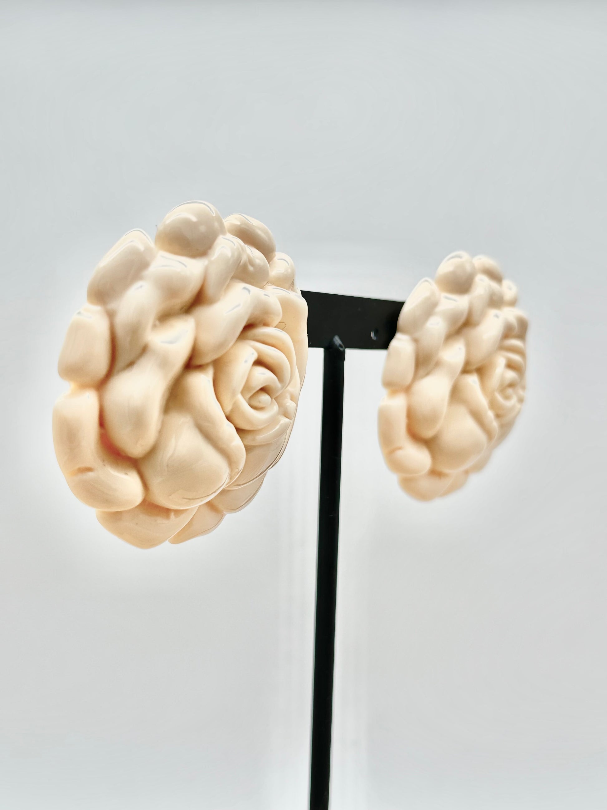 Boucles d’oreilles cabochons fleurs, roses beiges - Francine BRAMLI