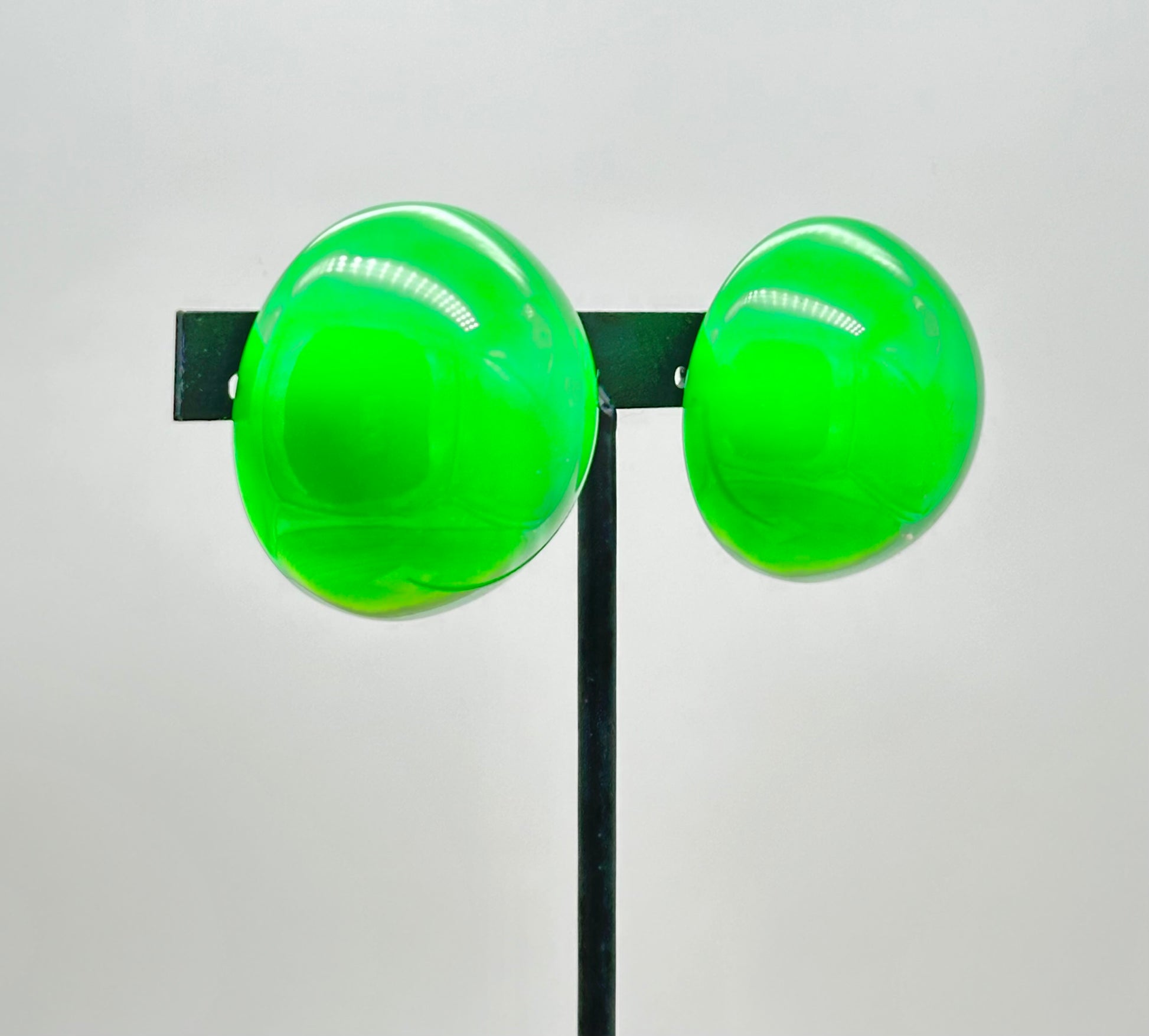 Boucles d’oreilles cabochons verts en résine végétale - Francine BRAMLI
