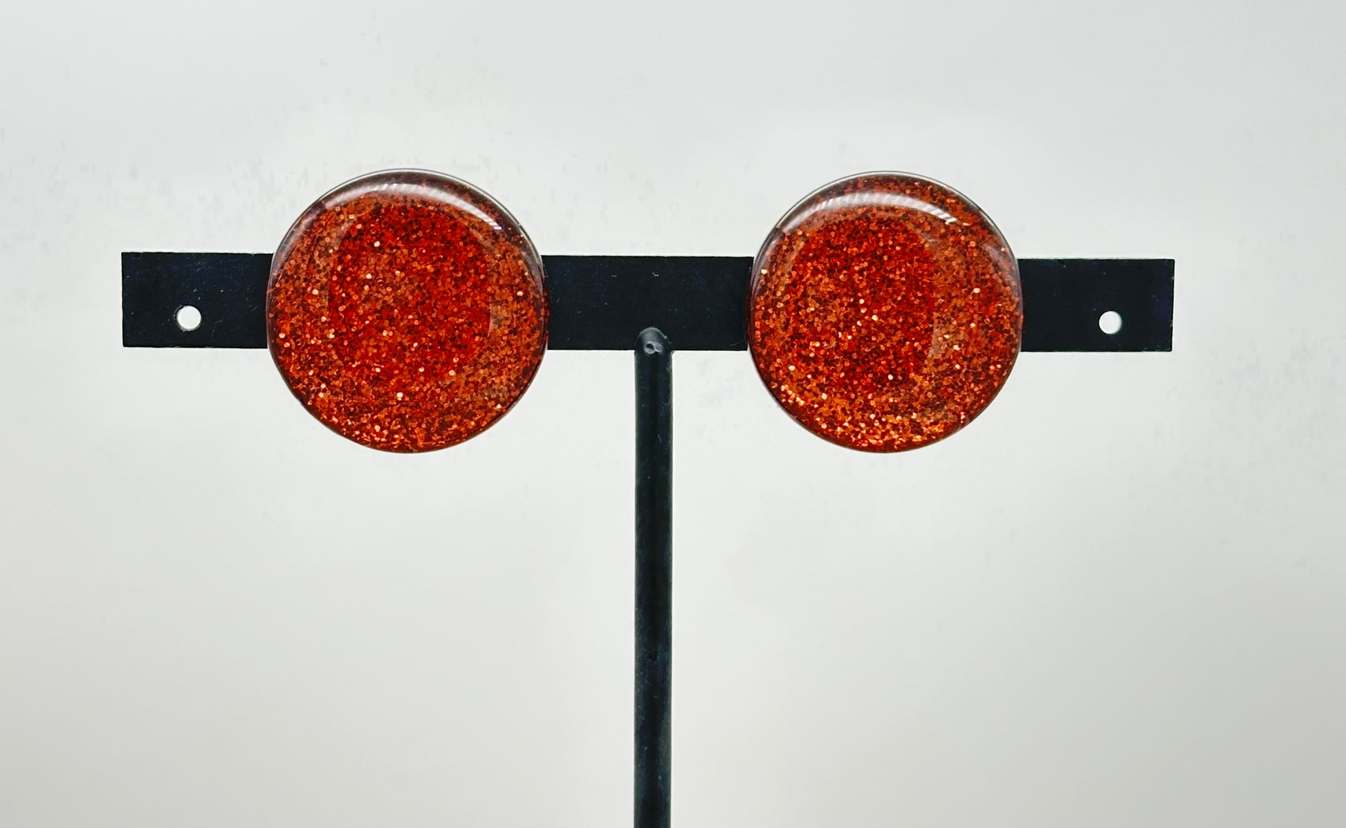 Boucles d’oreilles cabochons marrons pailletés - Francine BRAMLI