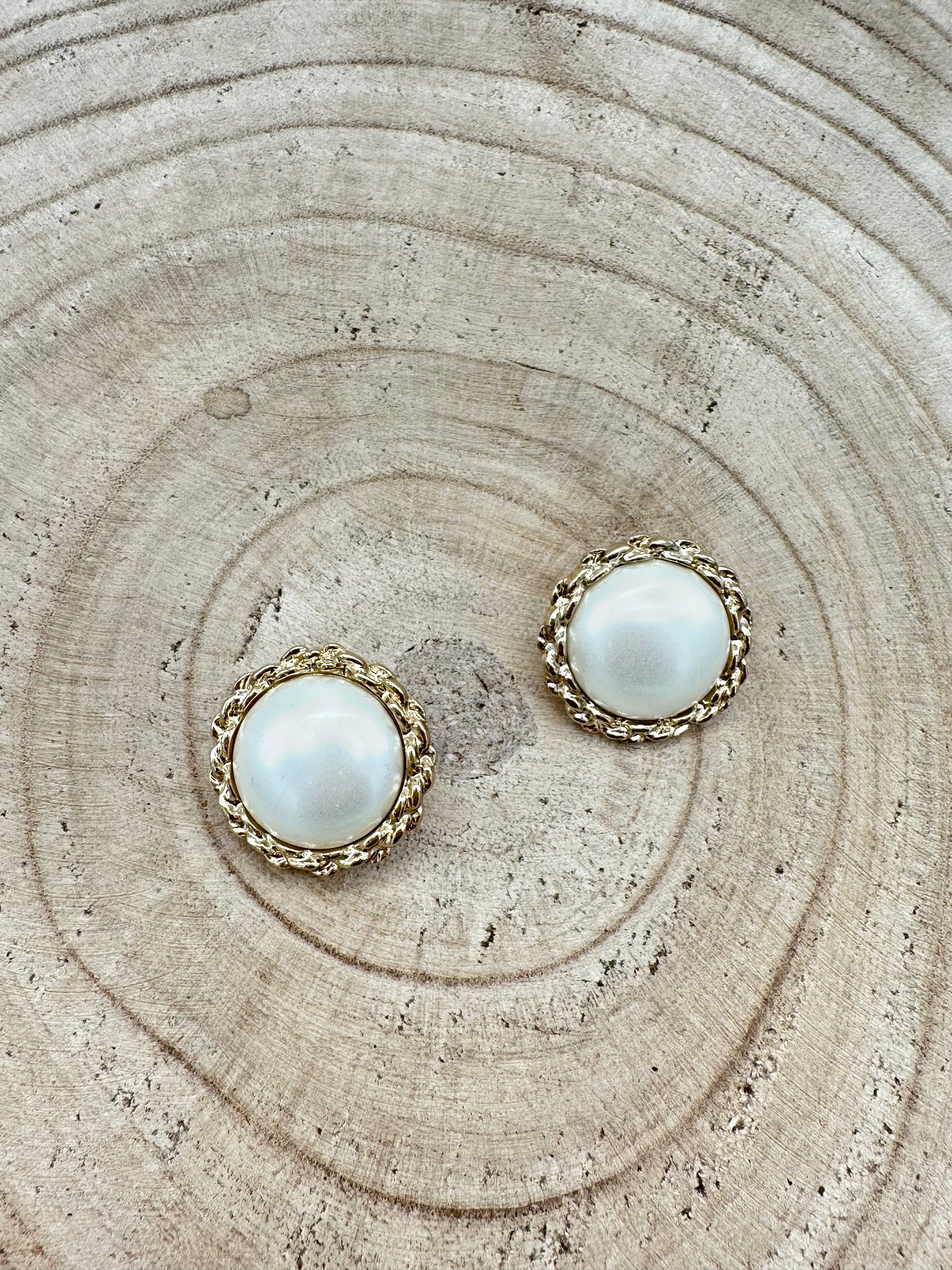 Boucles d’oreilles cabochons en perles et couronne dorée - Francine BRAMLI