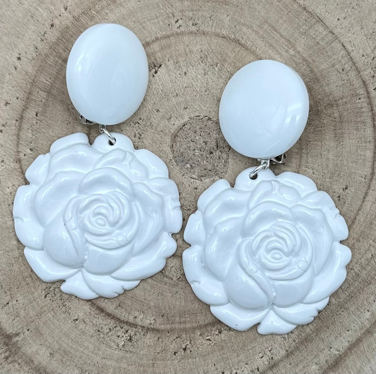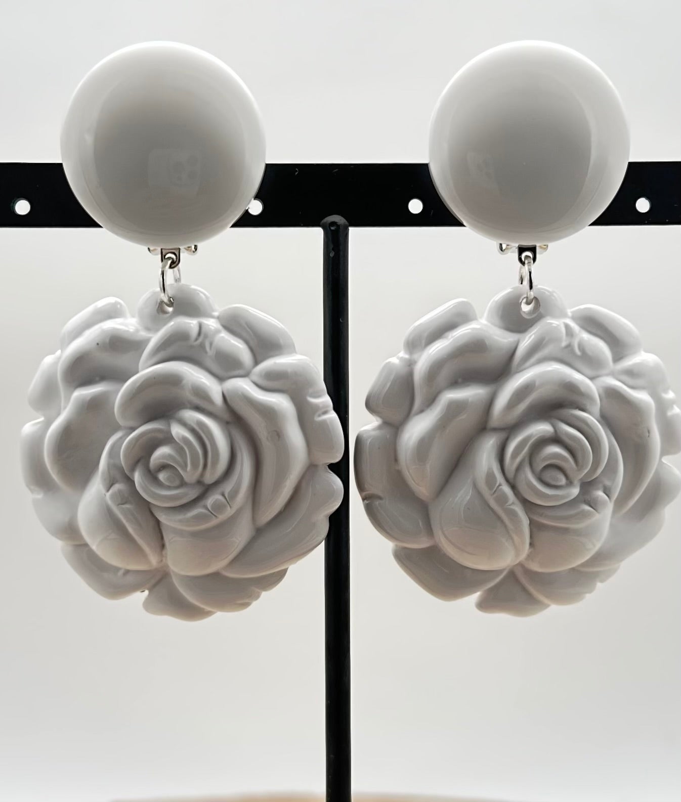 Boucle d’oreille Camélia, fleur blanche - Francine BRAMLI