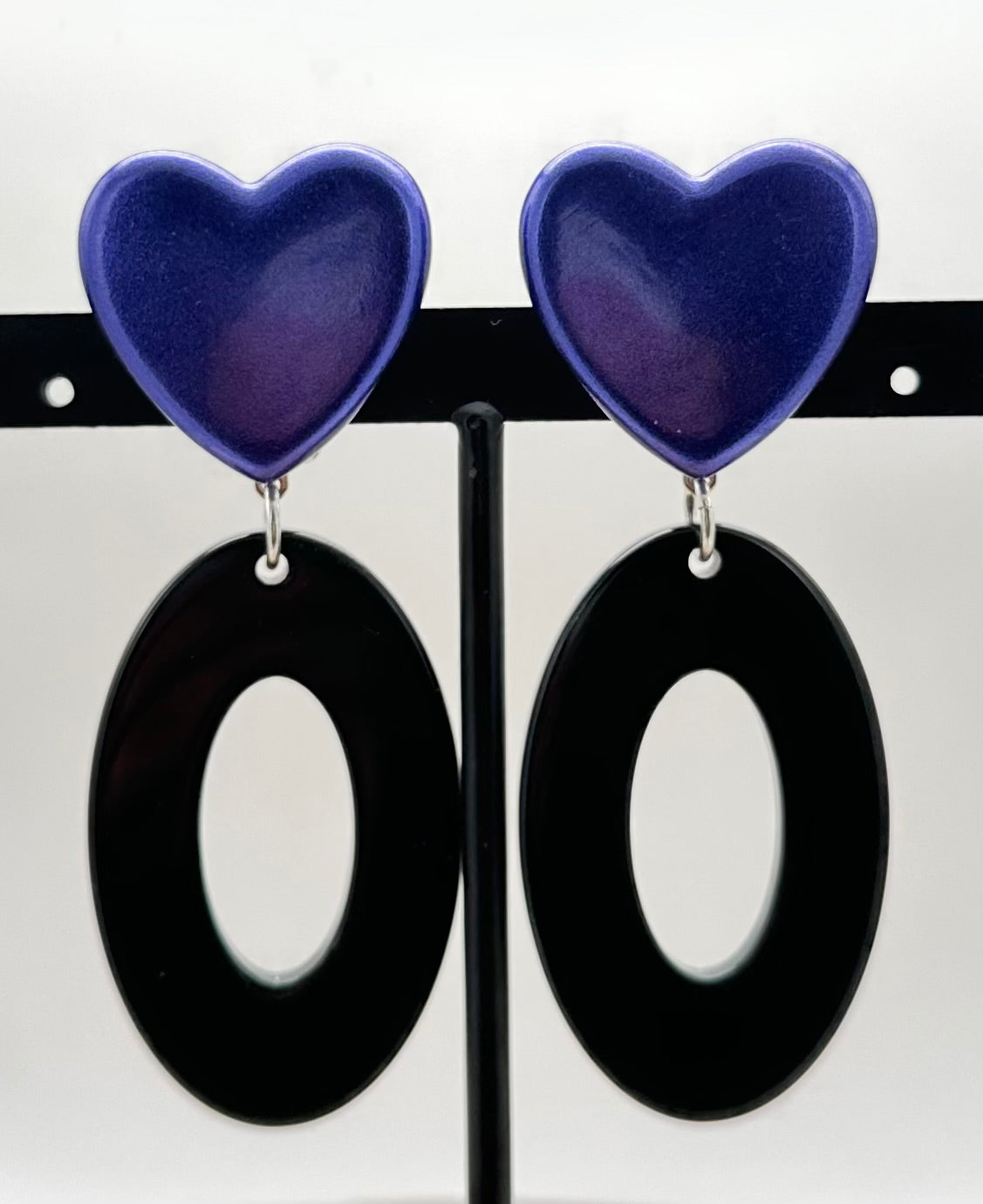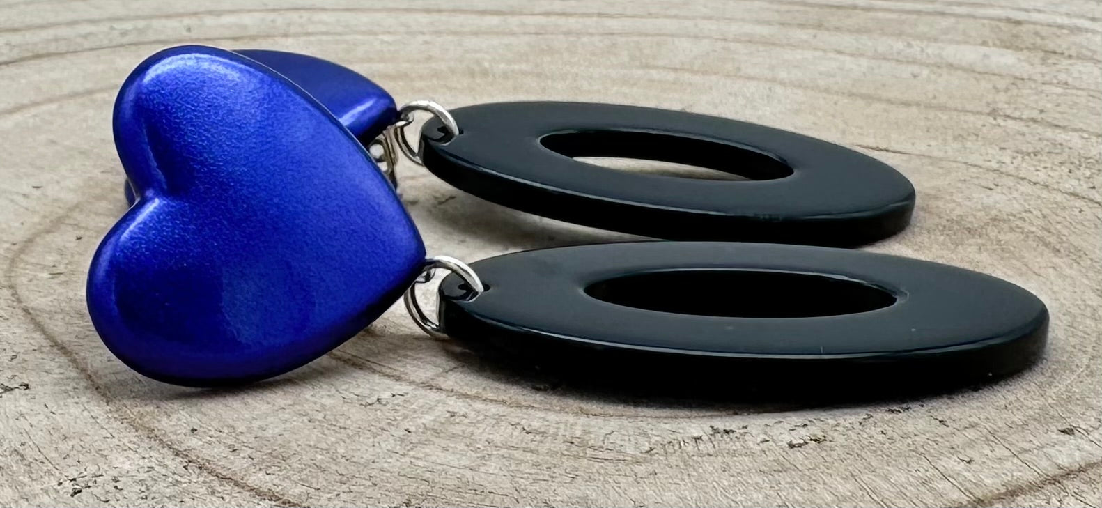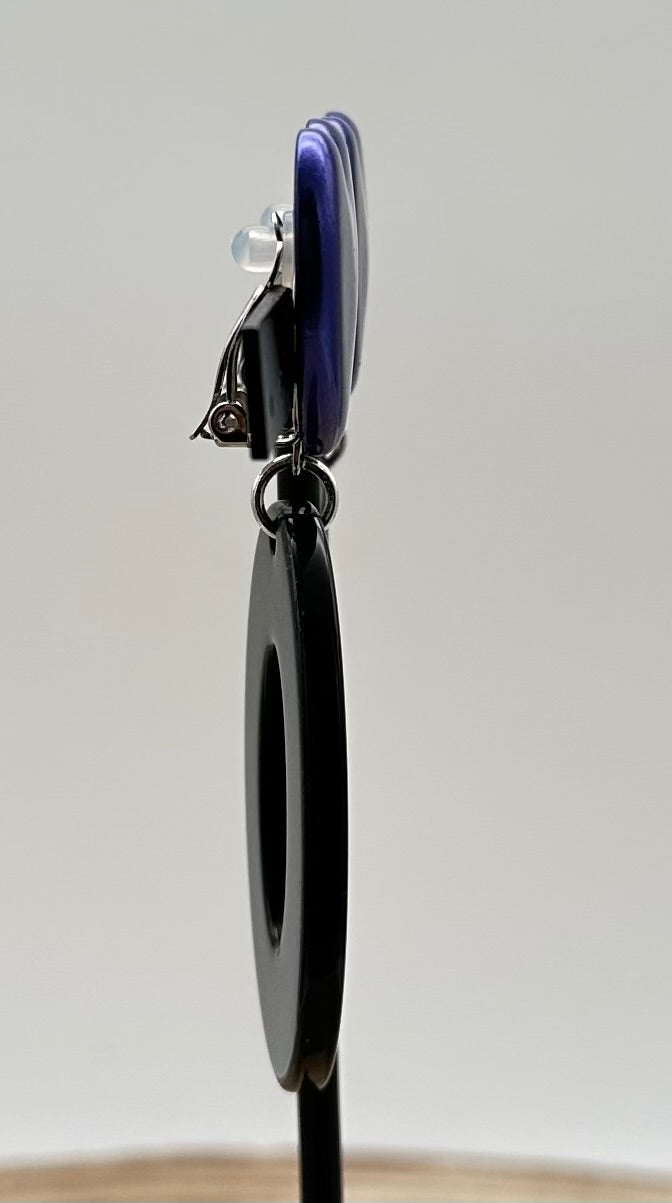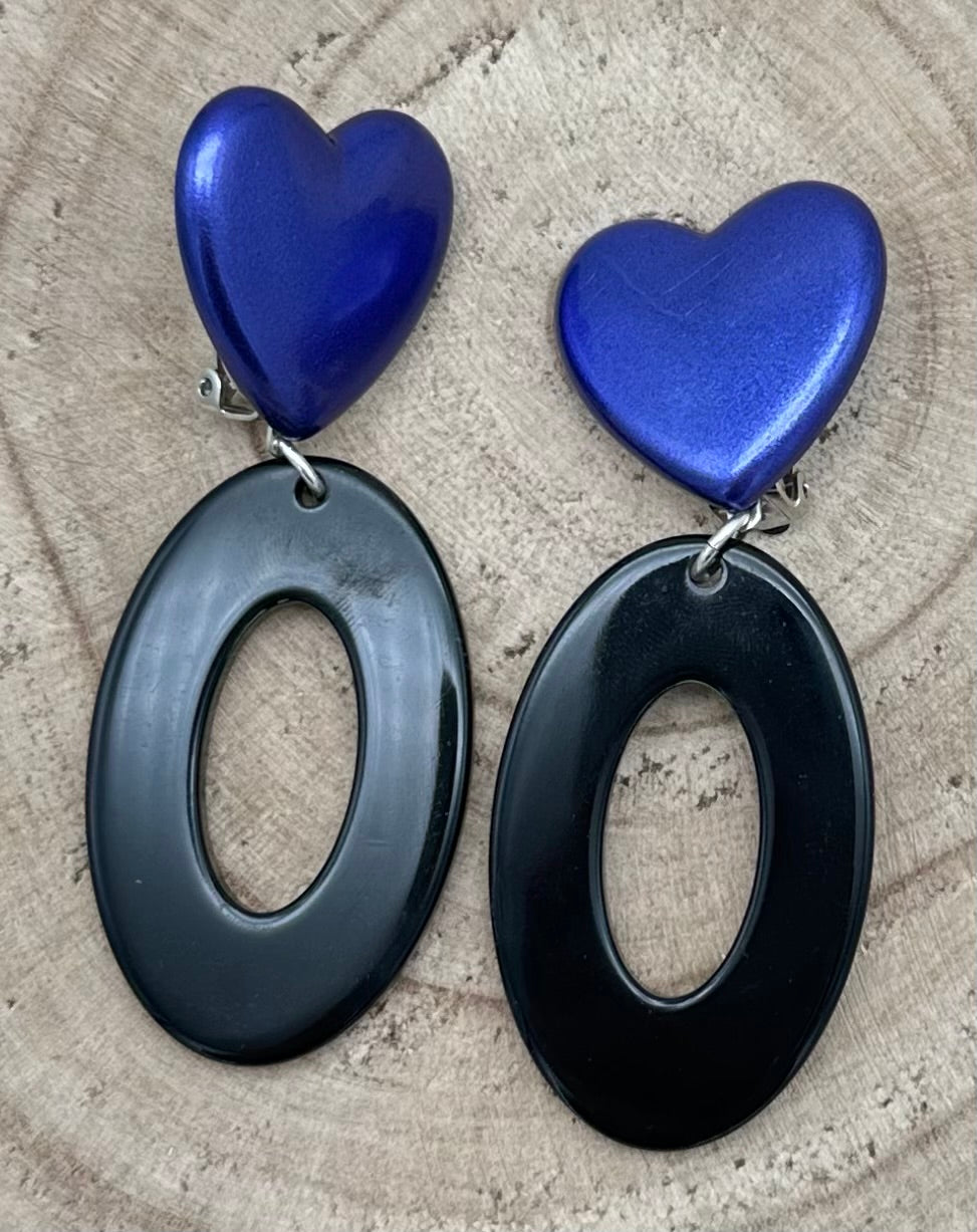 Boucle d’oreille Cœur, bleu pailletée - Francine BRAMLI