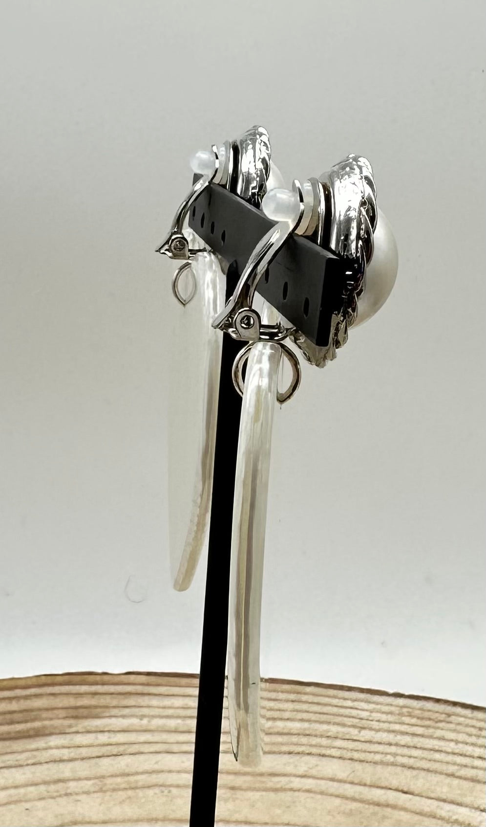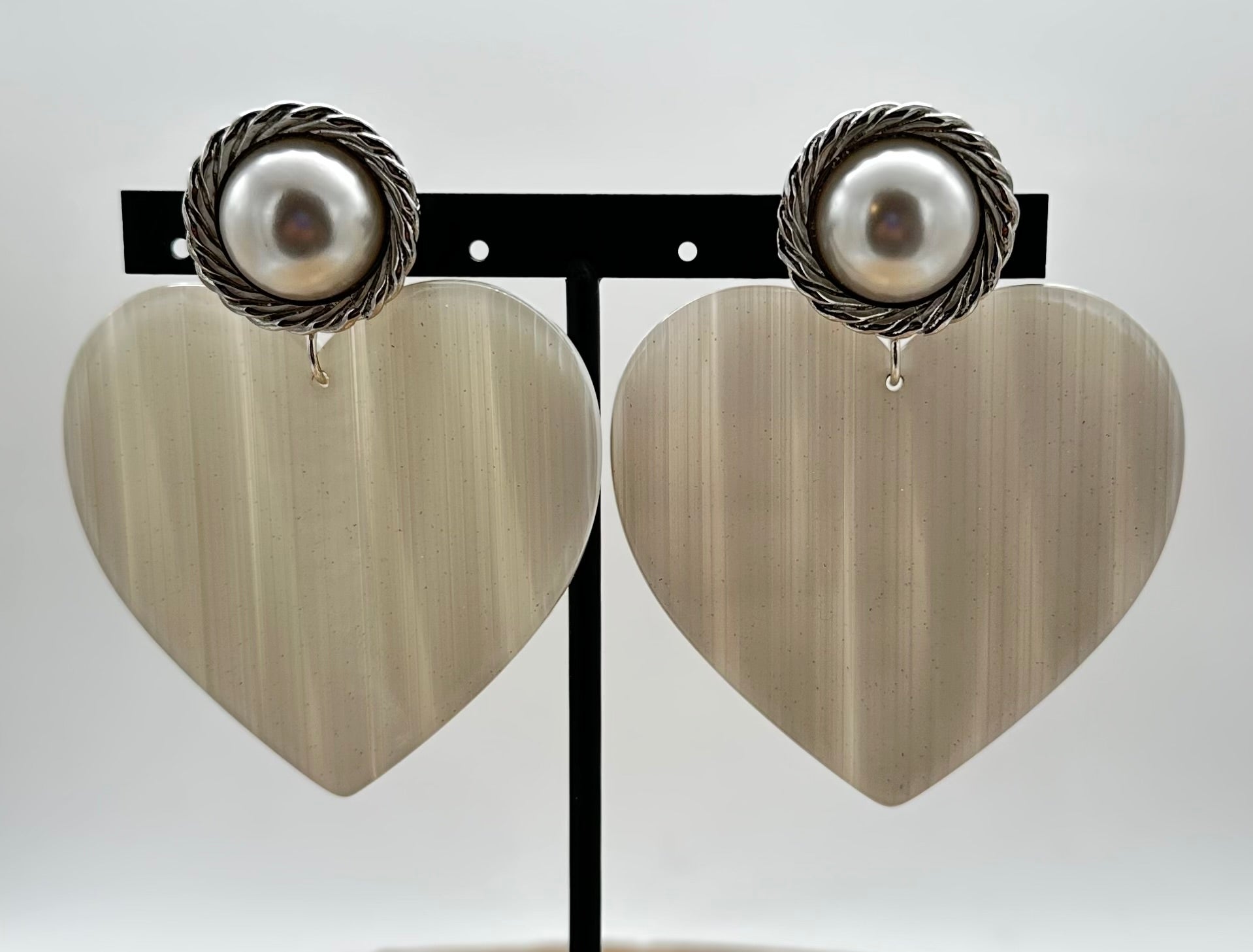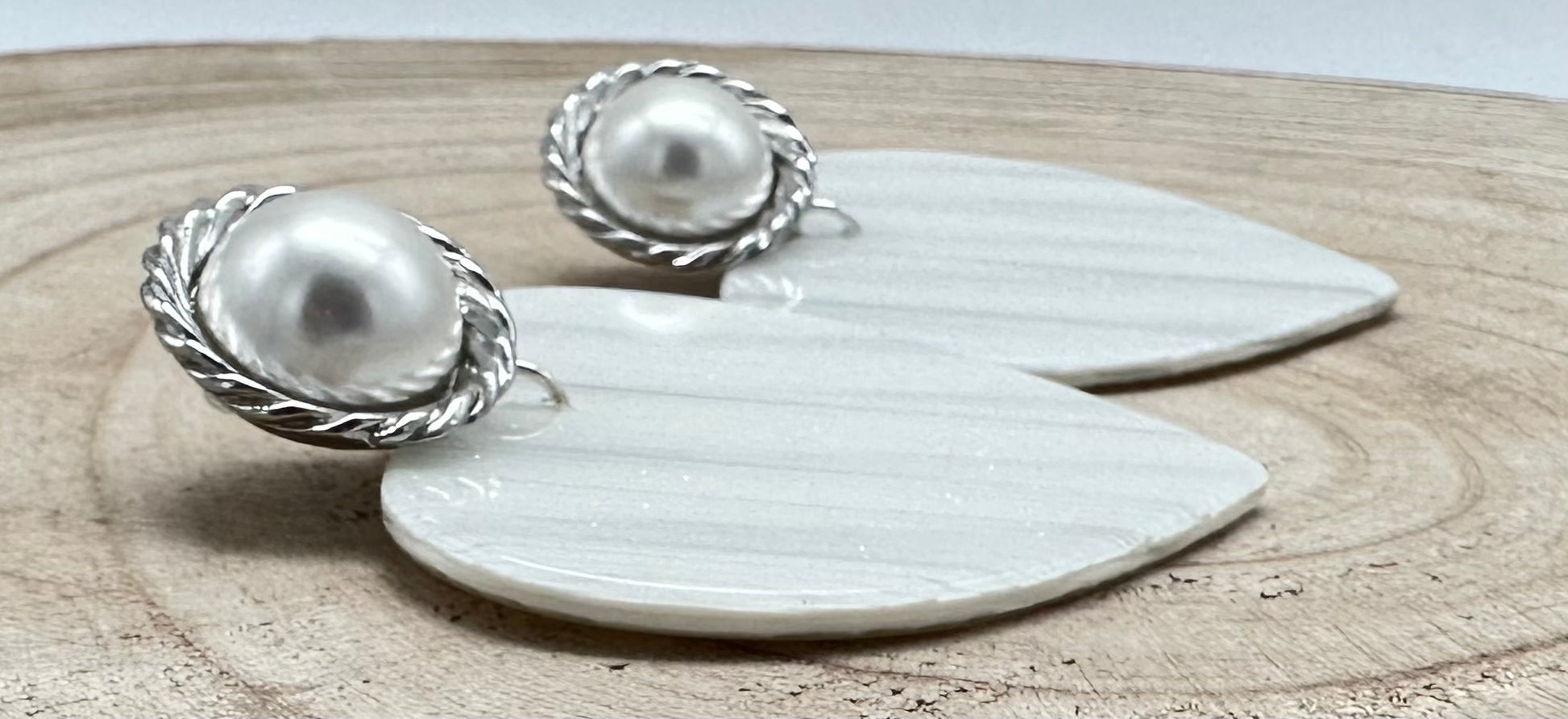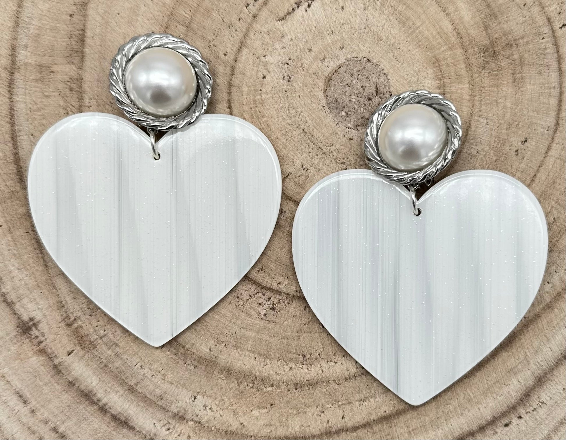Boucle d’oreille Cœur, cabochon perle, cœur pailleté - Francine BRAMLI