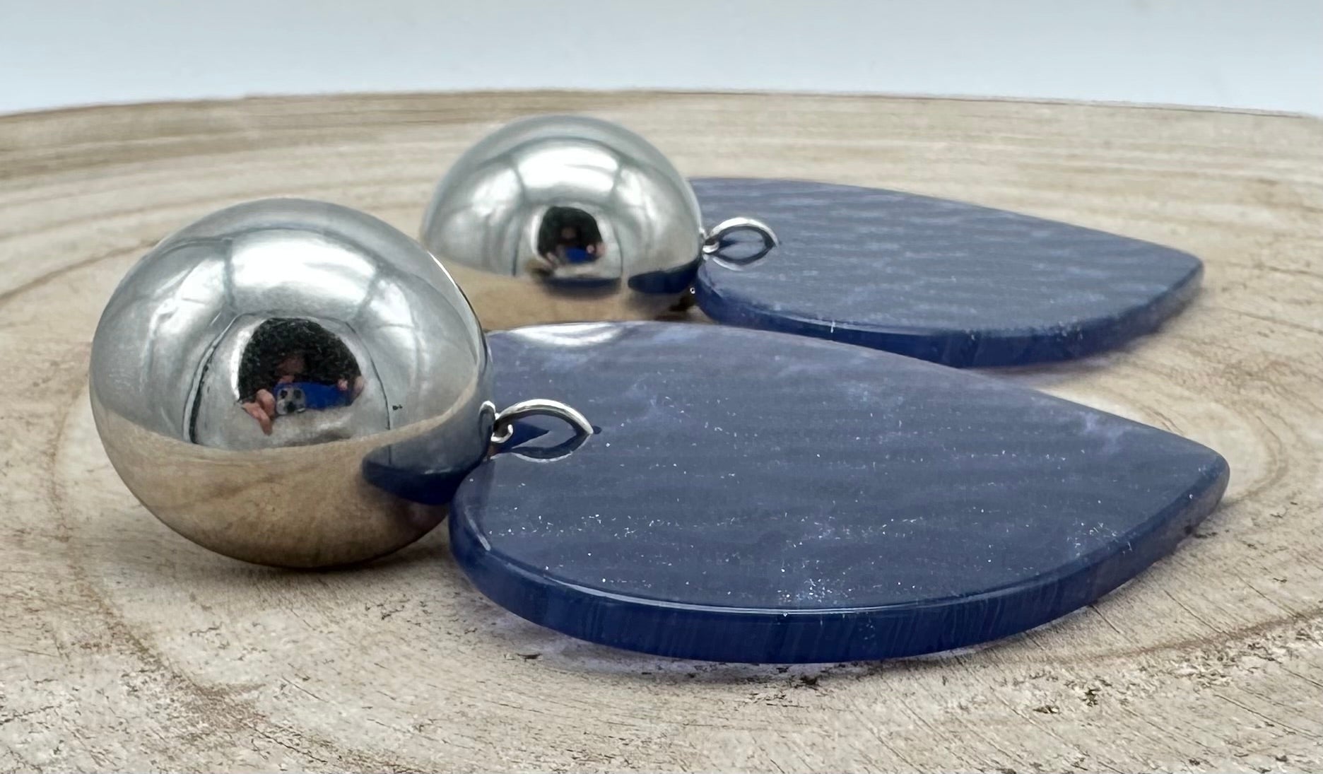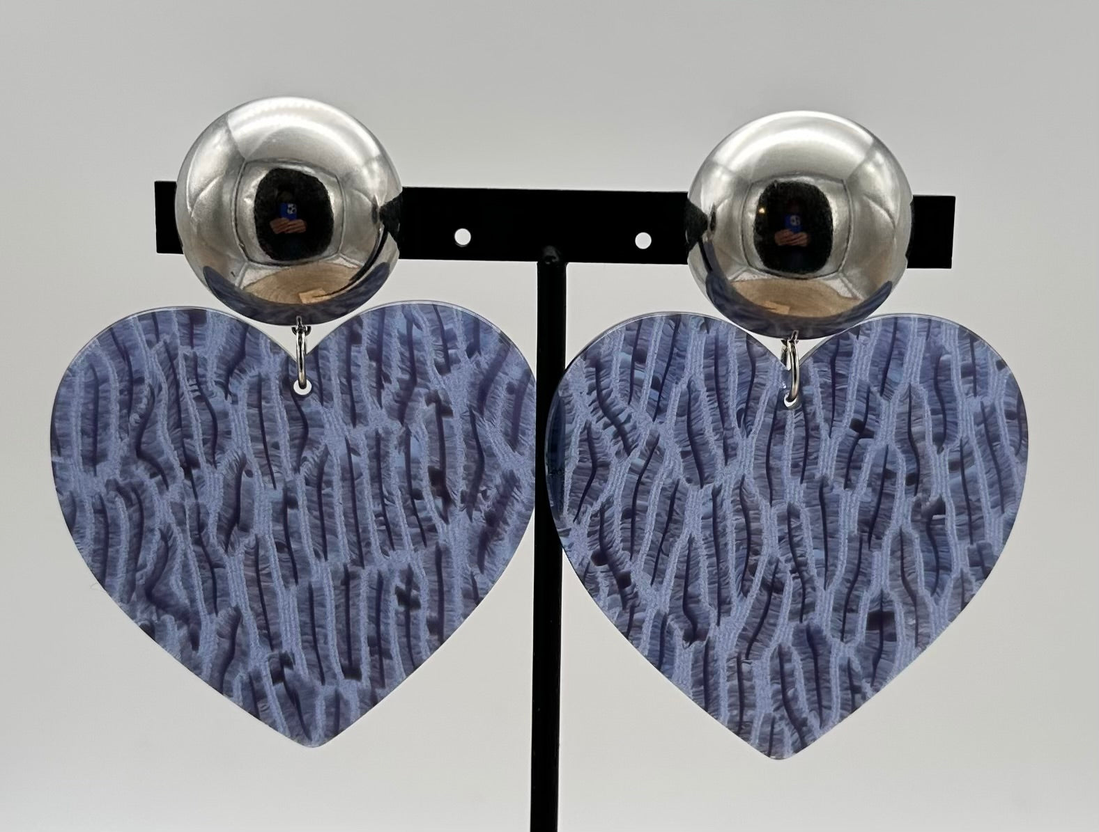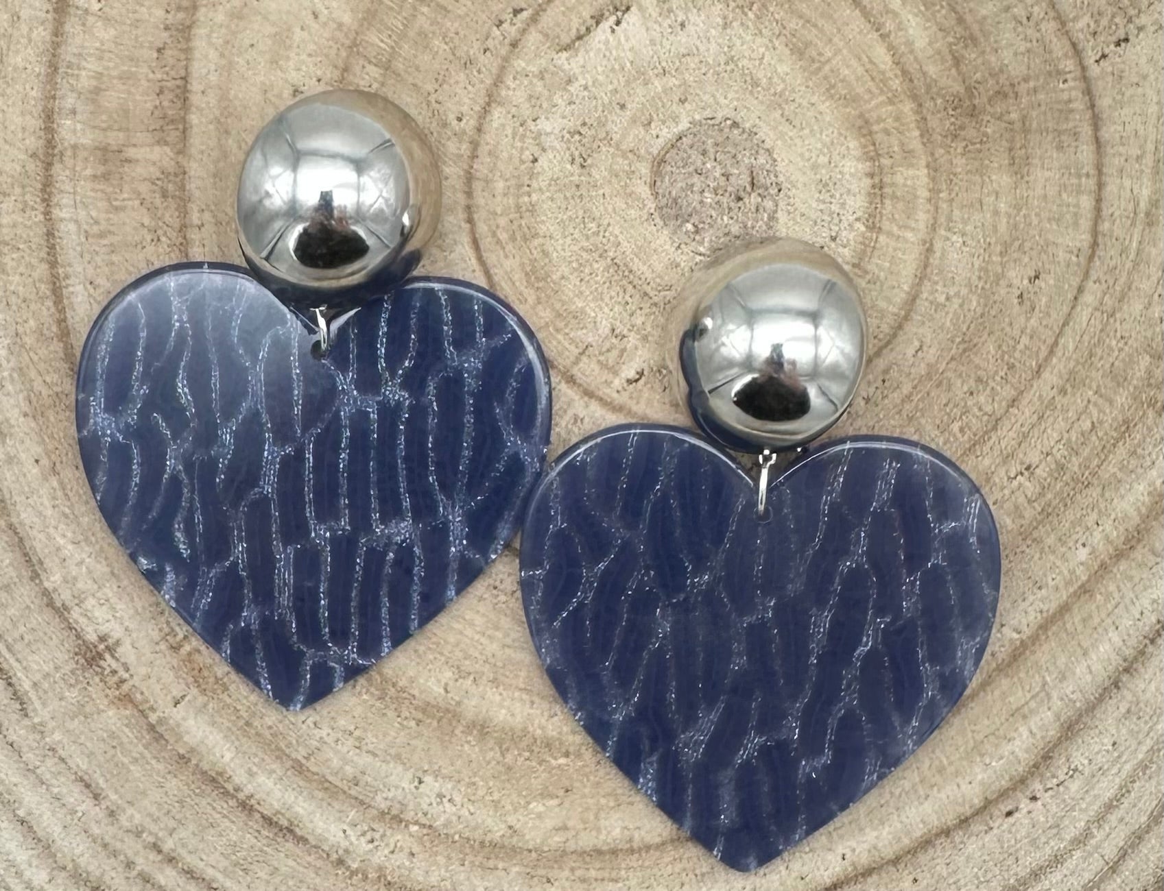 Boucle d’oreille Cœur, bleu pailleté - Francine BRAMLI