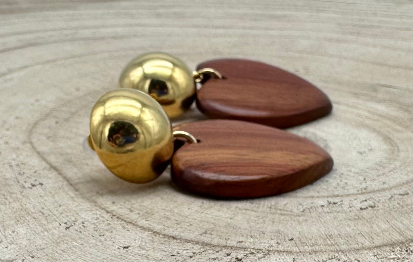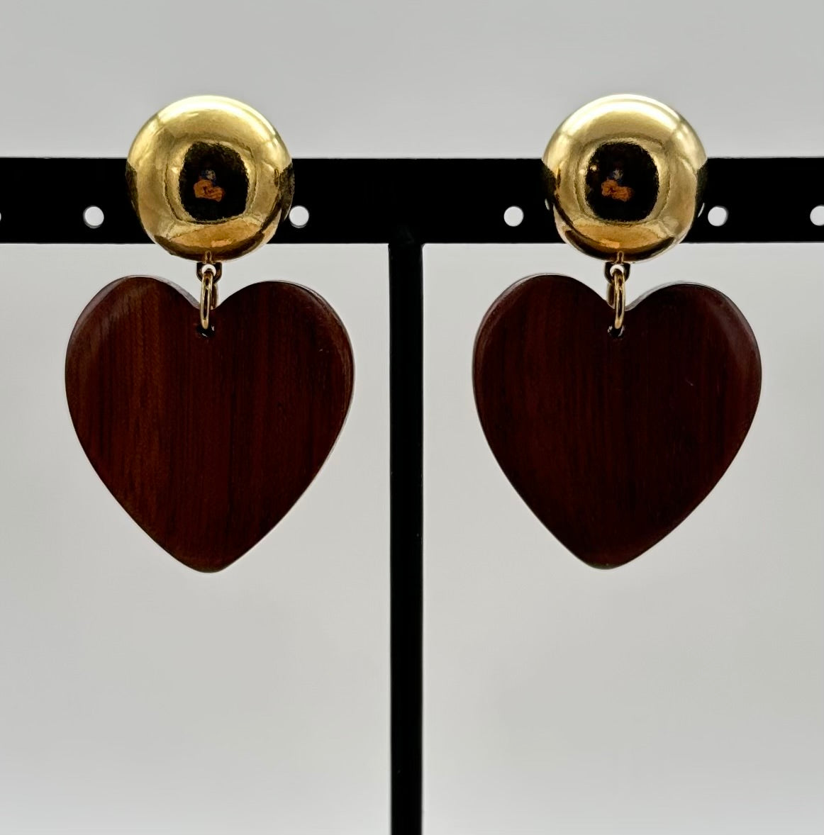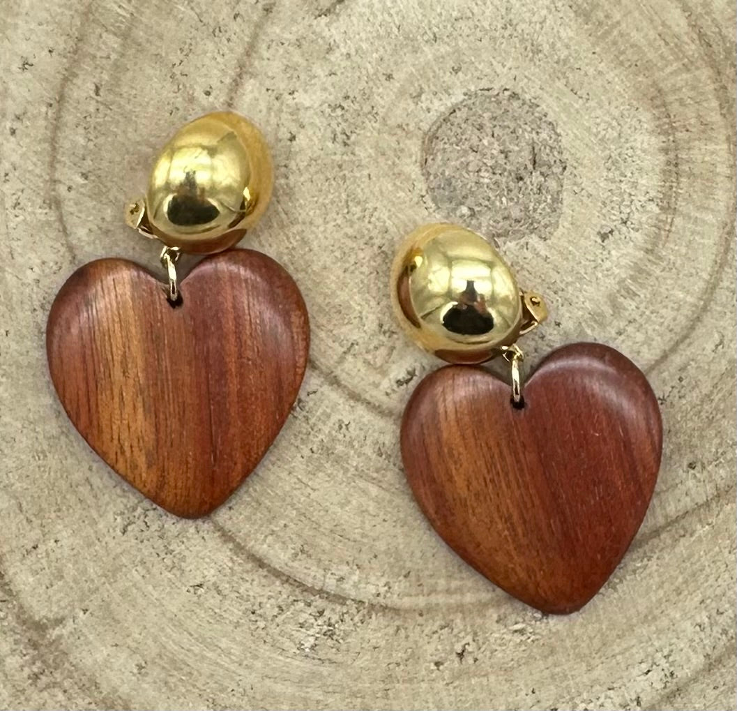 Boucle d’oreille Cœur, en bois - Francine BRAMLI