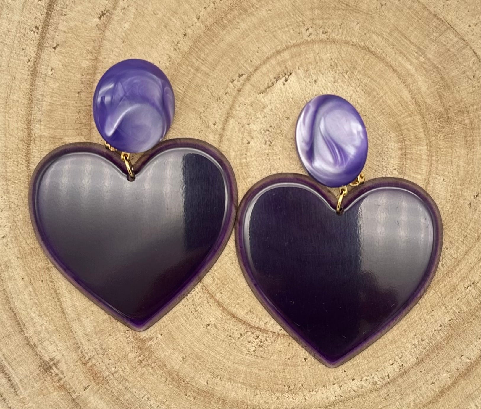 Boucle d’oreille Cœur, violette - Francine BRAMLI