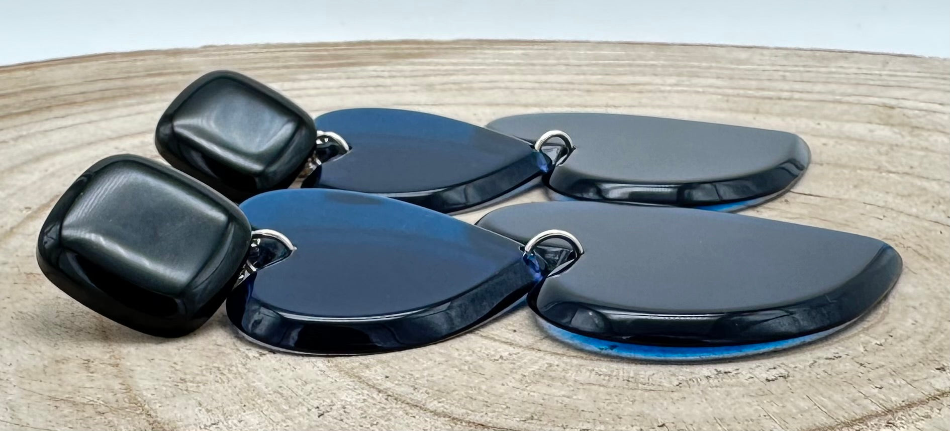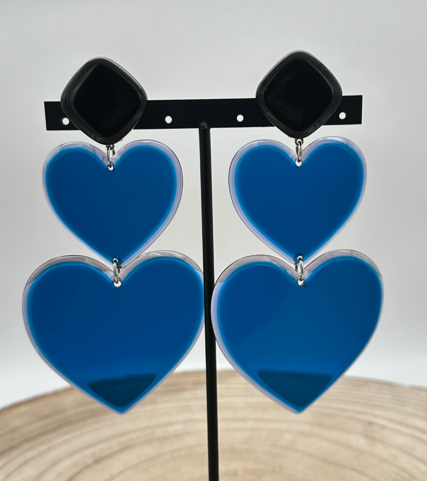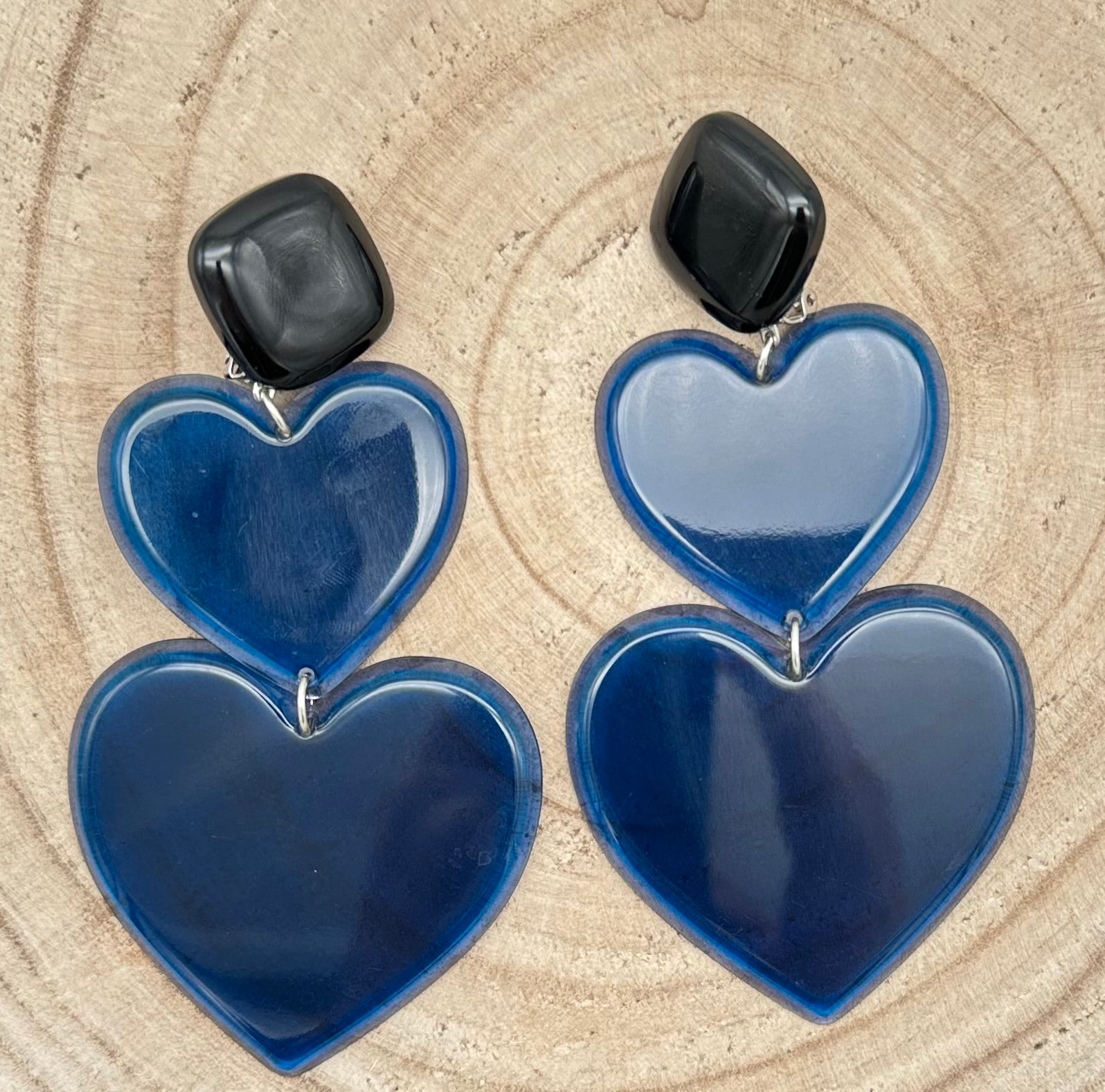 Boucle d’oreille Cœur, double cœur bleu - Francine BRAMLI