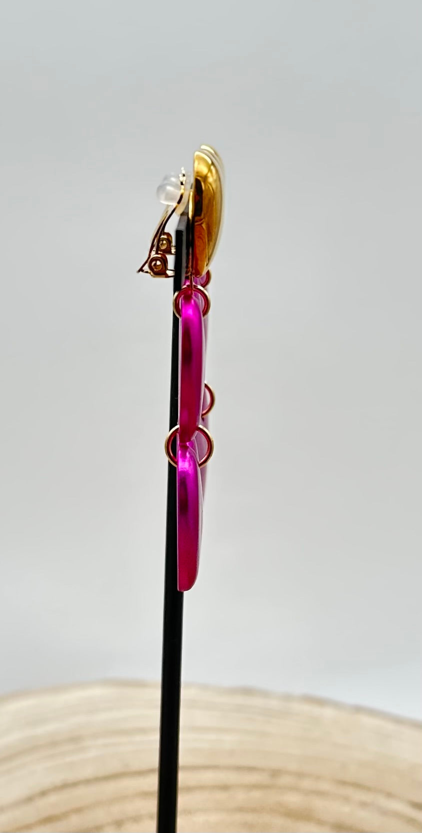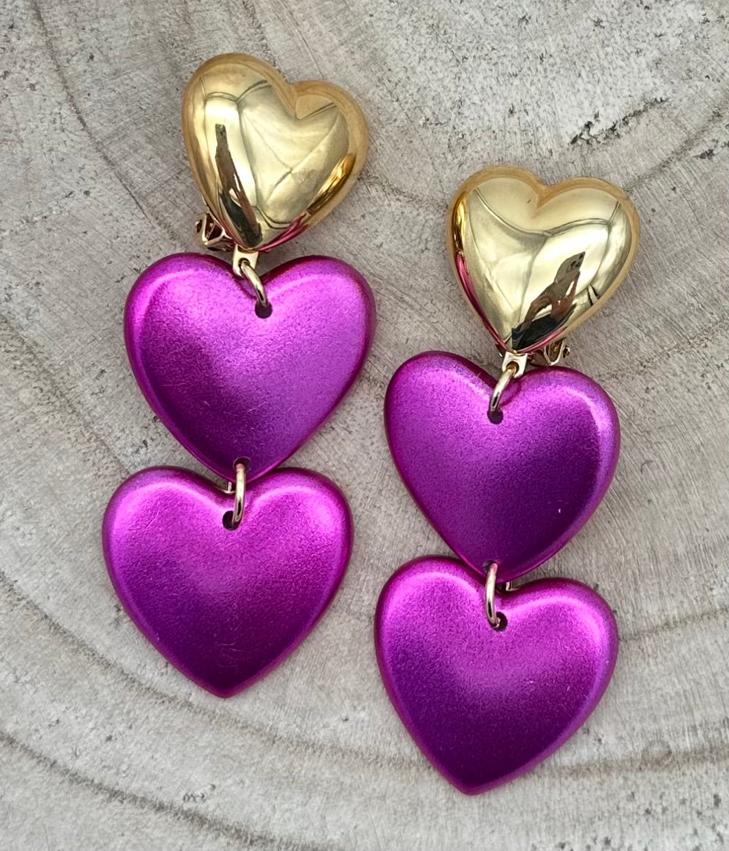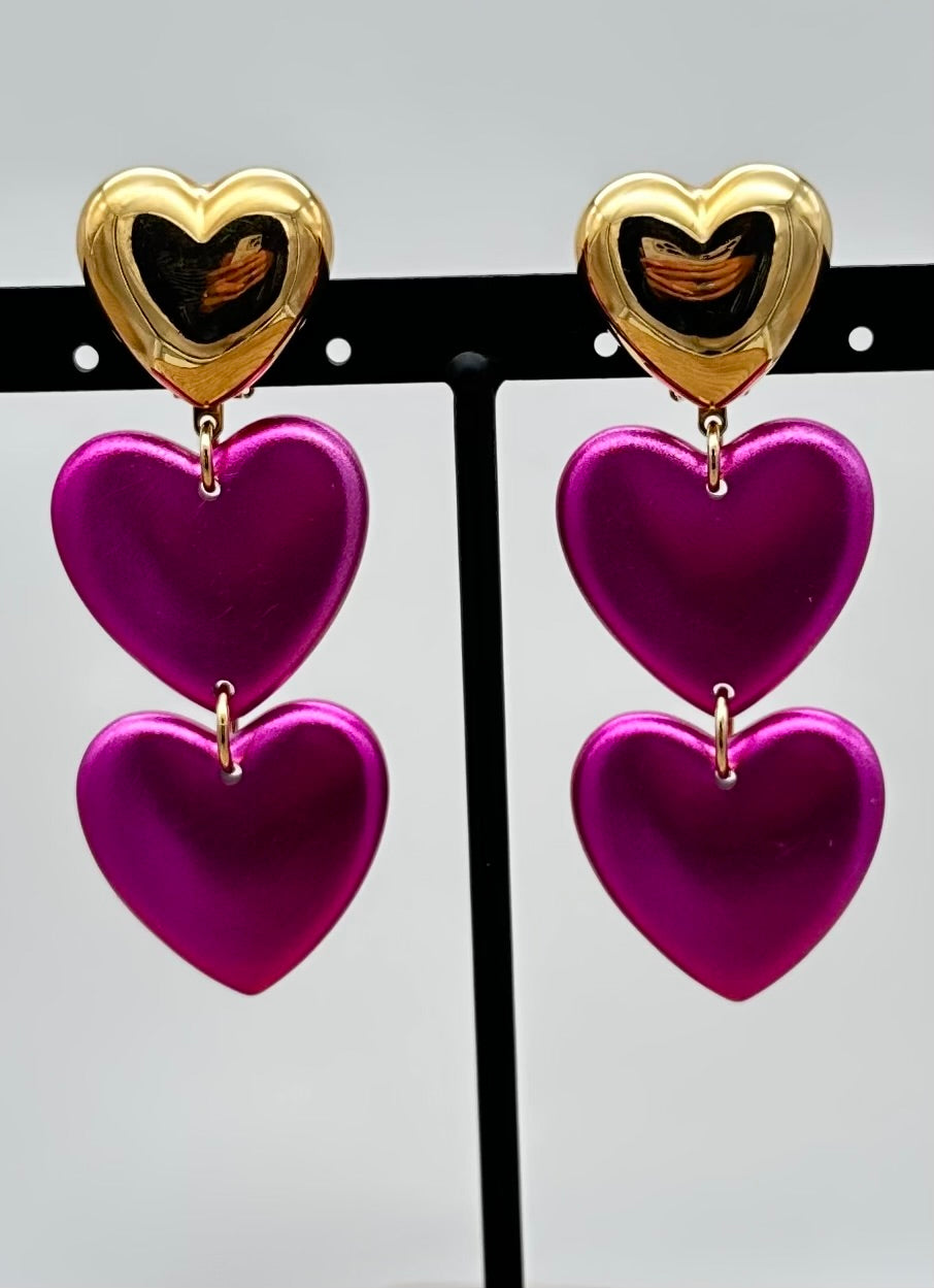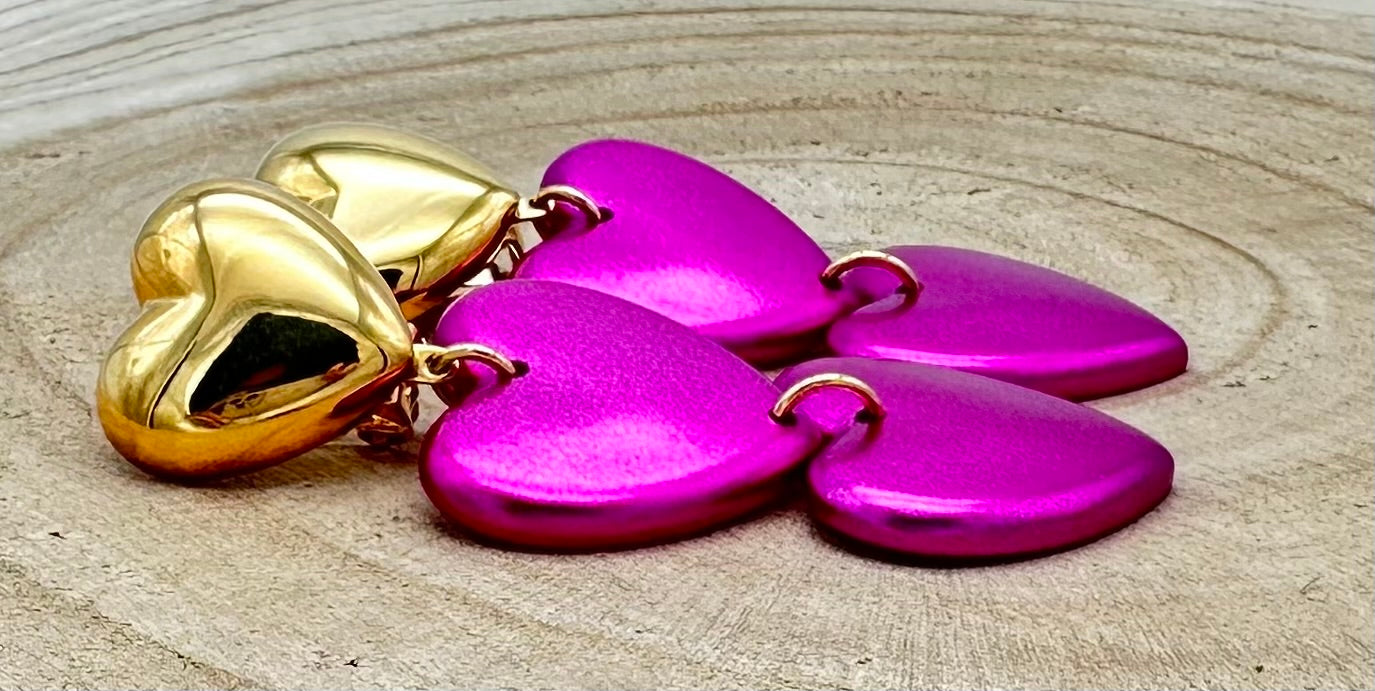 Boucle d’oreille Cœur, cabochon doré, éléments roses - Francine BRAMLI