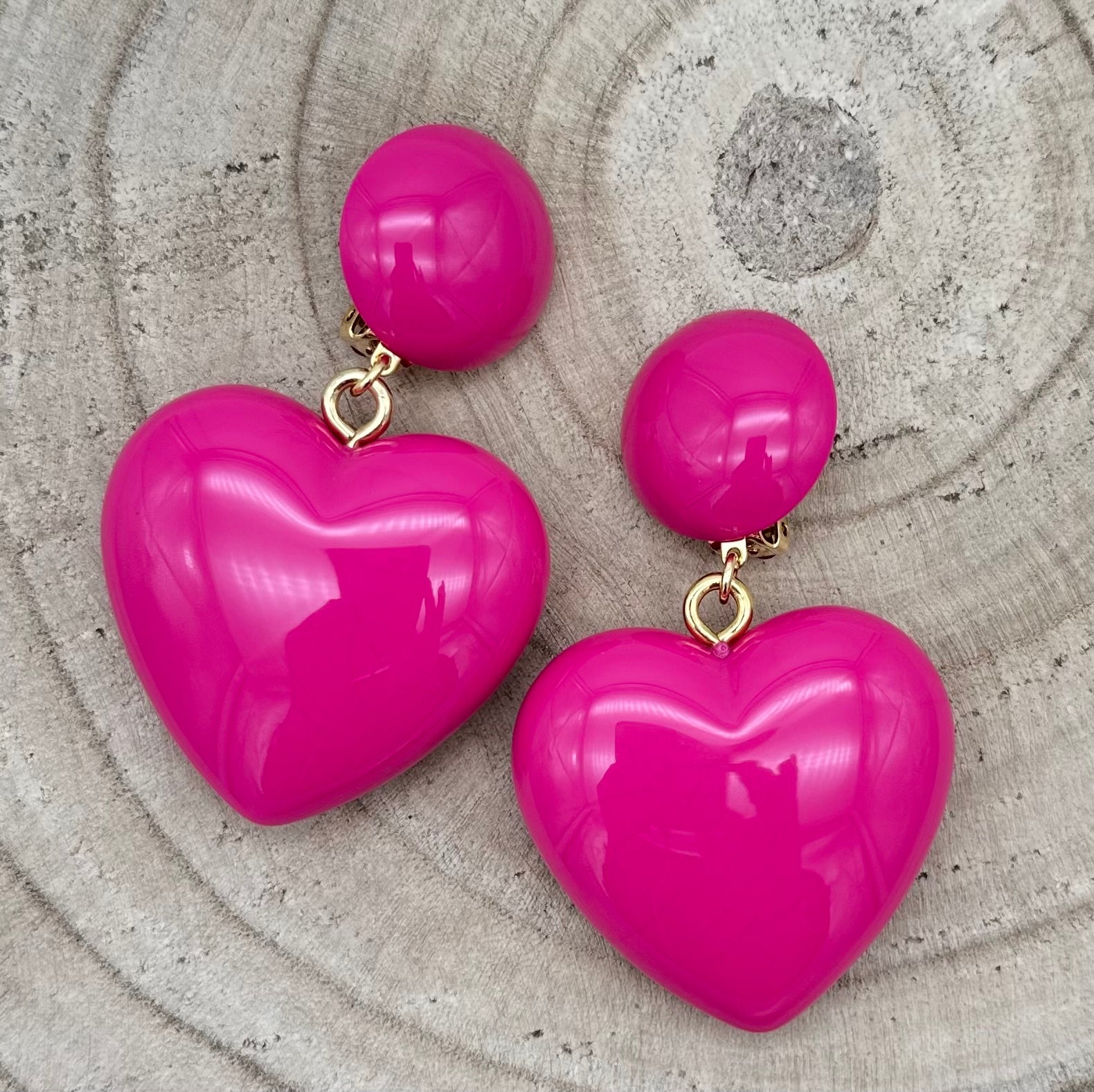 Boucle d’oreille Cœur, rose - Francine BRAMLI