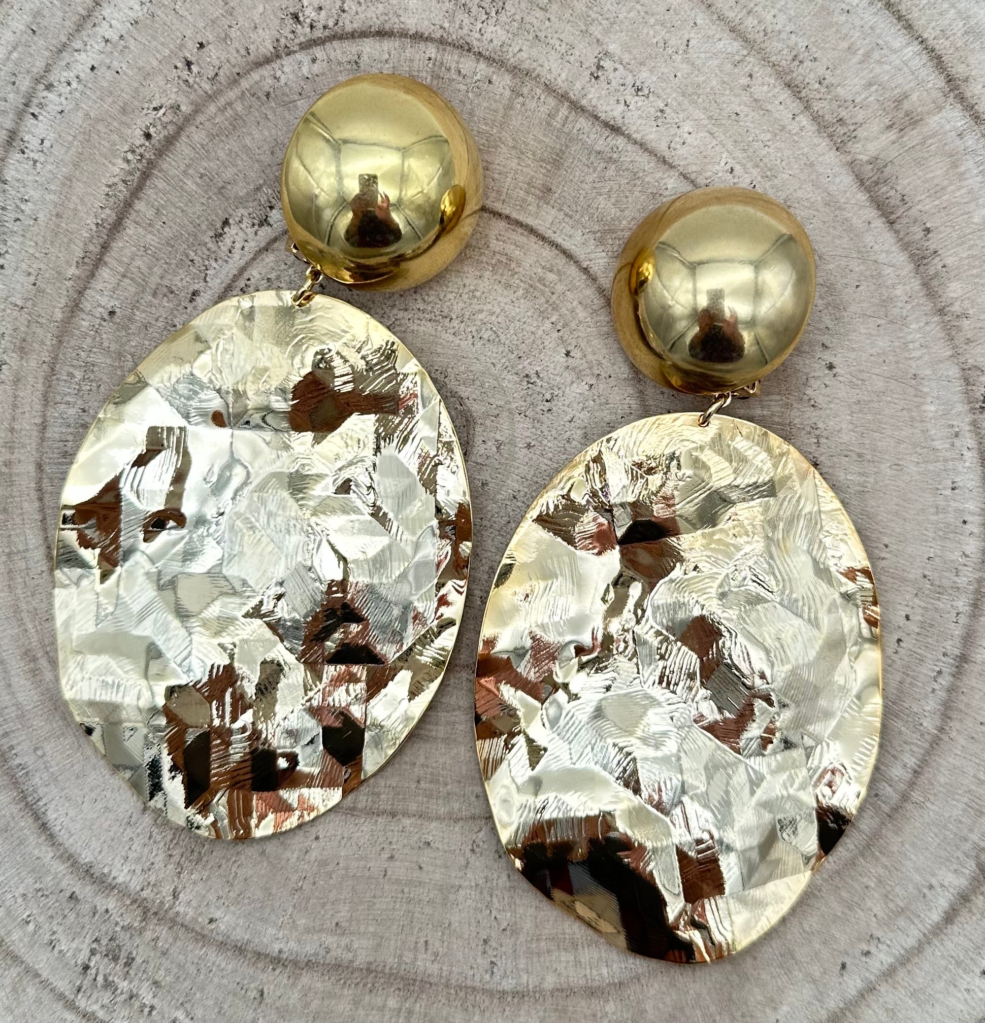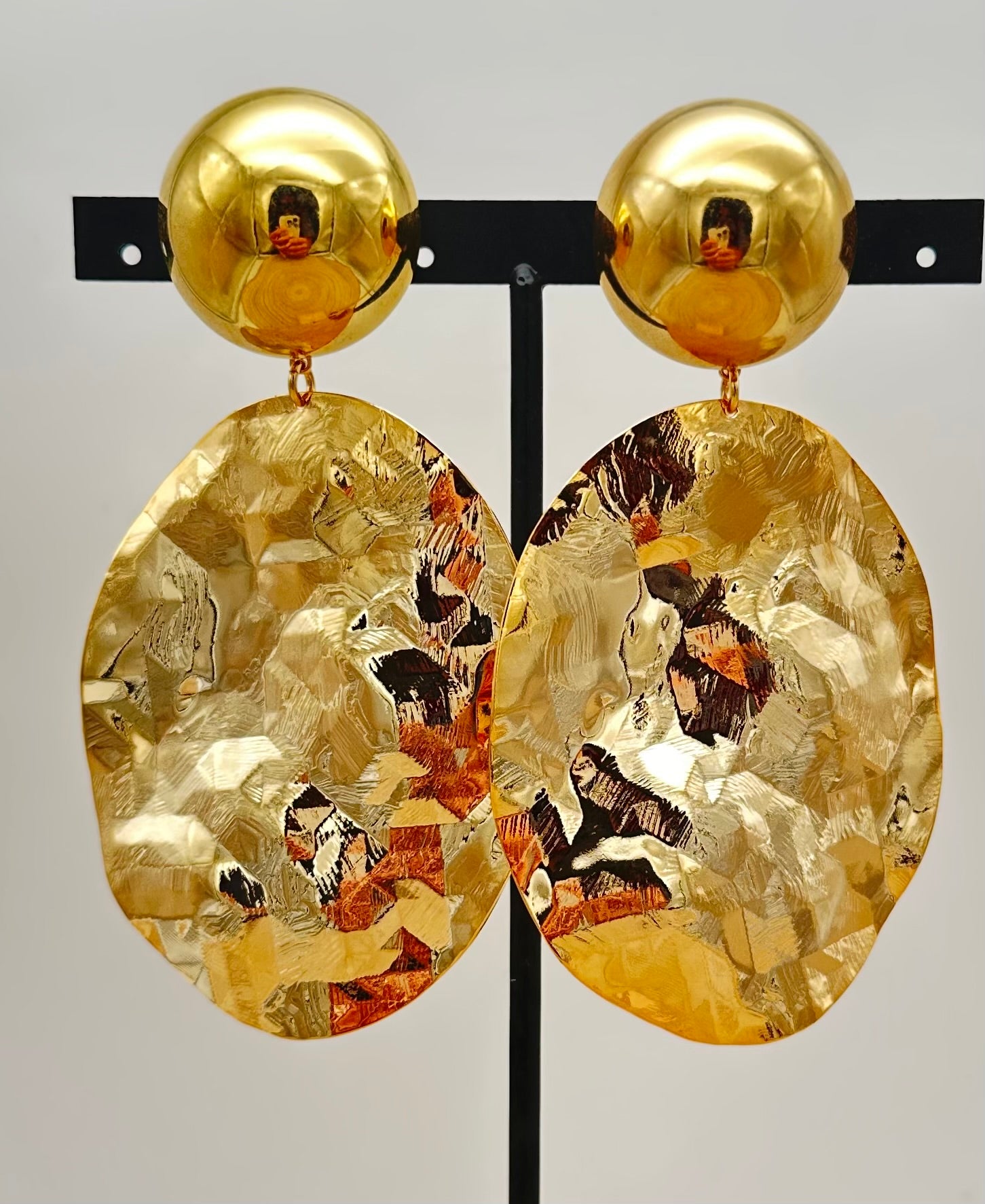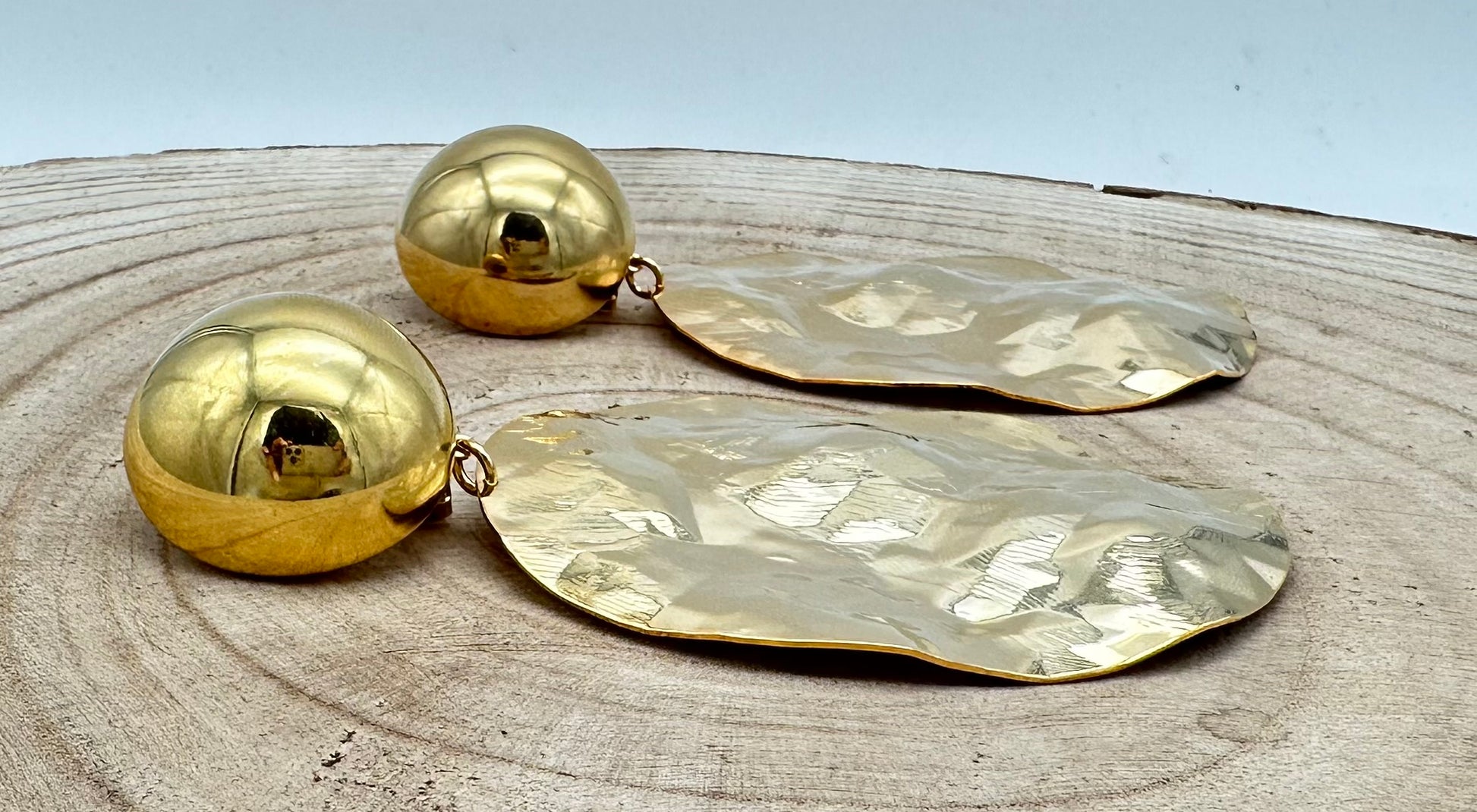 Boucle d’oreille Dorée, plaque métallique - Francine BRAMLI