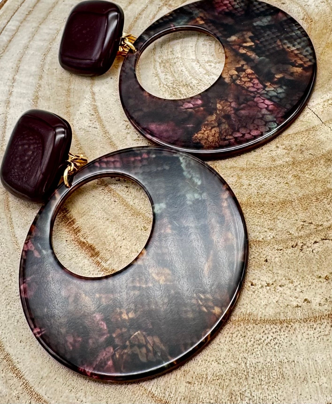 Boucle d’oreille Francine BRAMLI - créole imprimé serpent irisé.