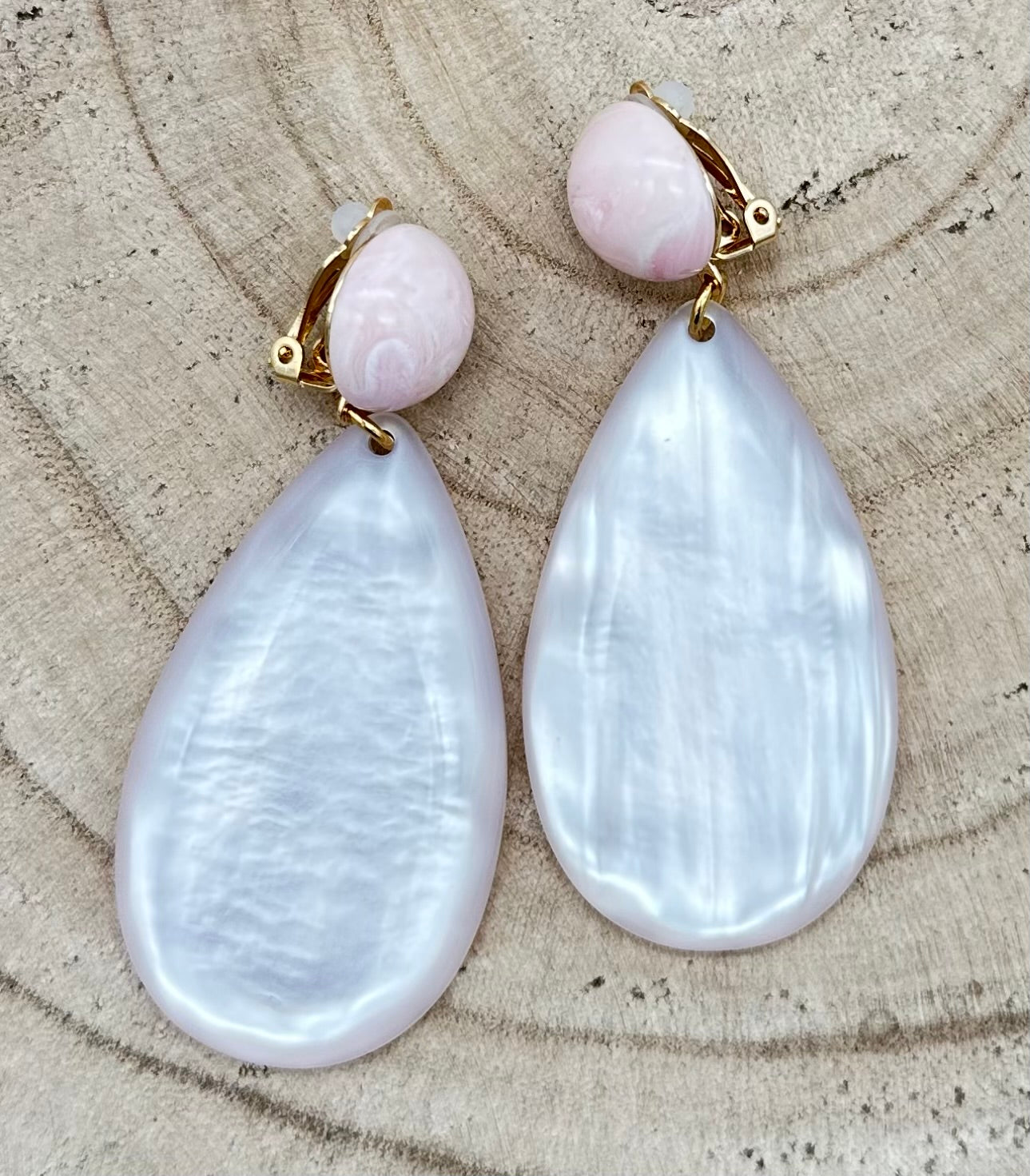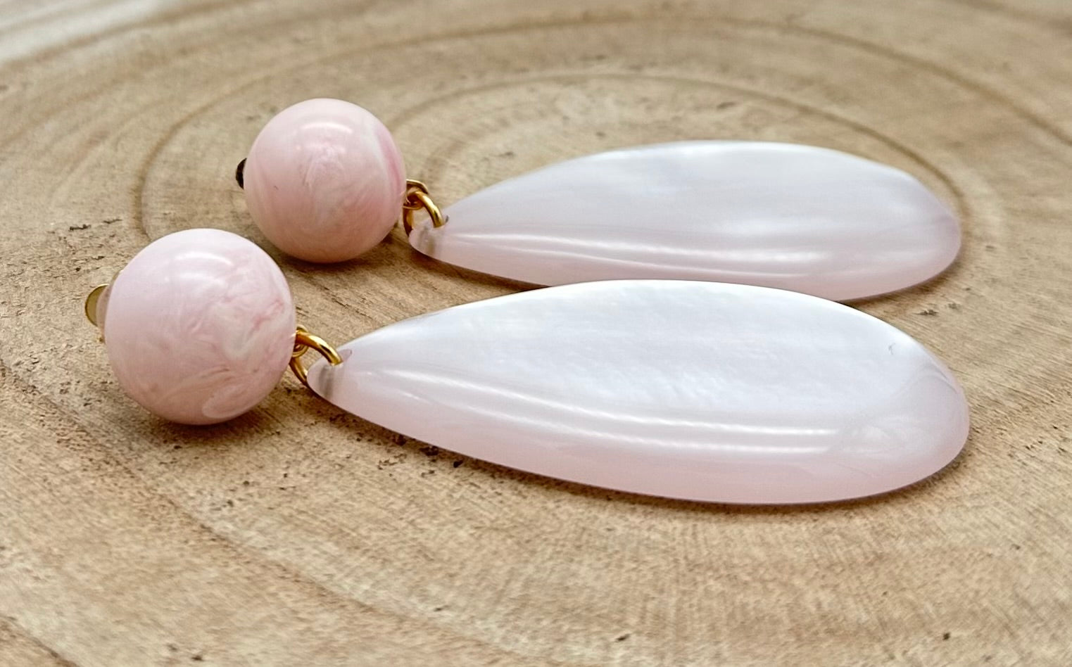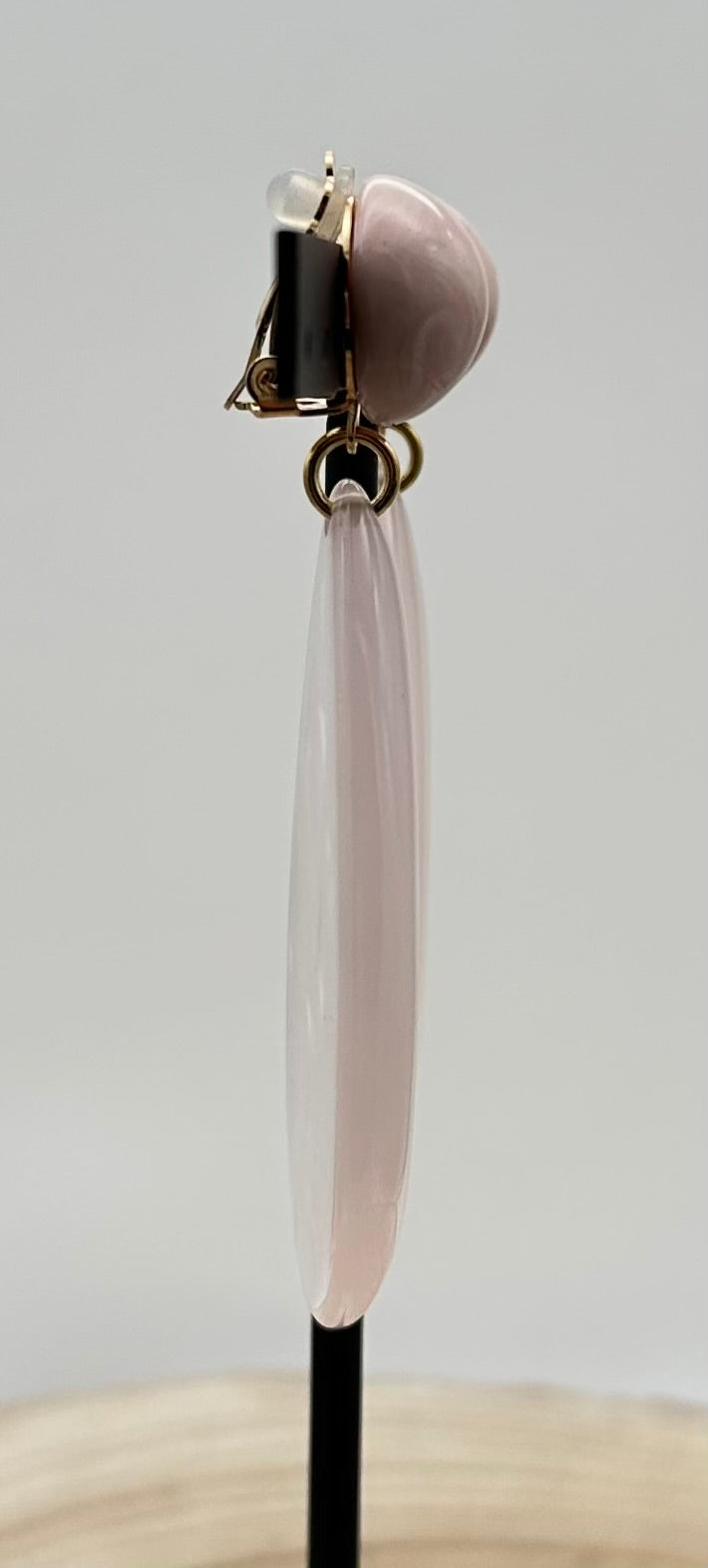 Boucle d’oreille Goutte, cabochon rose pale - Francine BRAMLI