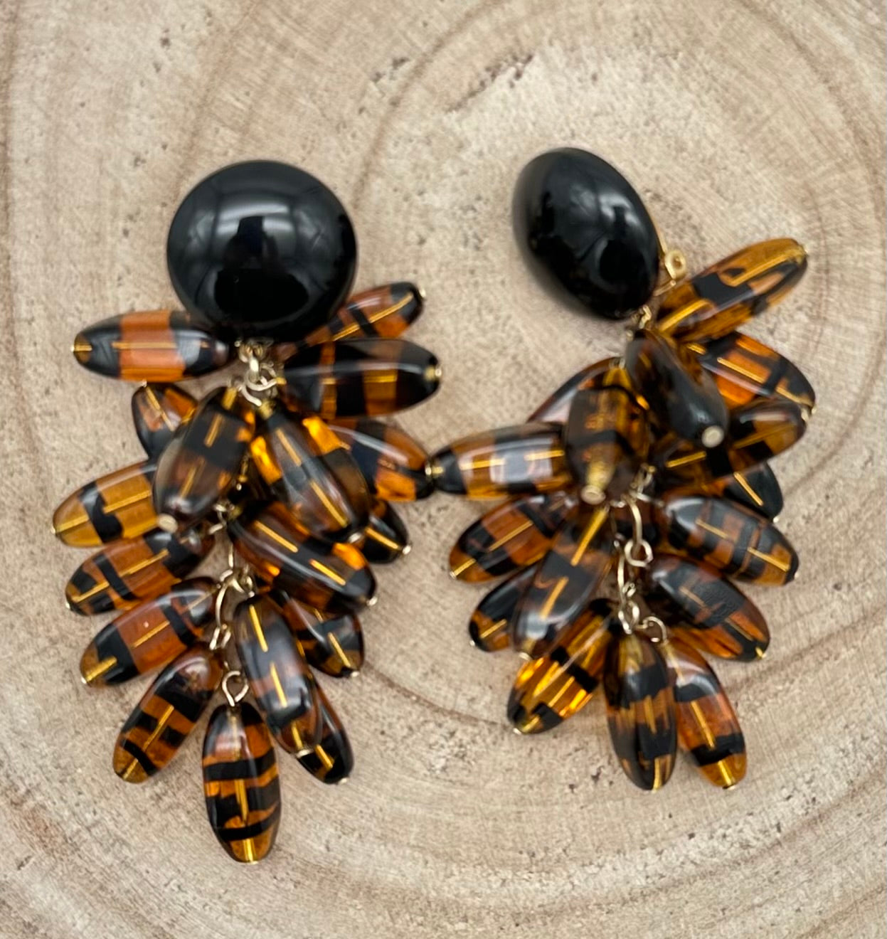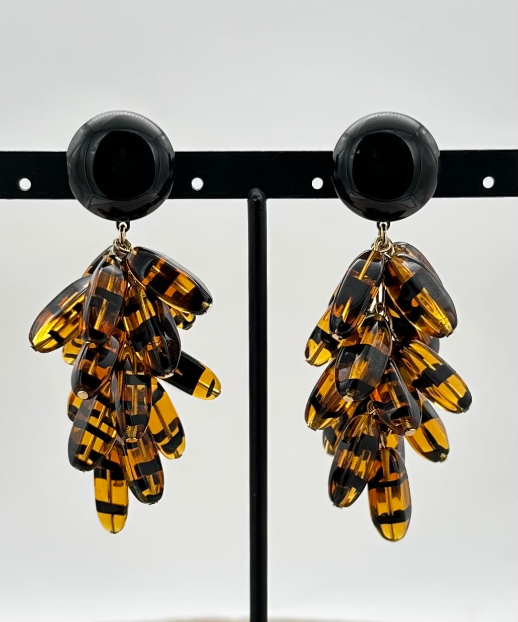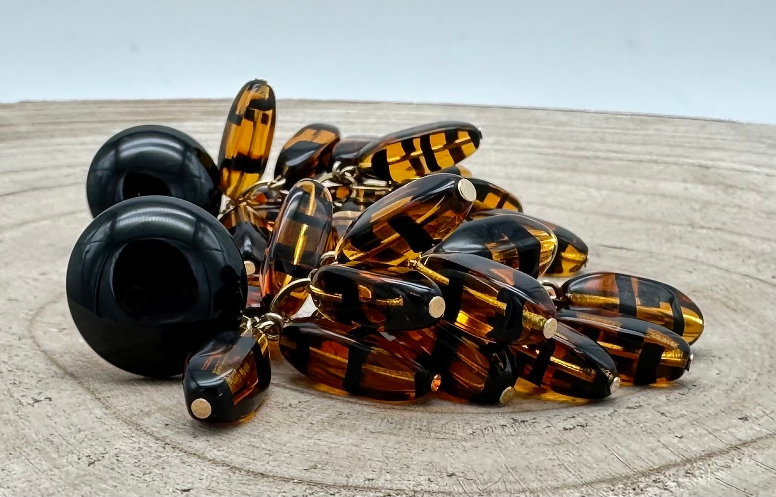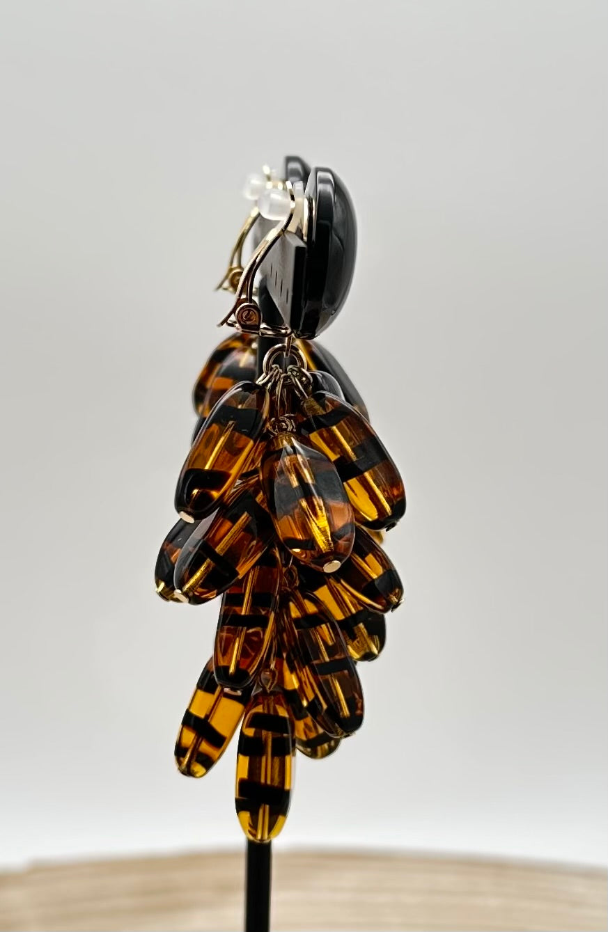Boucle d’oreille Grappe, miel et noir - Francine BRAMLI
