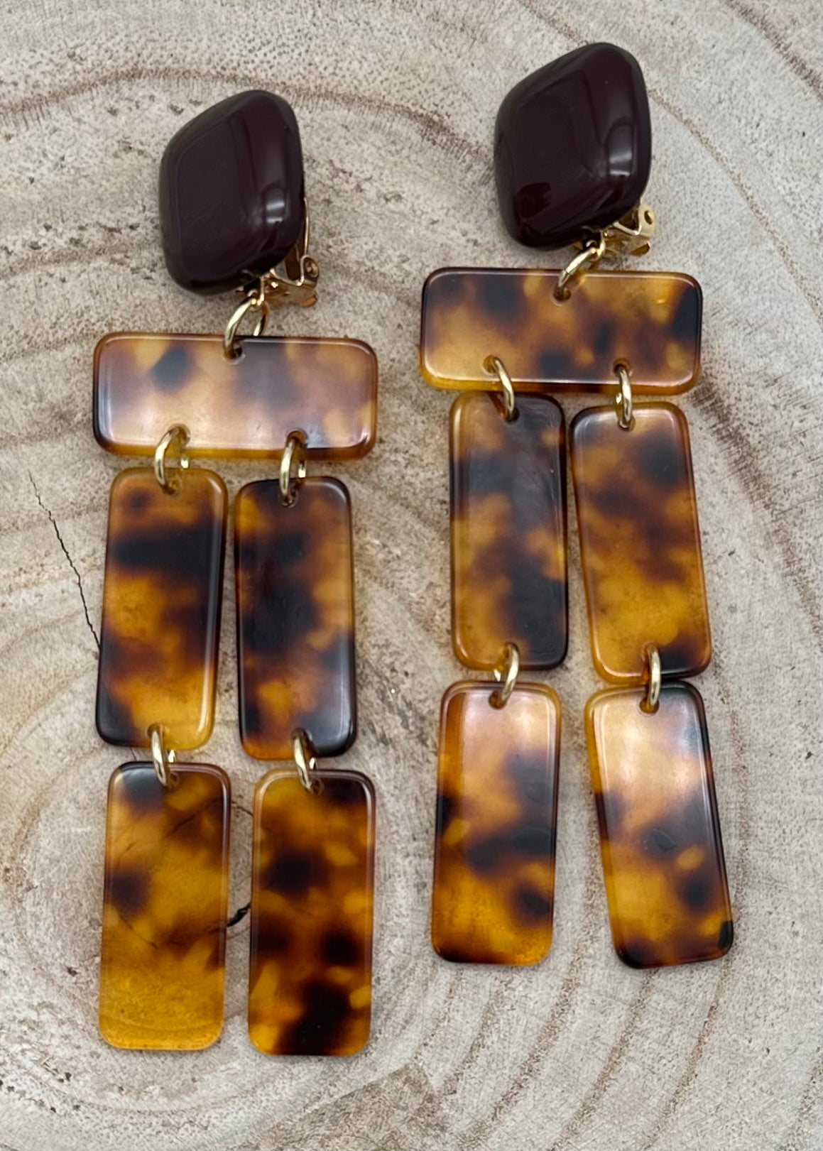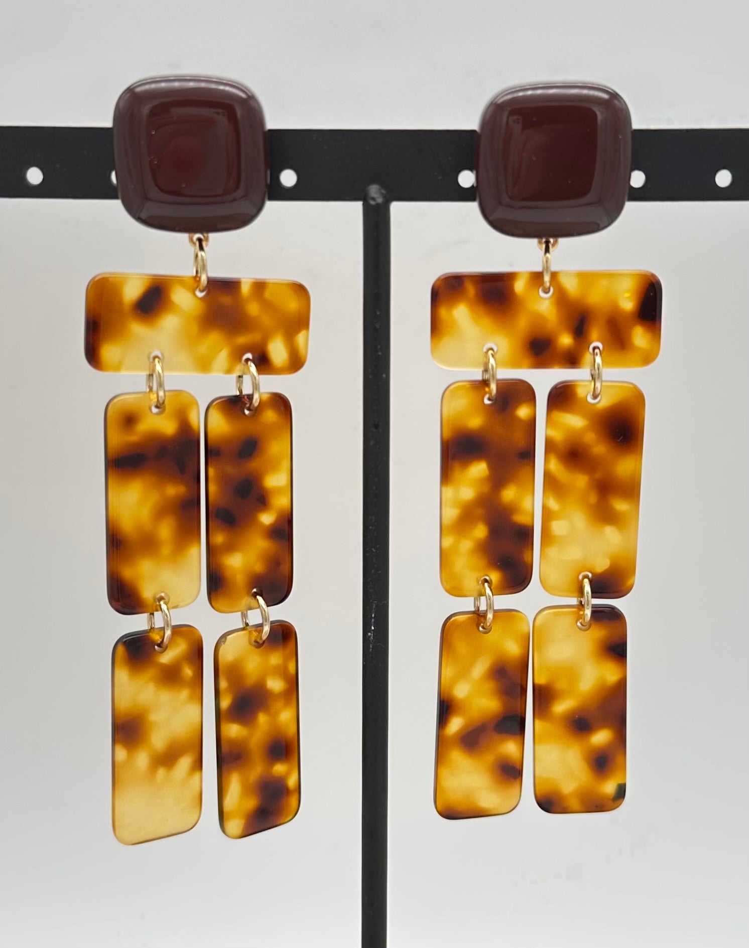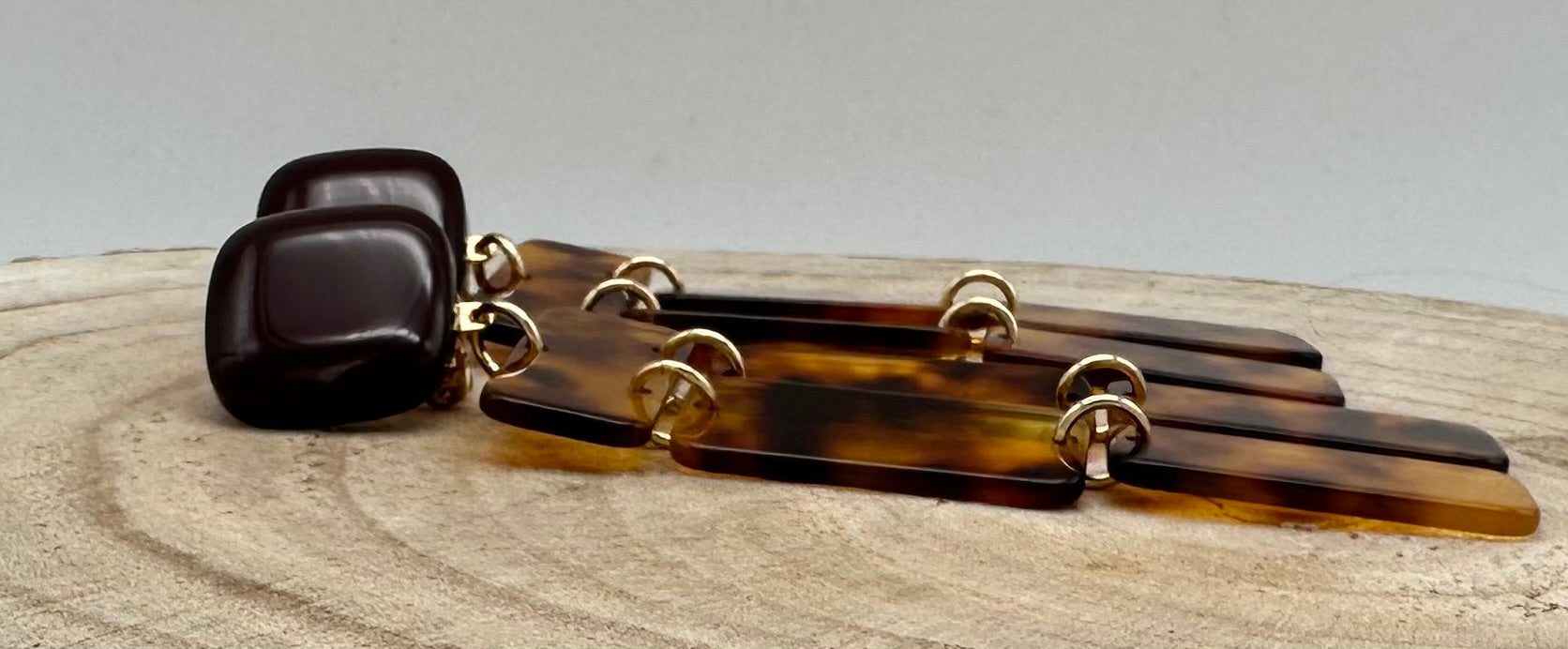 Boucle d’oreille Grappe motif léopard cabochon marron - Francine BRAMLI