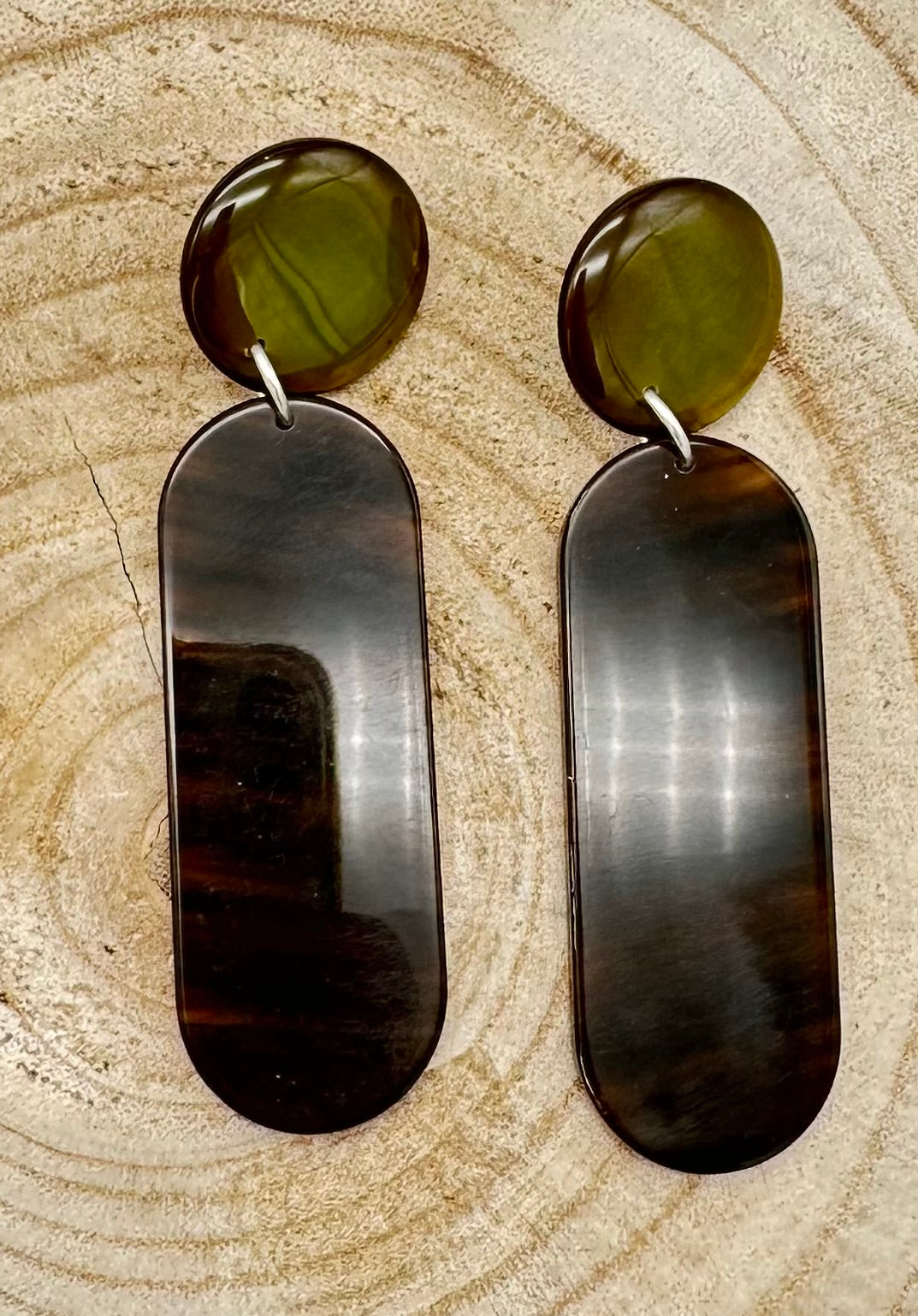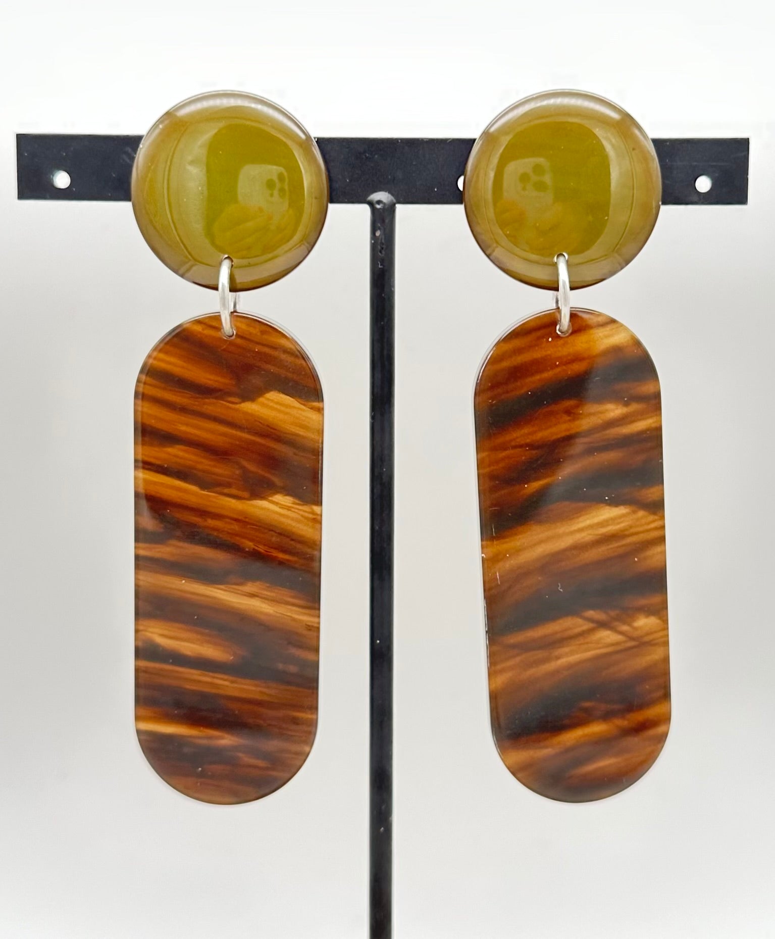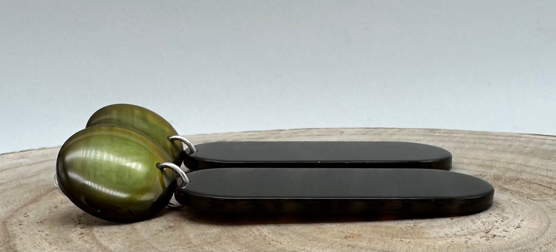 Boucle d’oreille léopard, cabochon vert kaki - Francine BRAMLI