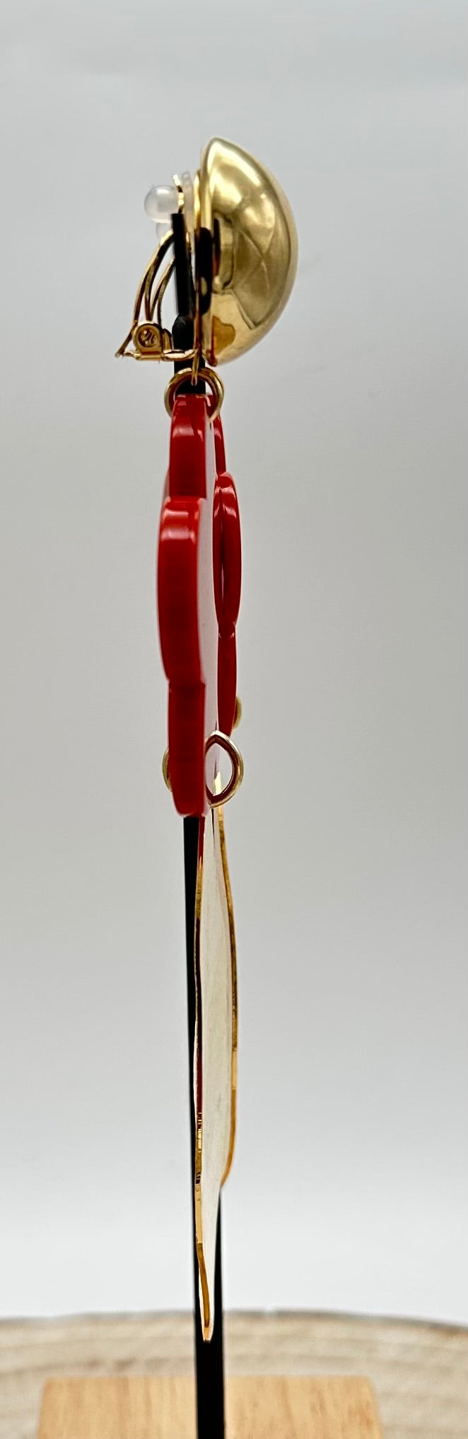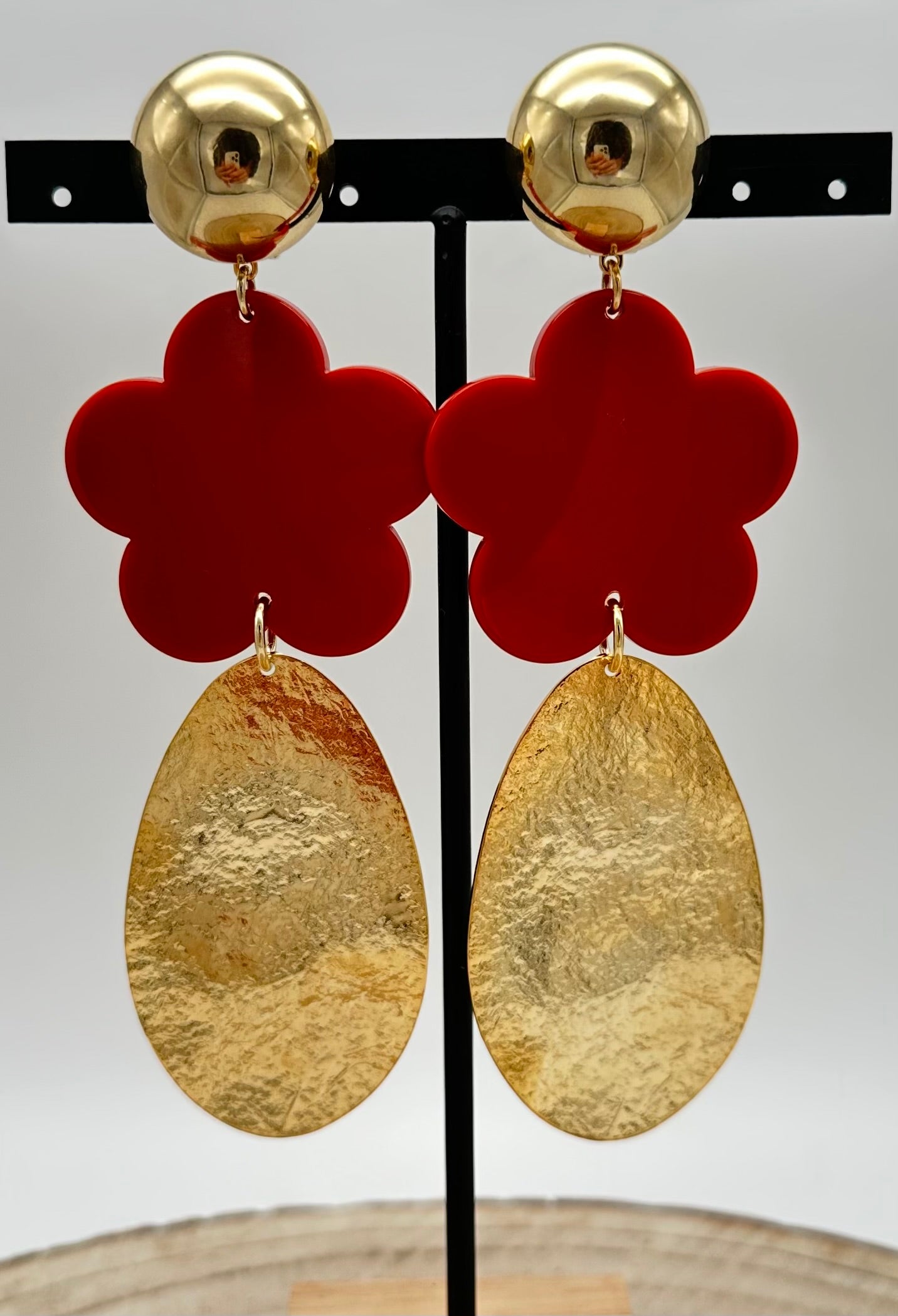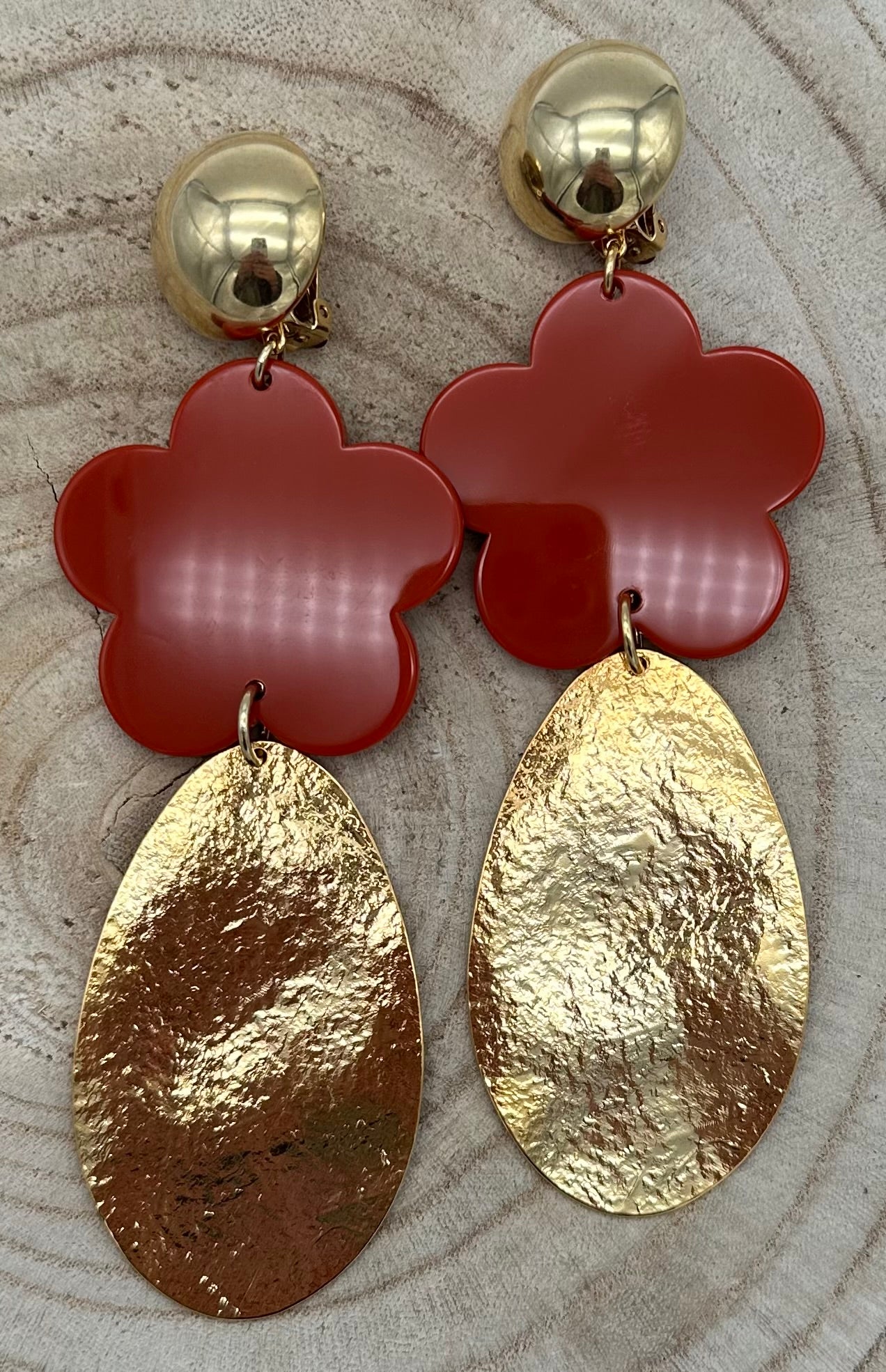 Boucle d’oreille Lima métallique fleur, fleur orange - Francine BRAMLI