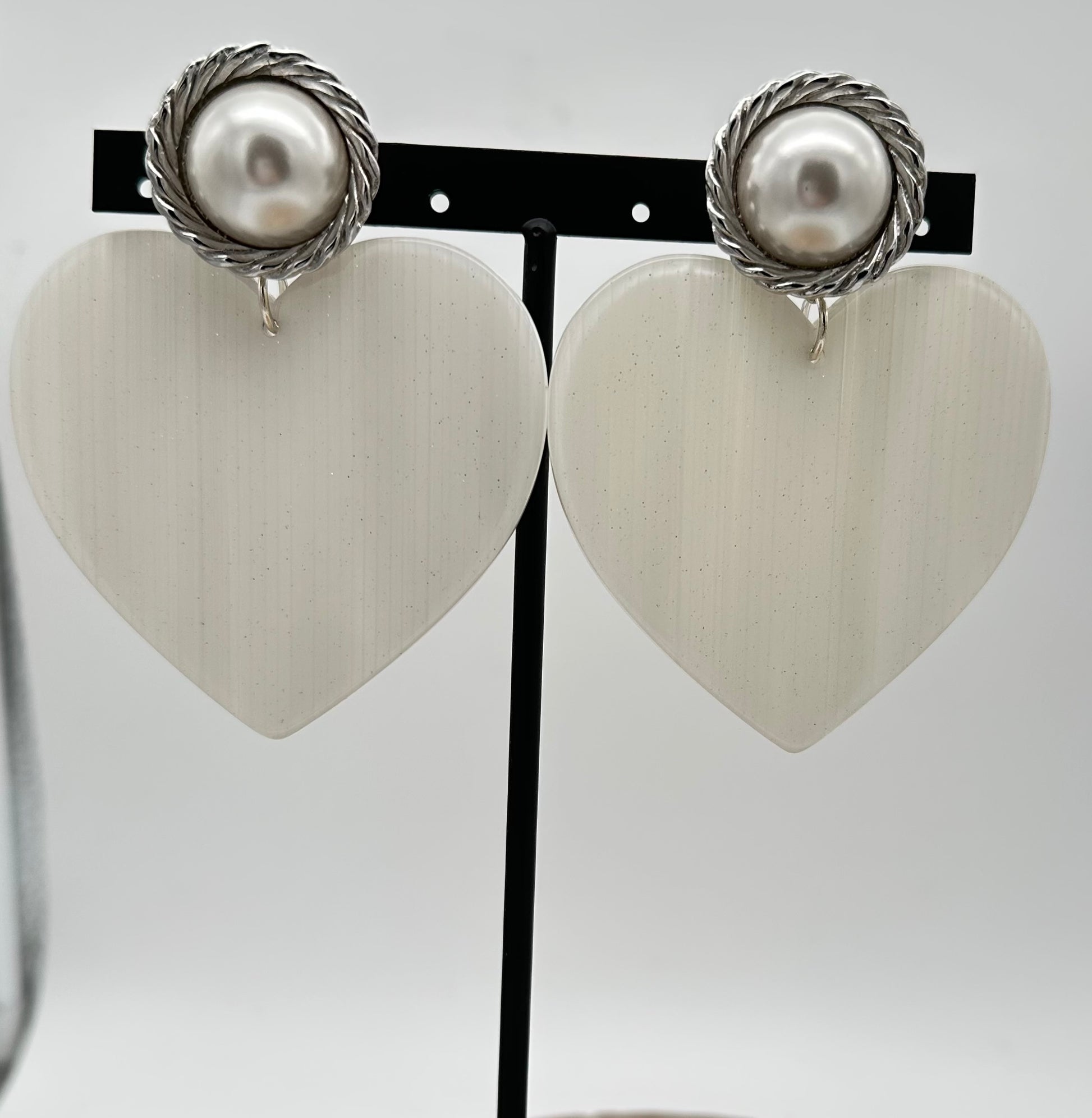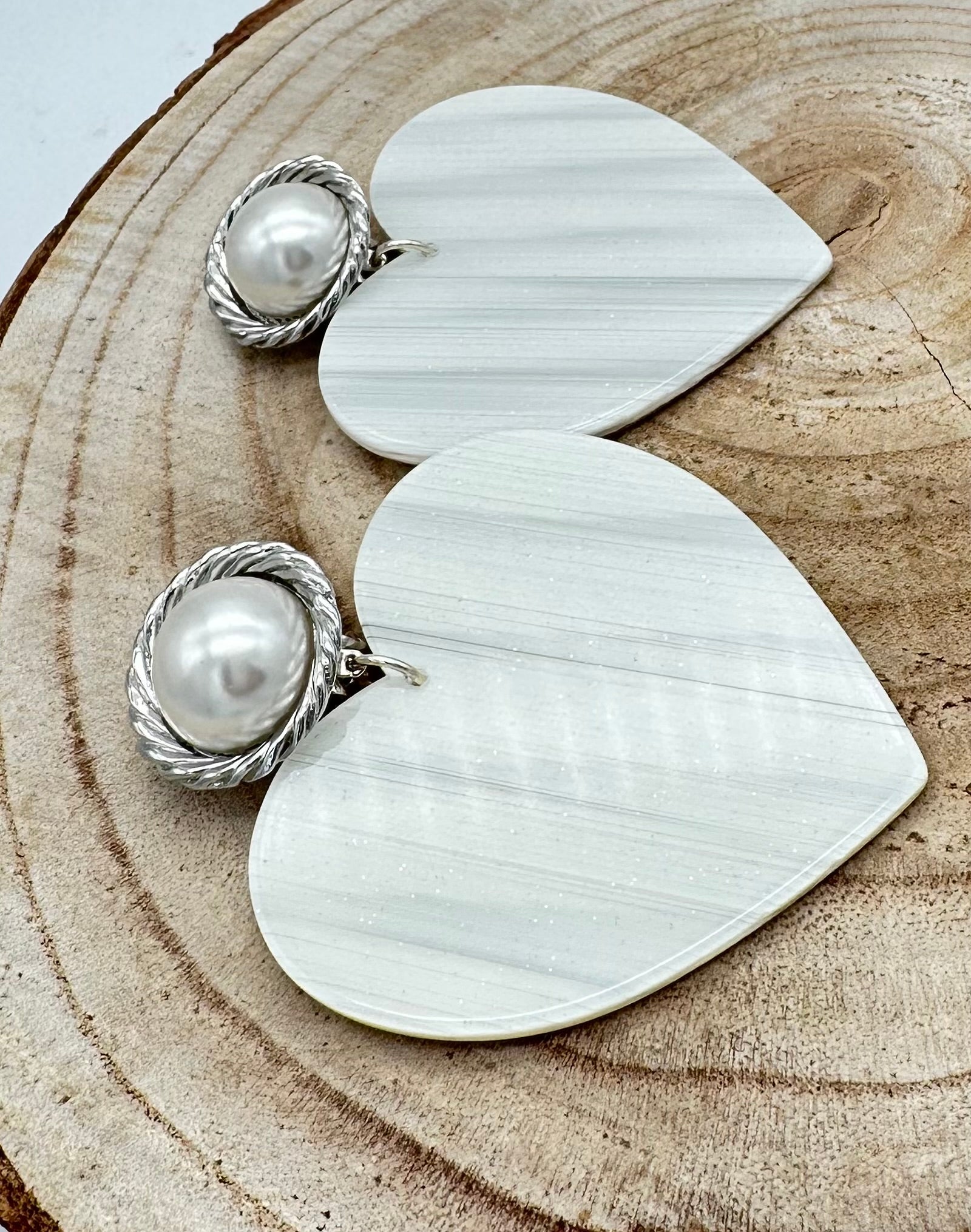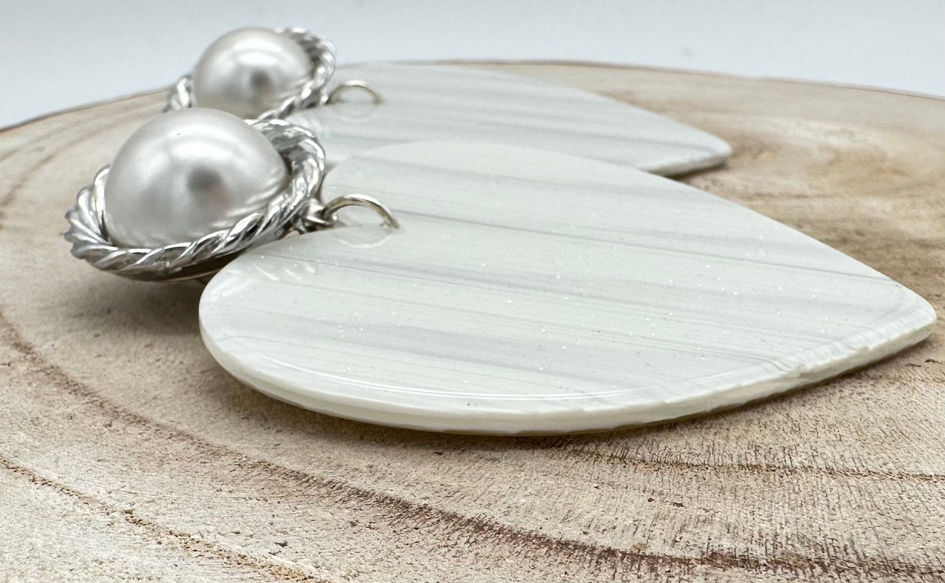 Boucle d’oreille LOVELY nacré blanc pailletée avec un cabochon en perle