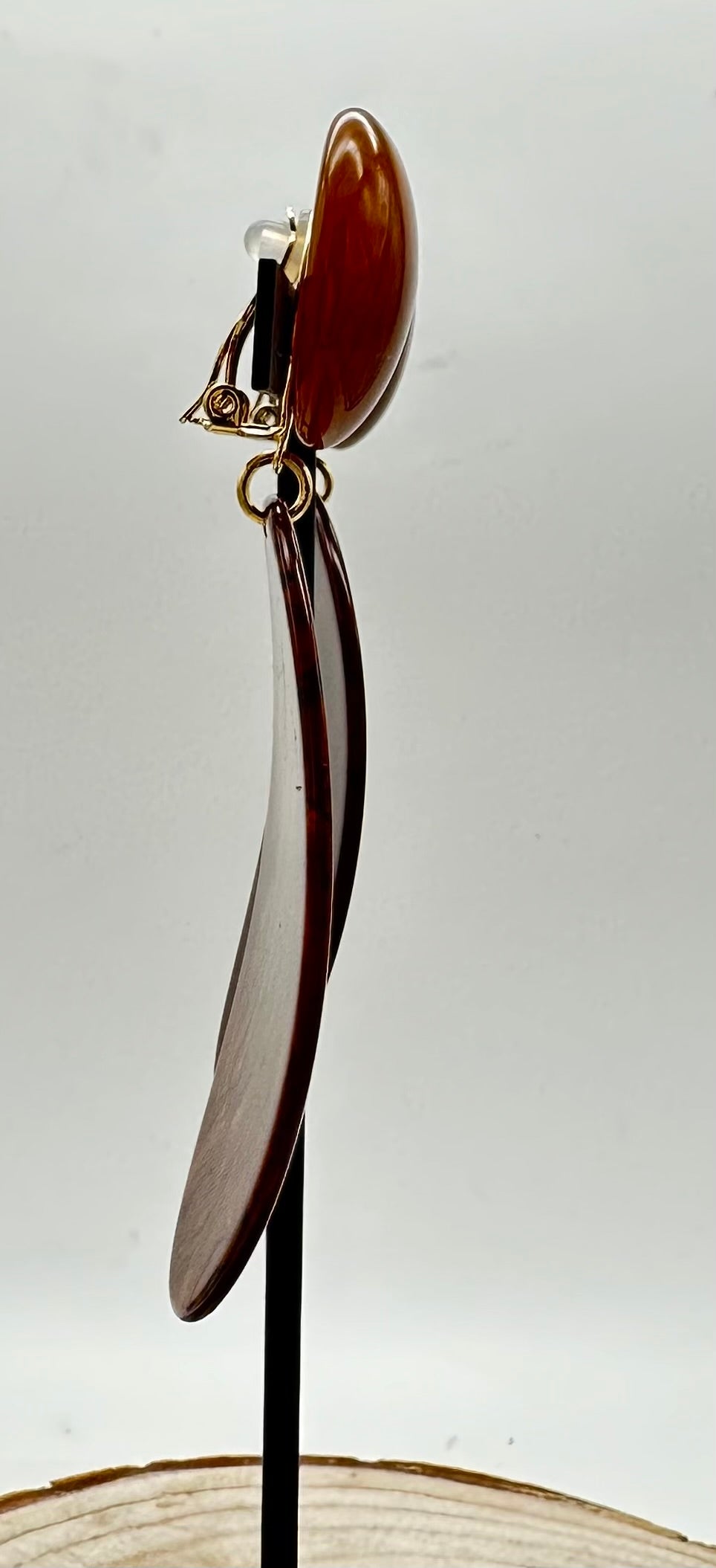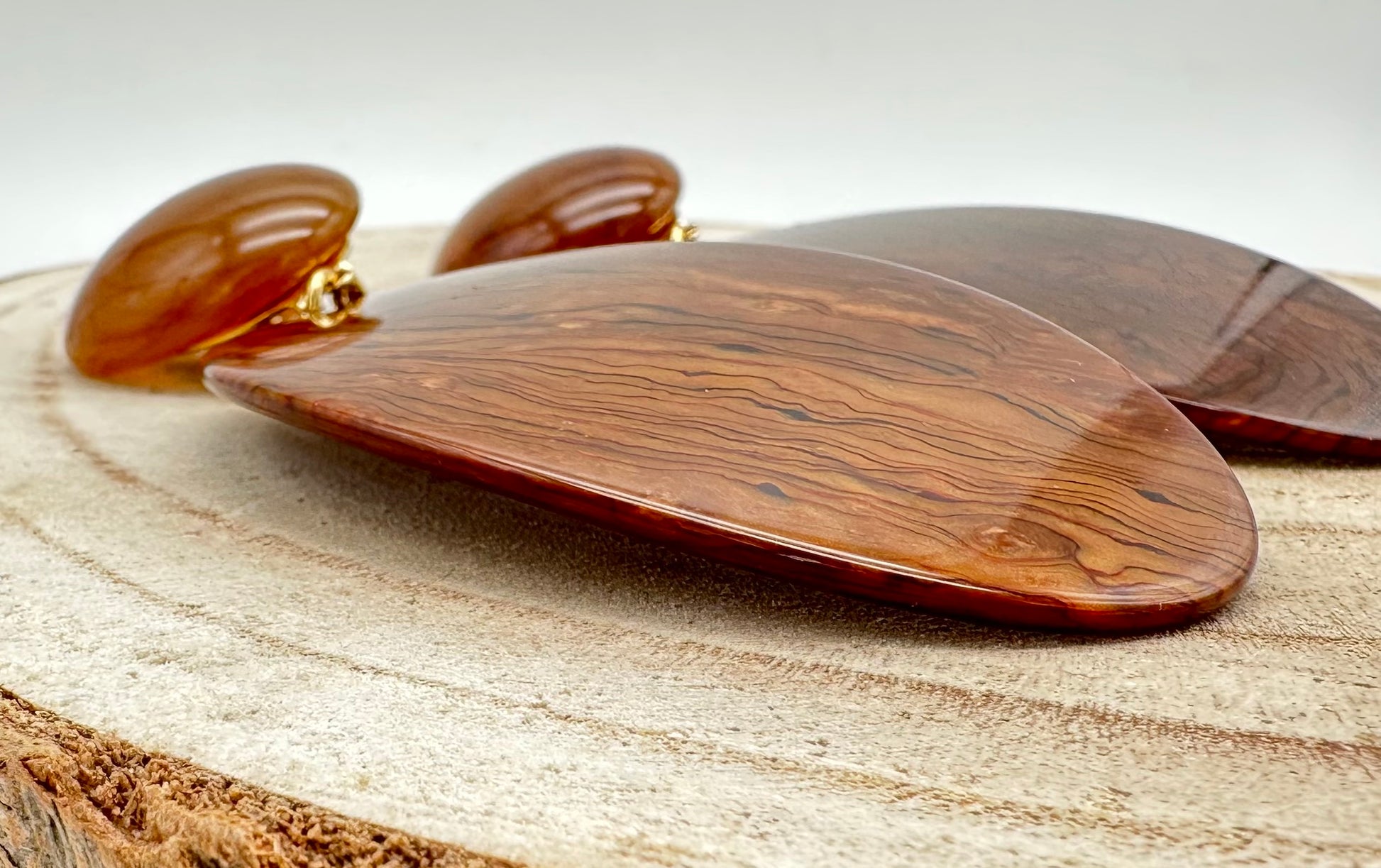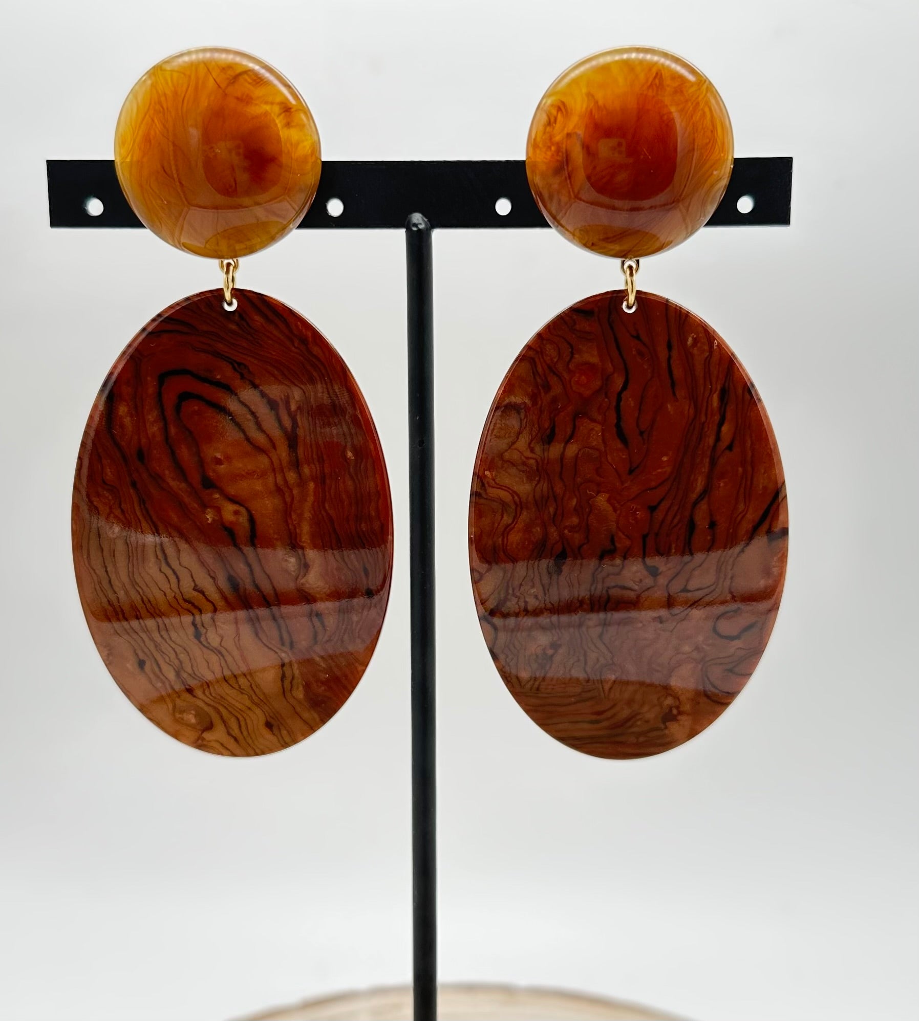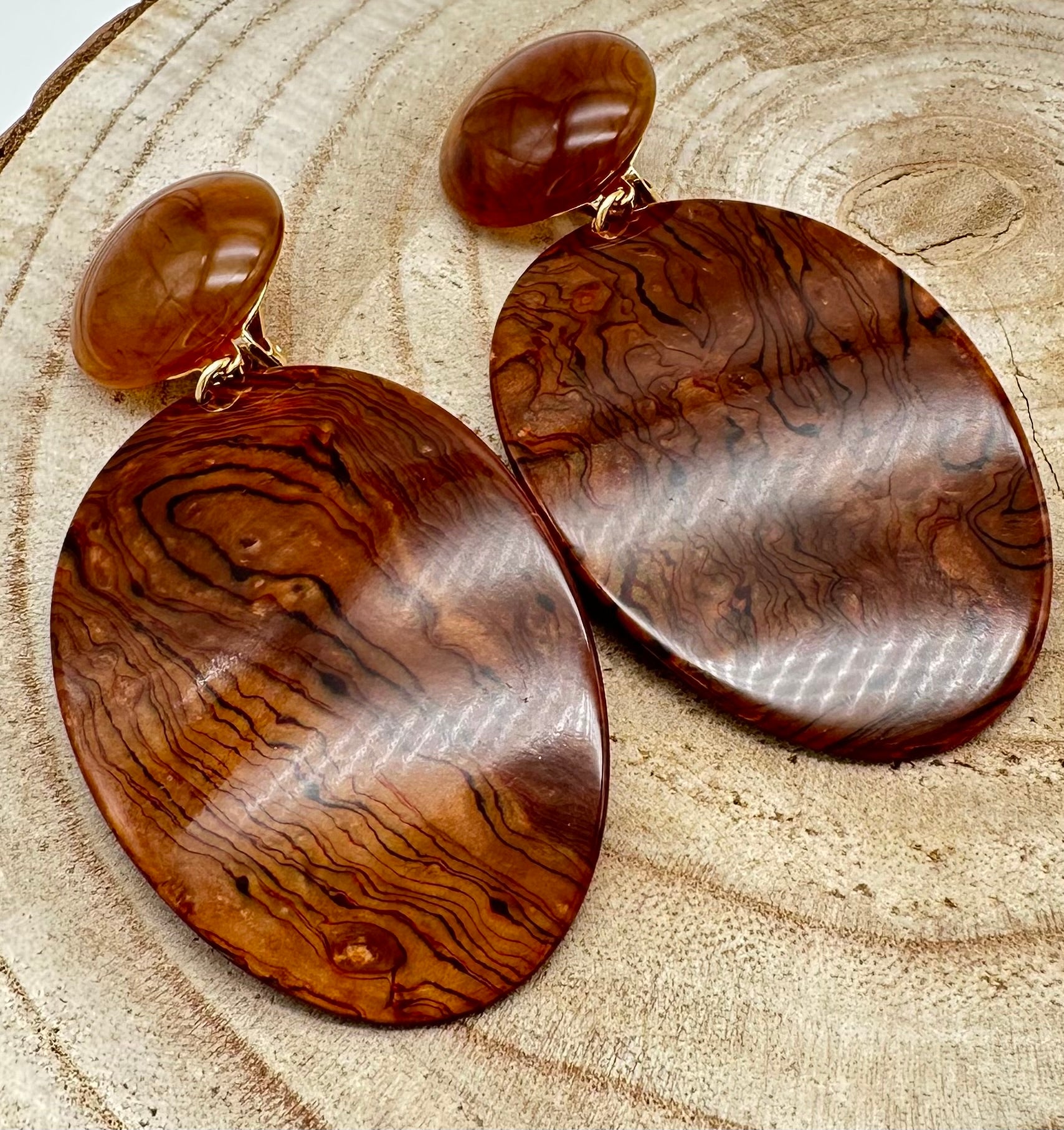 Boucle d’oreille Francine BRAMLI - imprimé bois, ton camel
