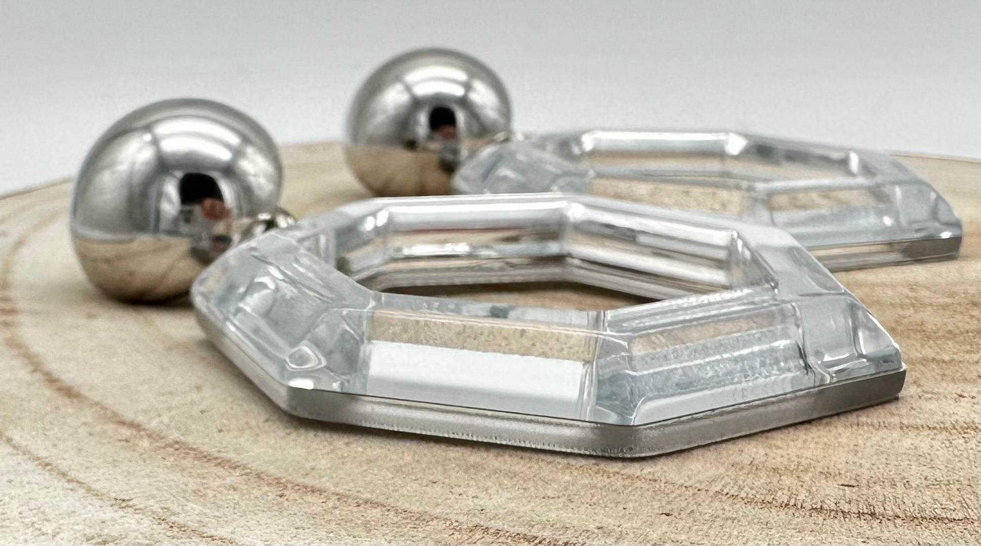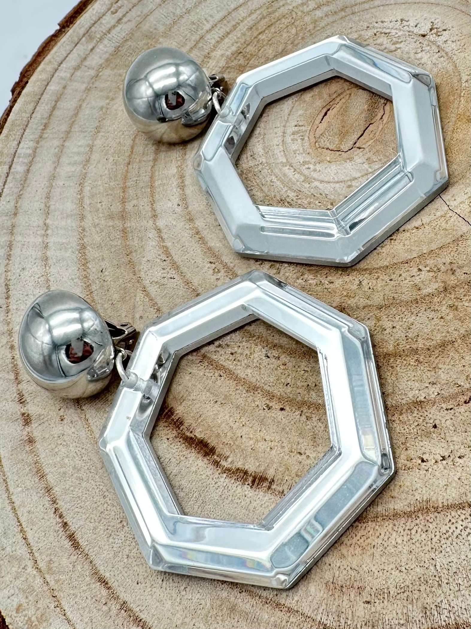 Boucle d’oreille Miroir blanc hexagonale - Francine BRAMLI