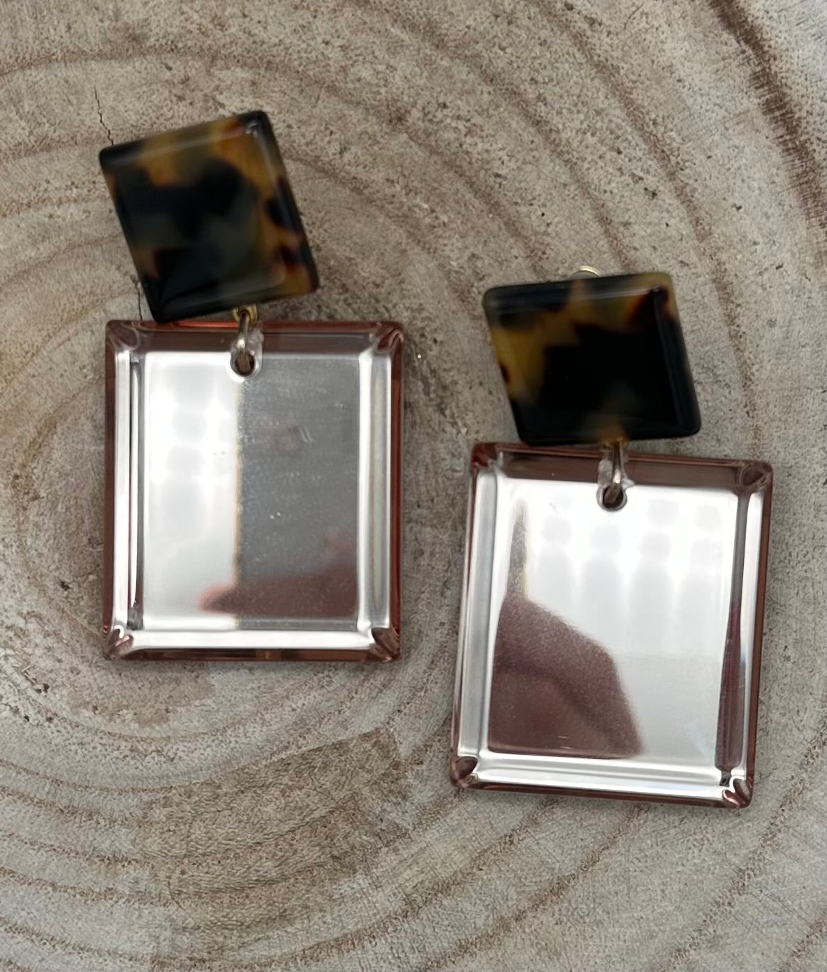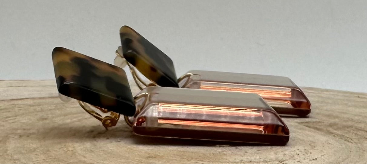 Boucle d’oreille Miroir jaune, cabochon léopard - Francine BRAMLI