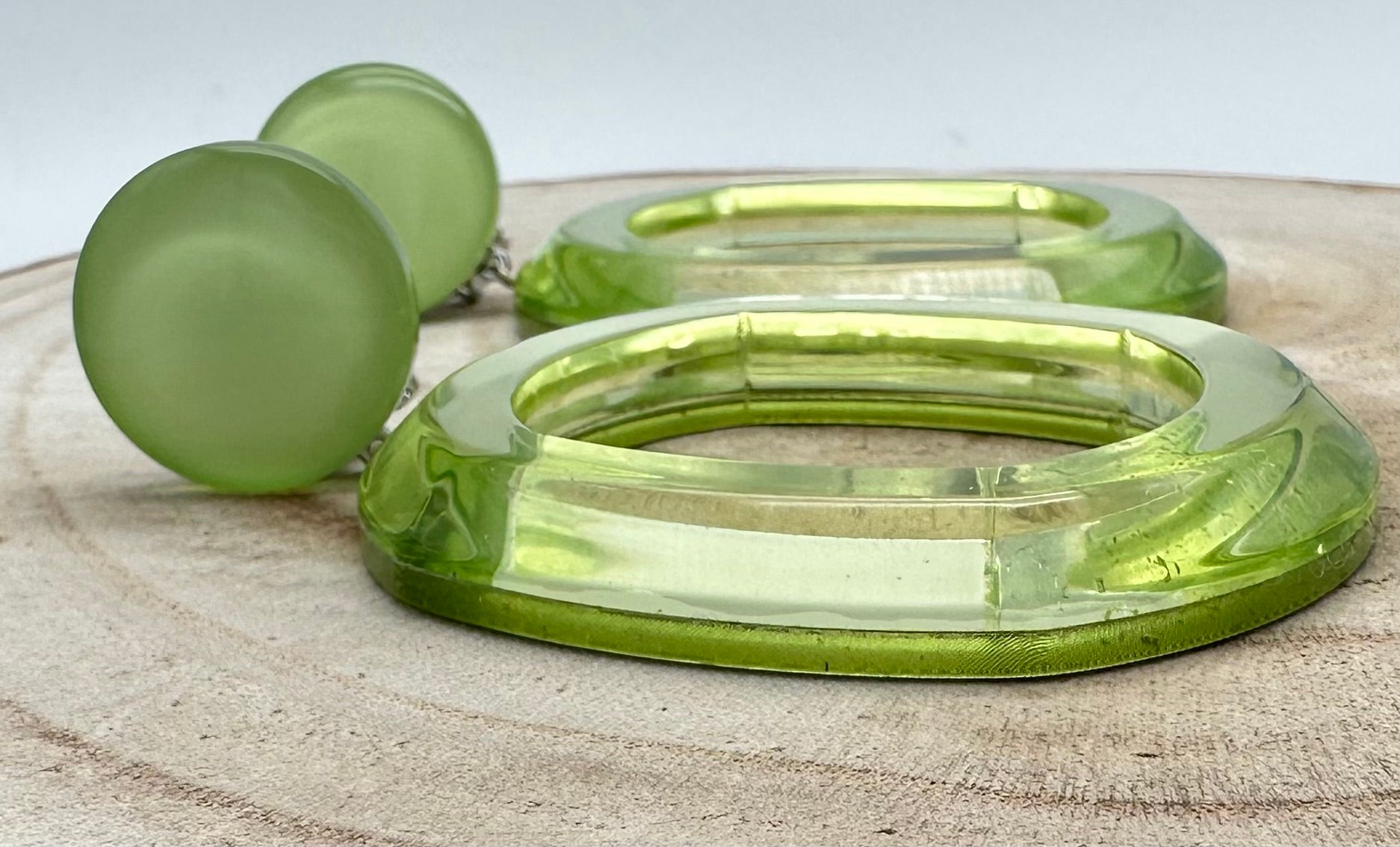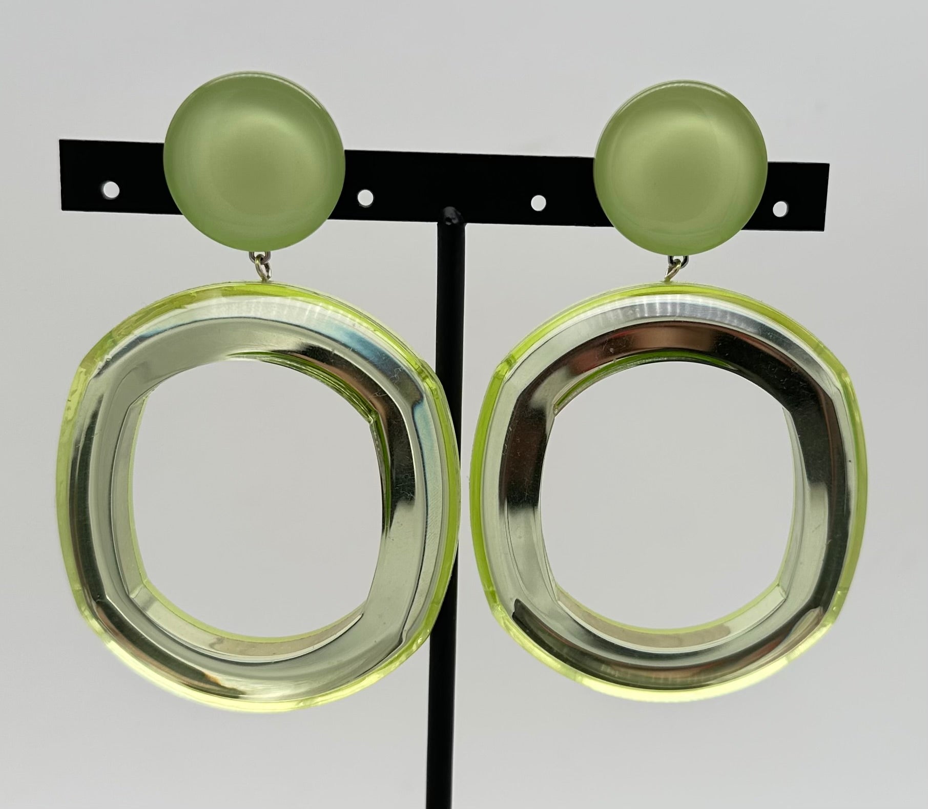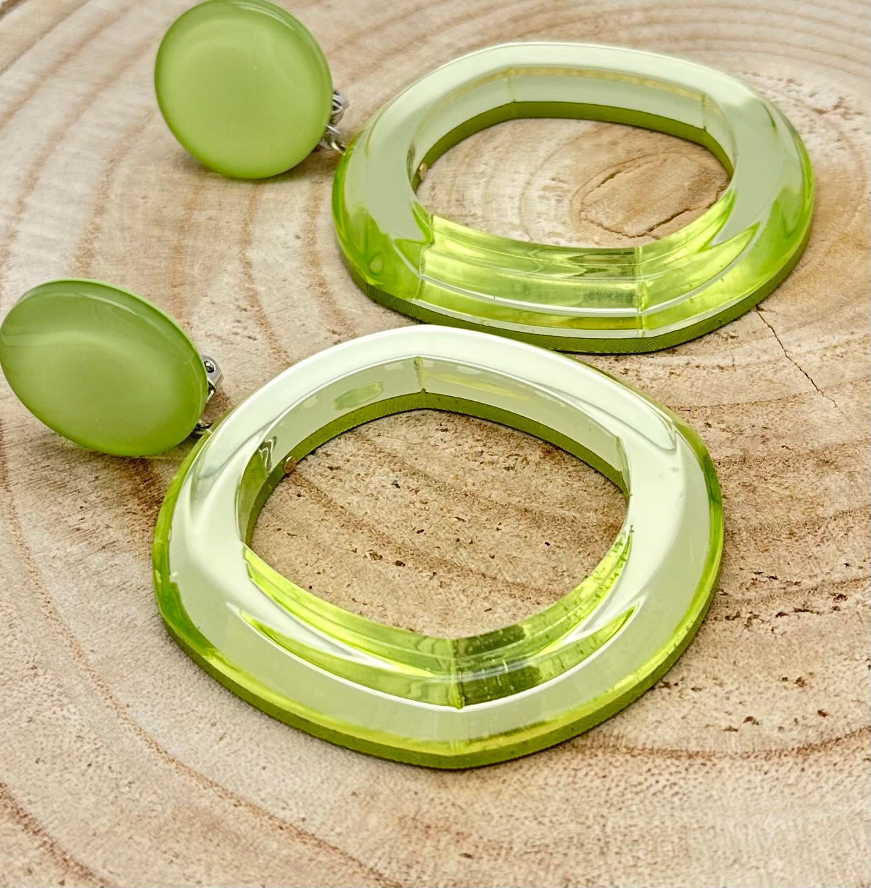 Boucle d’oreille Miroir ovale vert anis- Francine BRAMLI