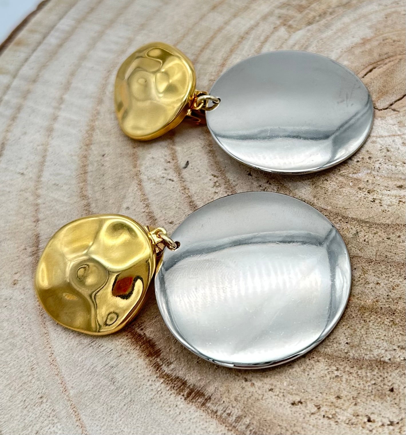 Boucle d'oreille en métal doré et argenté Francine BRAMLI