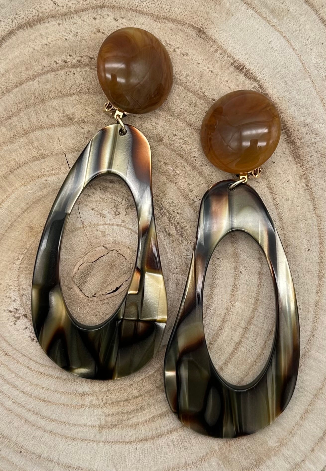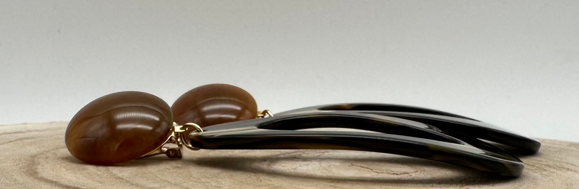 Boucle d’oreille Onyx, cabochon marron - Francine BRAMLI