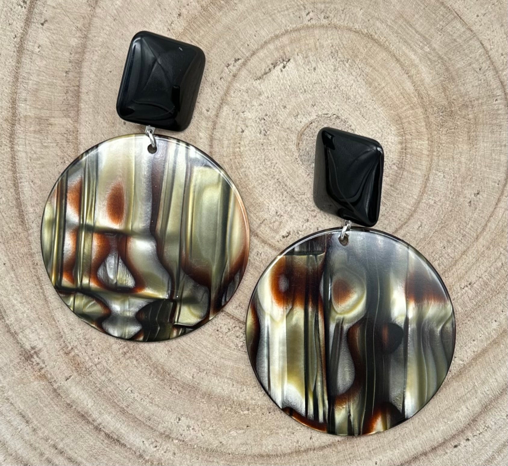 Boucle d’oreille Onyx, cabochon carré noir - Francine BRAMLI