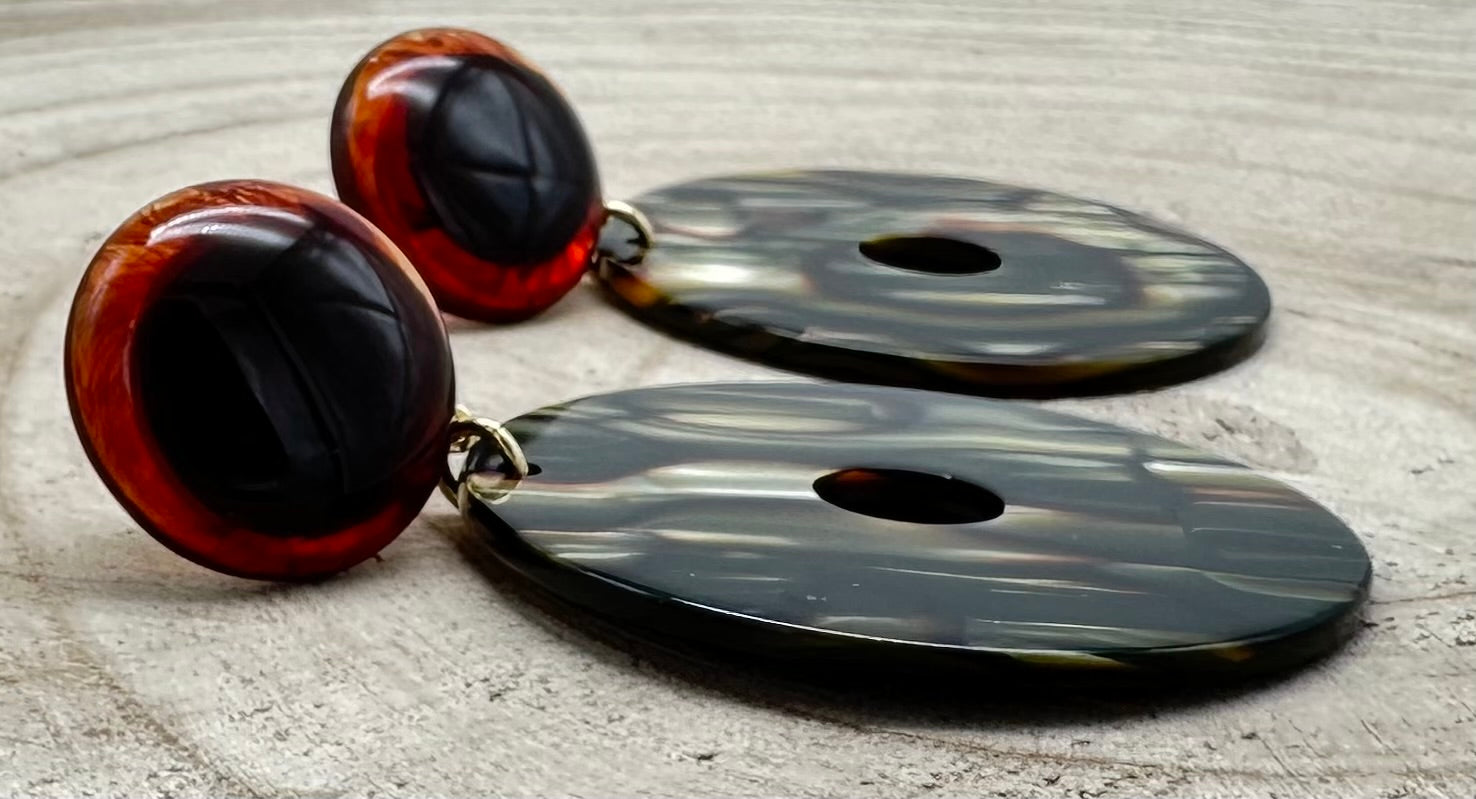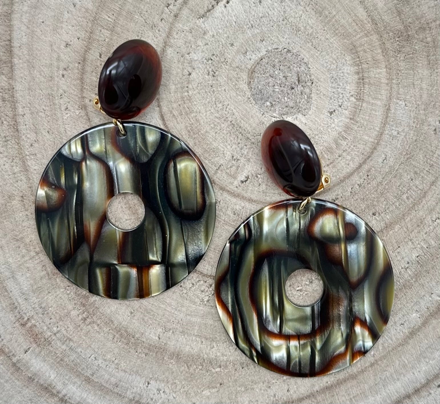 Boucle d’oreille Onyx, cabochon marron caramel, plaque onyx - Francine BRAMLI