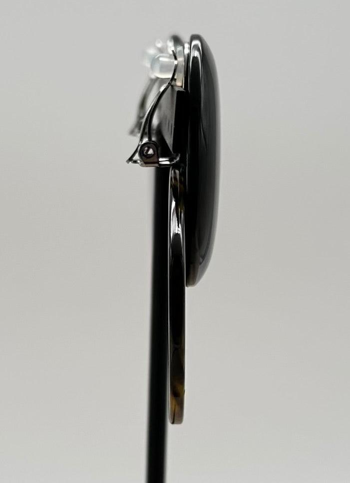 Boucle d’oreille Onyx, plaque fixe, gros cabochon rond noir - Francine BRAMLI