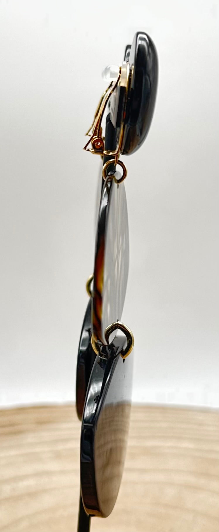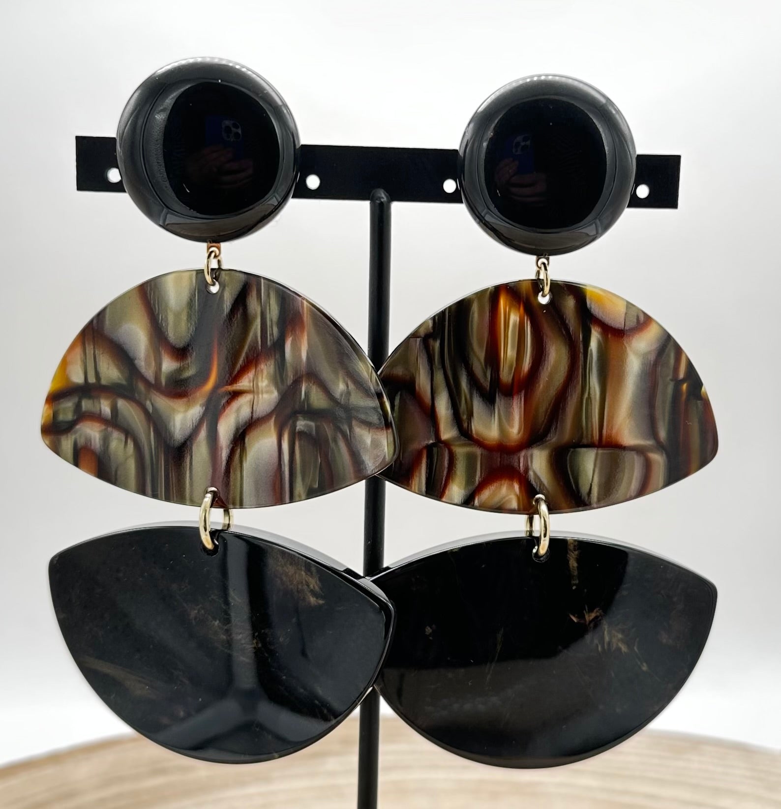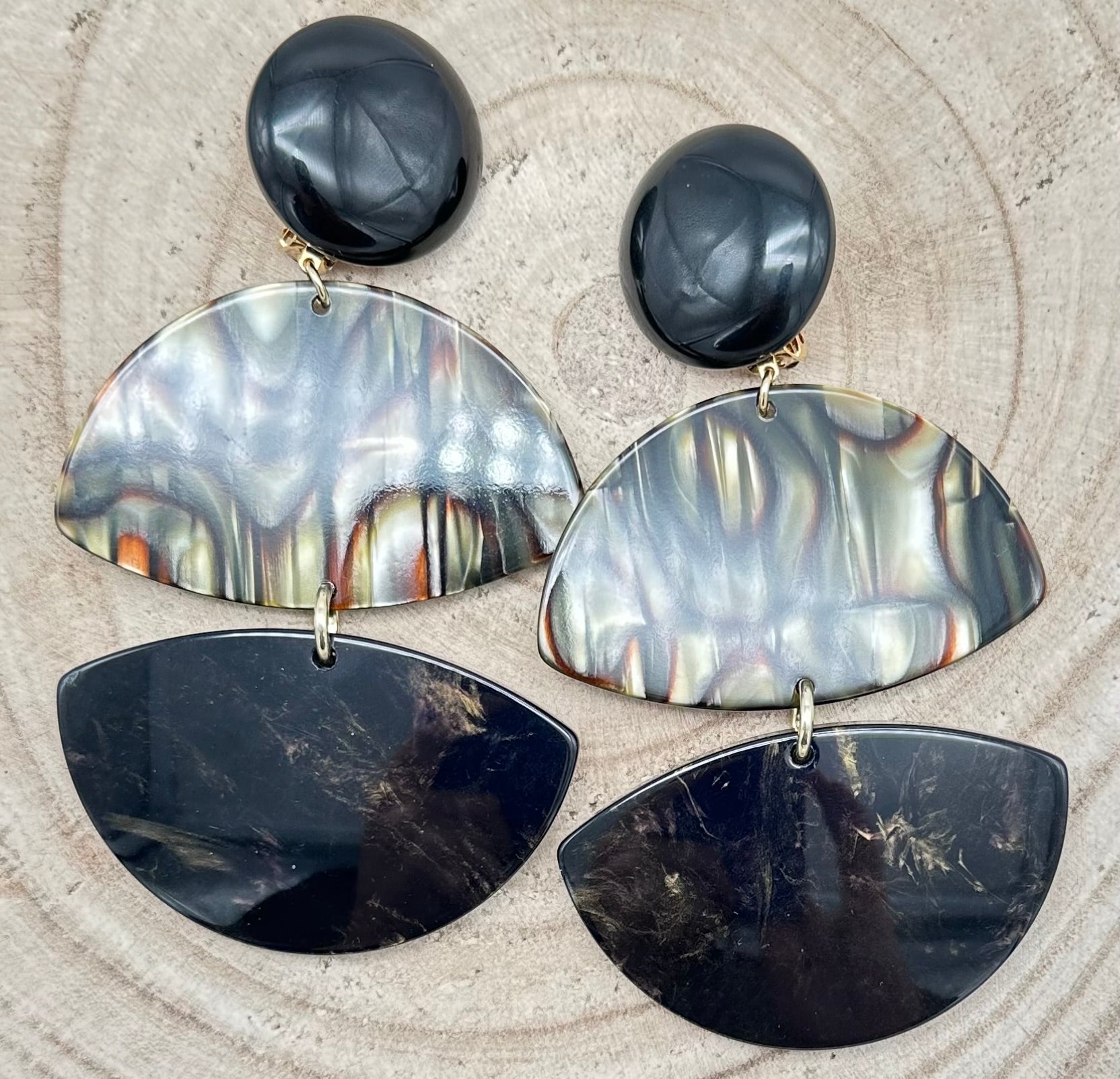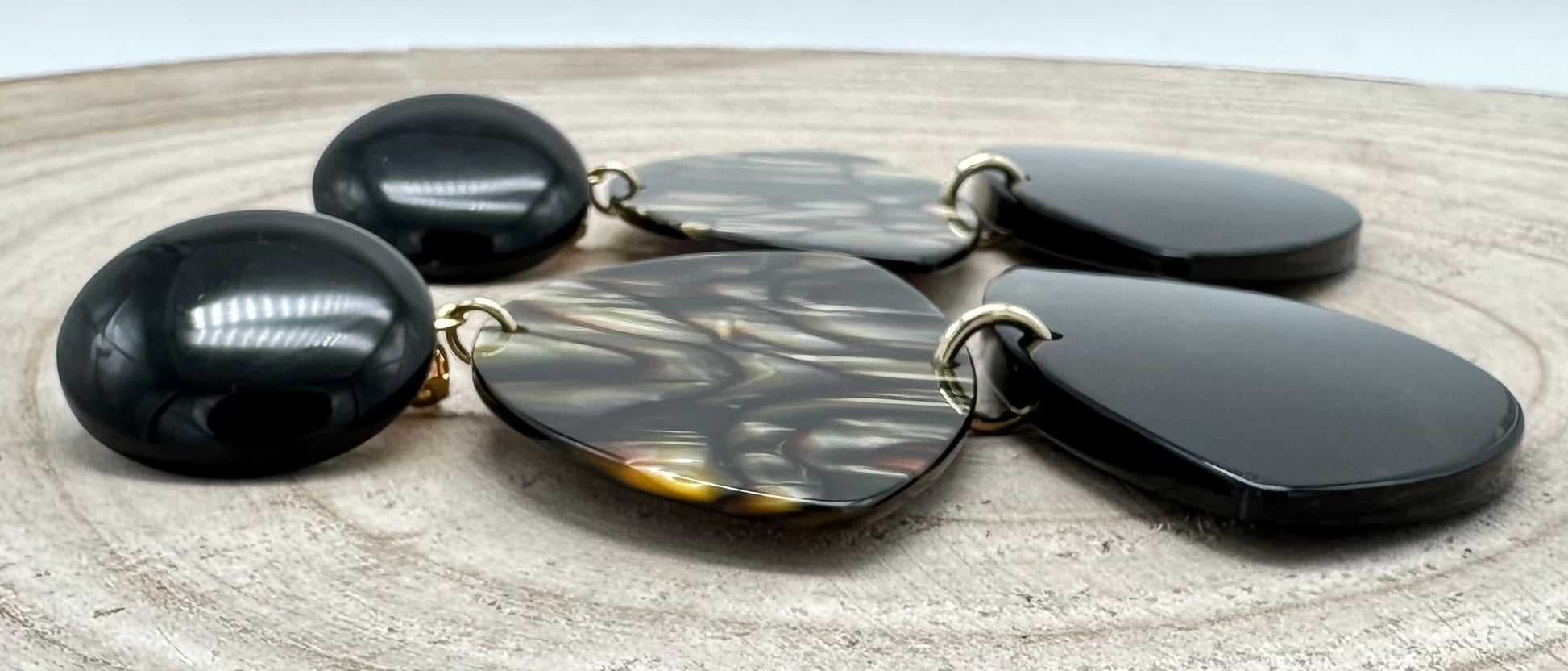 Boucle d’oreille Onyx, cabochon noir, dernière plaque noire marbré - Francine BRAMLI