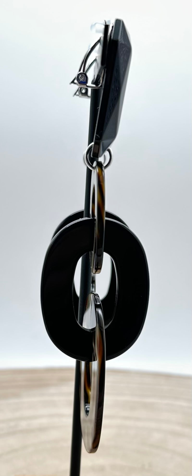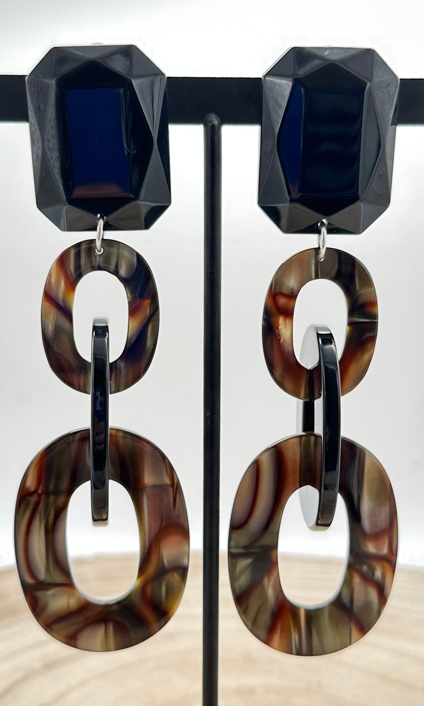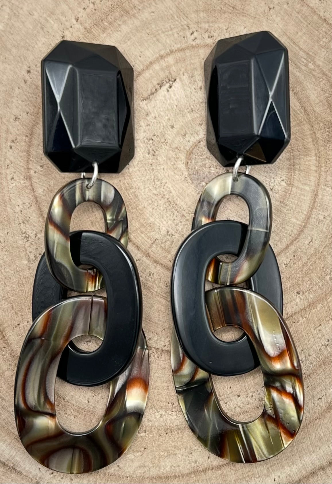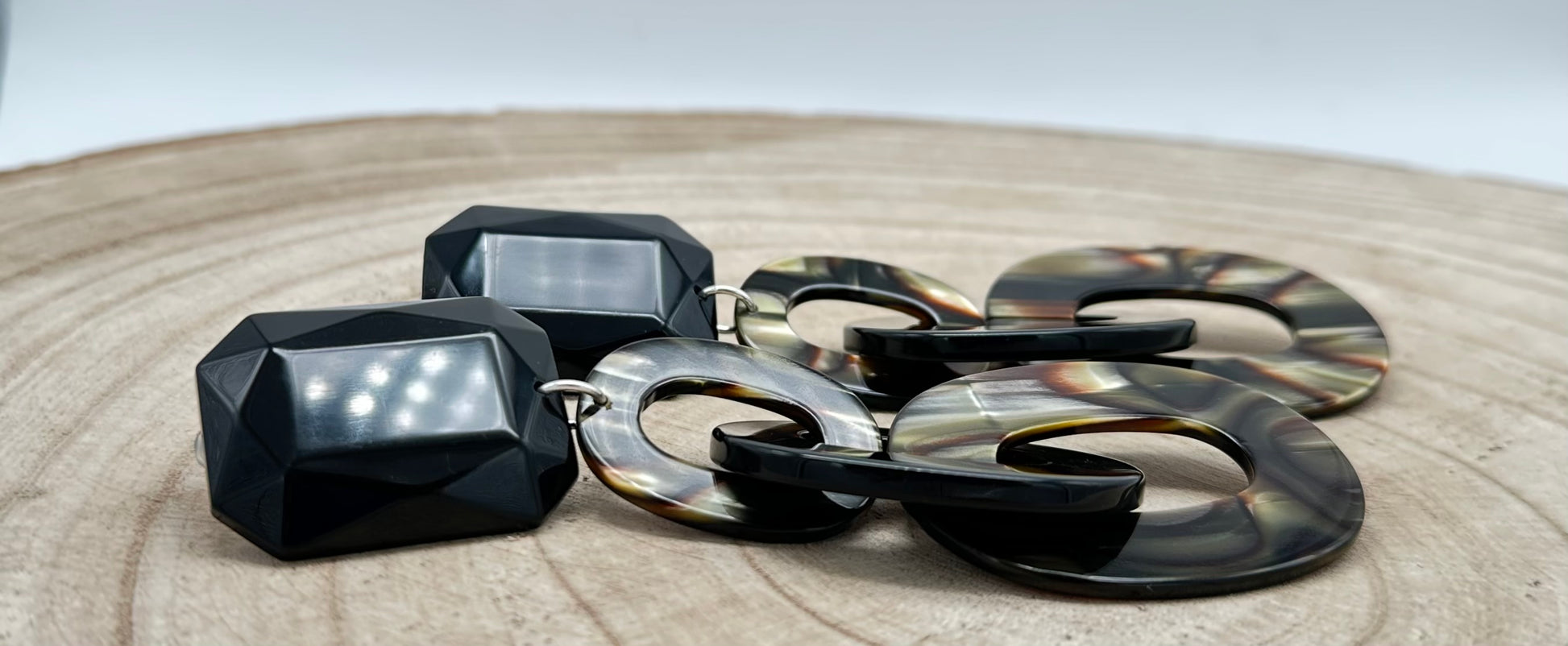 Boucles d’oreilles Onyx, deux éléments en Onyx, cabochon noir et élément noir - Francine BRAMLI
