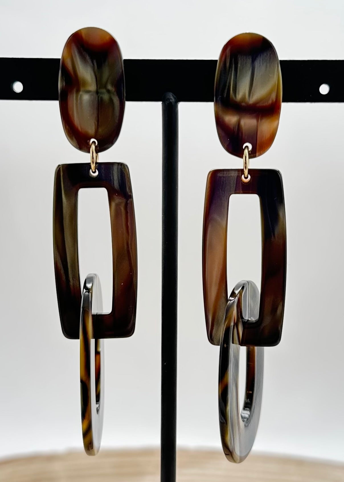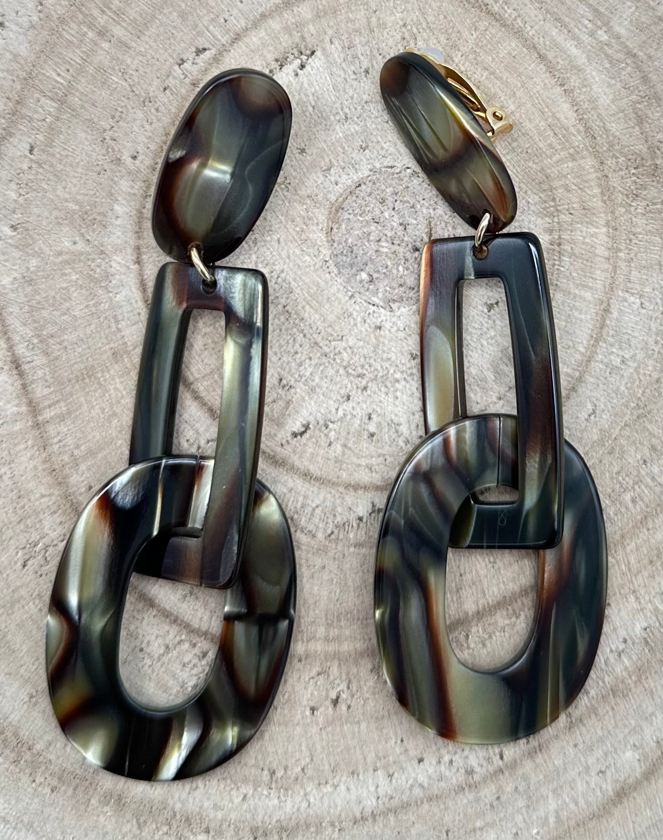 Boucle d’oreille Onyx, cabochon ovale, élément rectangulaire - Francine BRAMLI