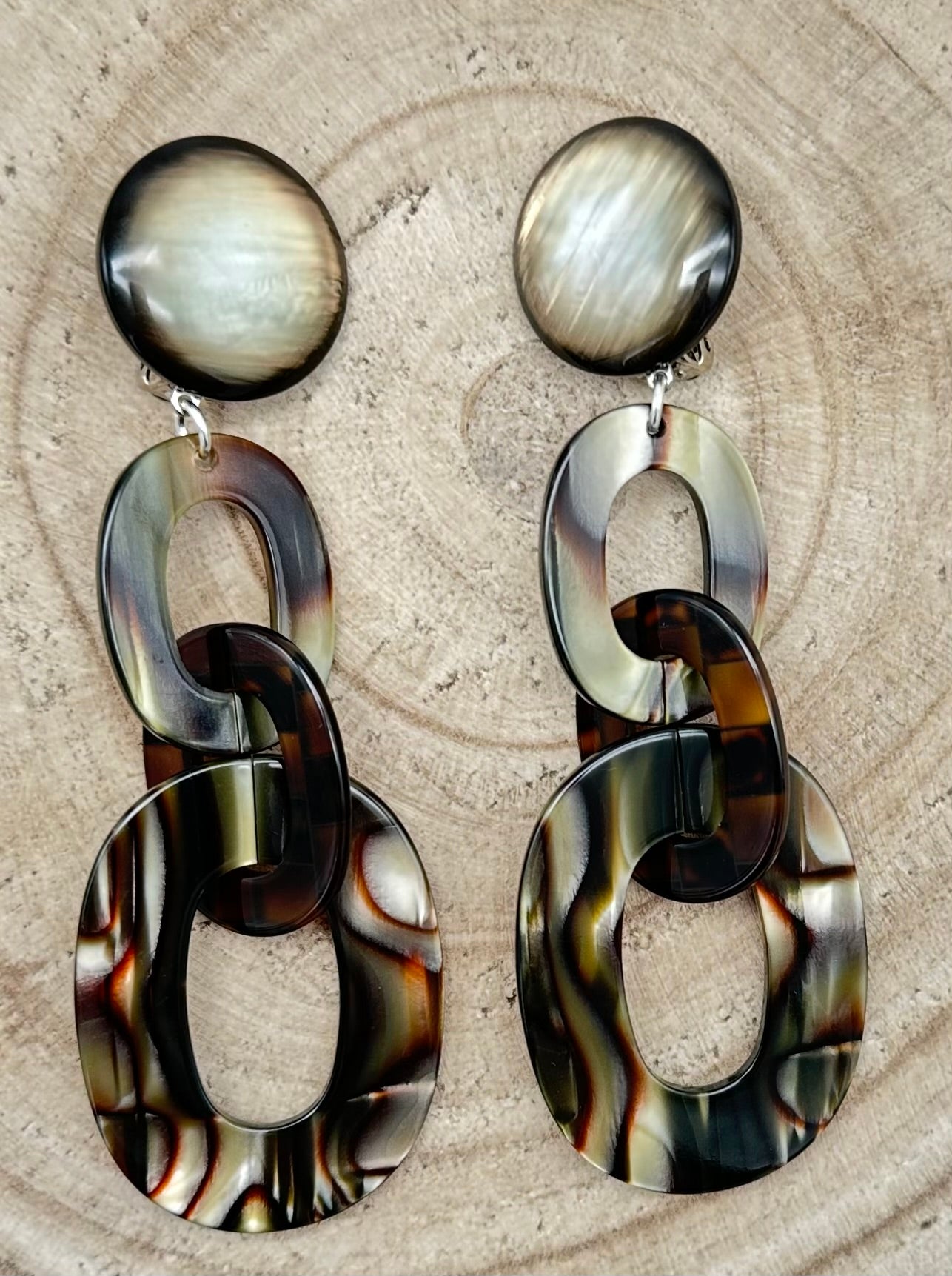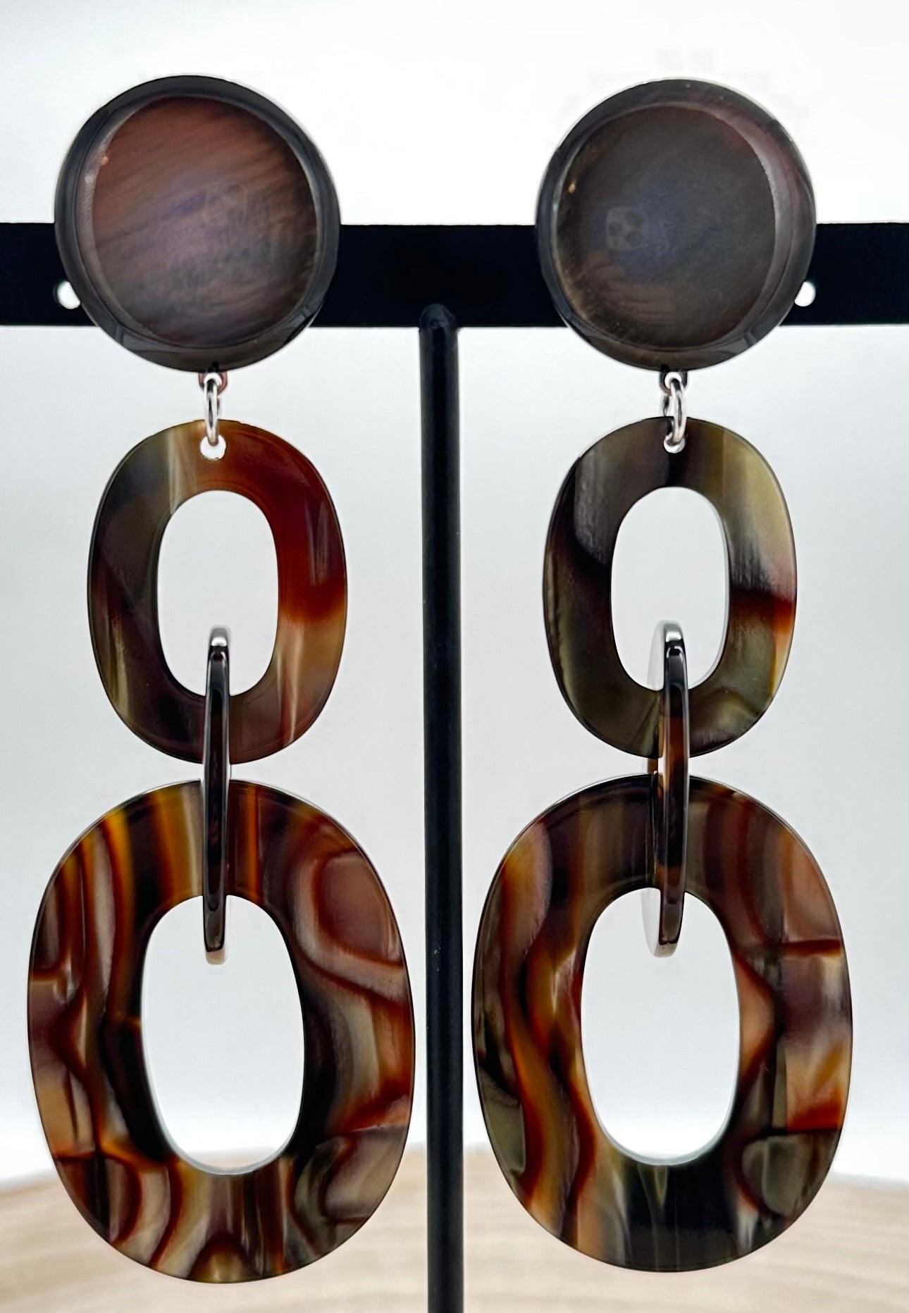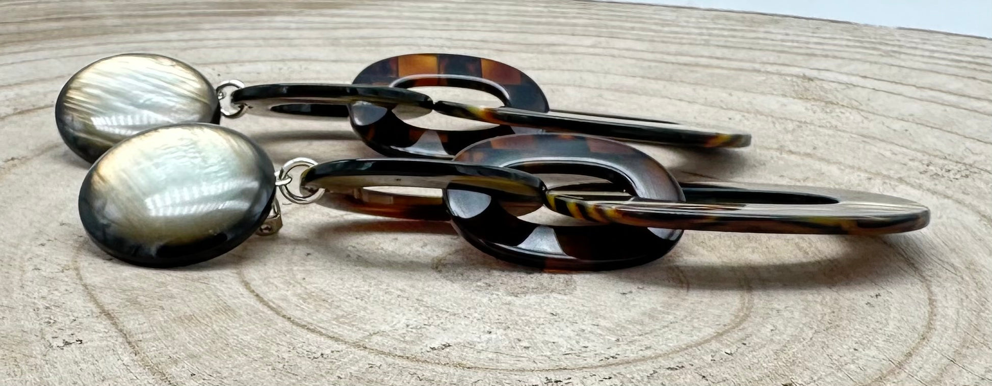 Boucles d’oreilles Onyx, cabochon otarie, élément centrale avec forme géométrique - Francine BRAMLI