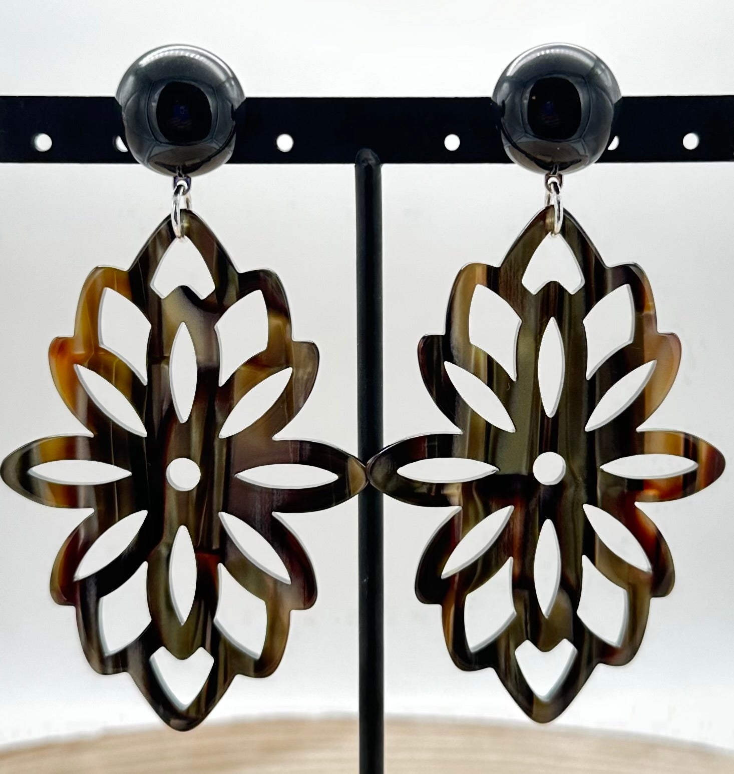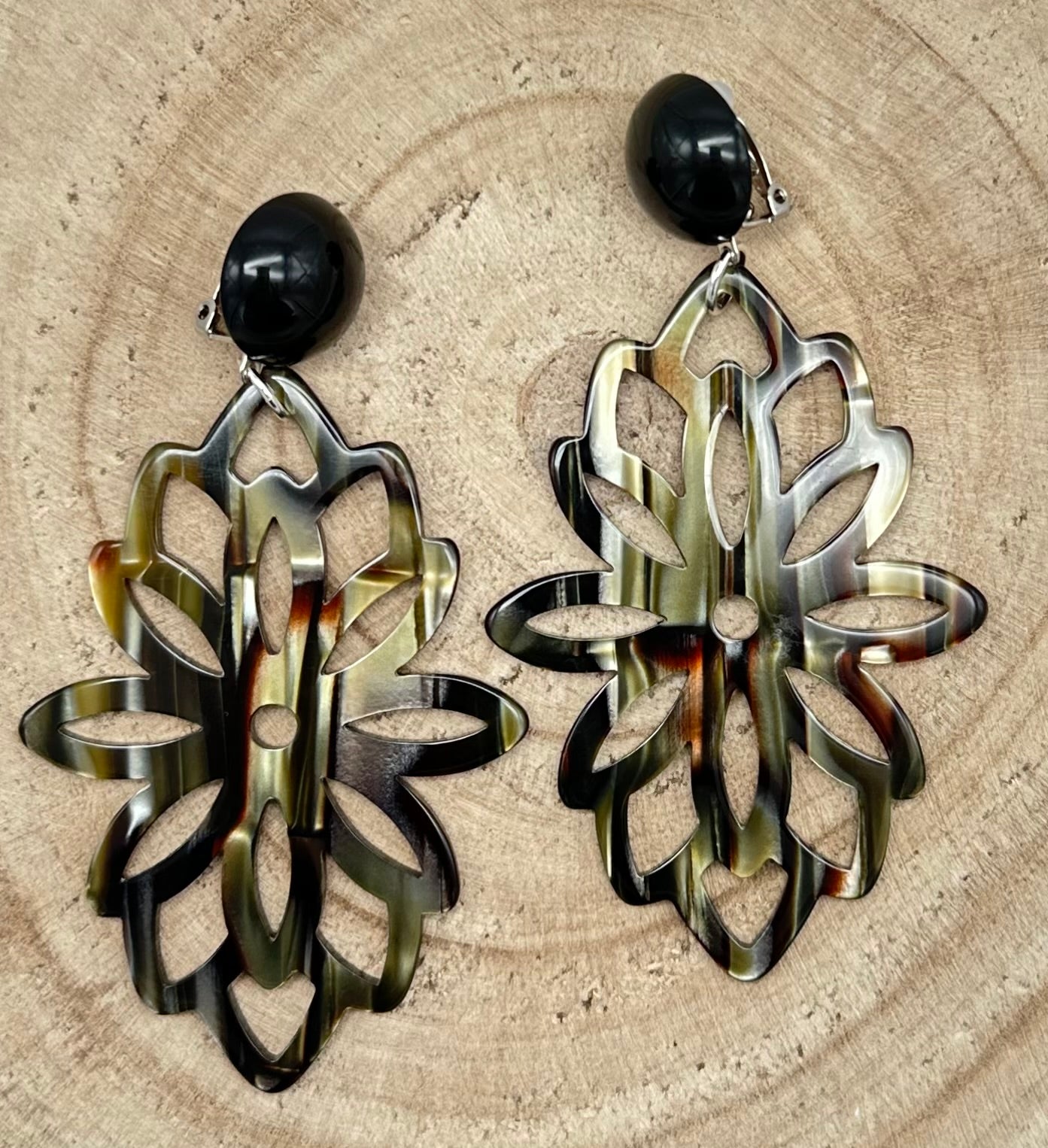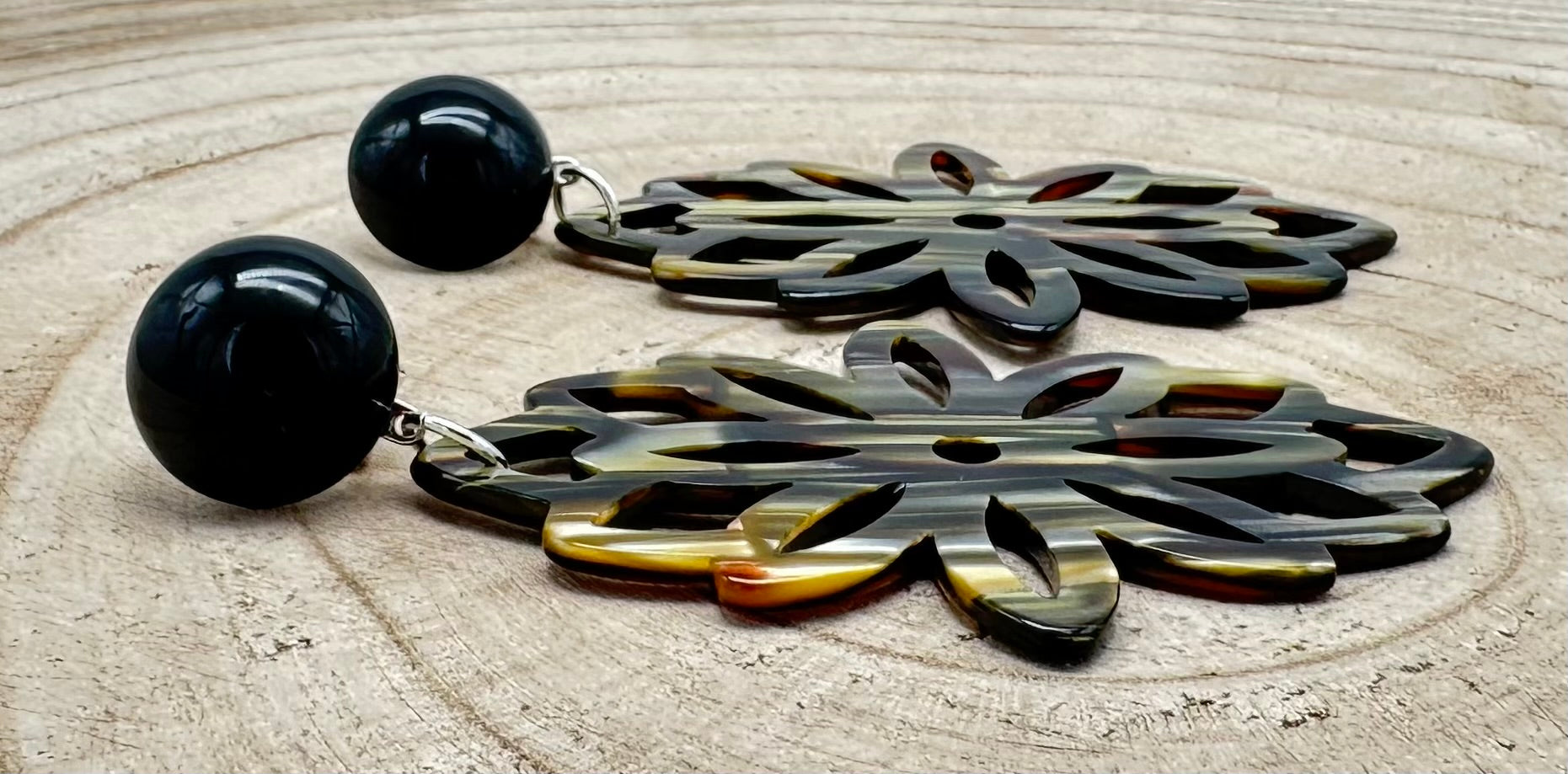 Boucle d’oreille Onyx, fleur - Francine BRAMLI