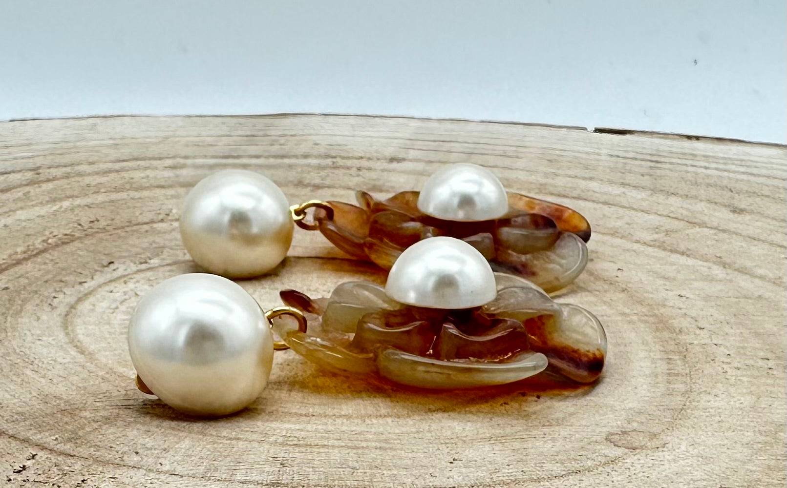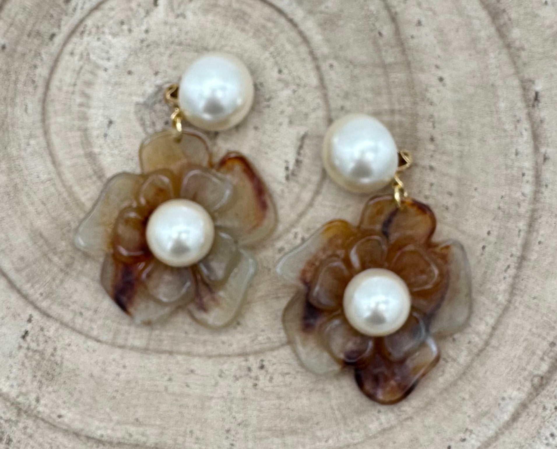 Boucle d’oreille Perle, couleur miel, en fleur - Francine BRAMLI