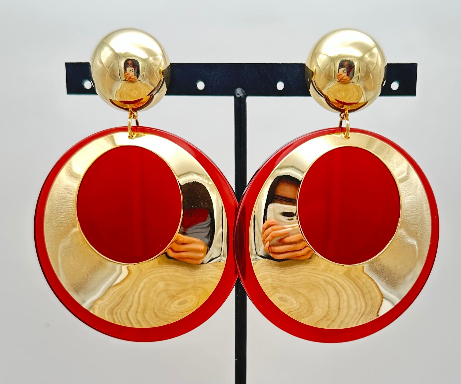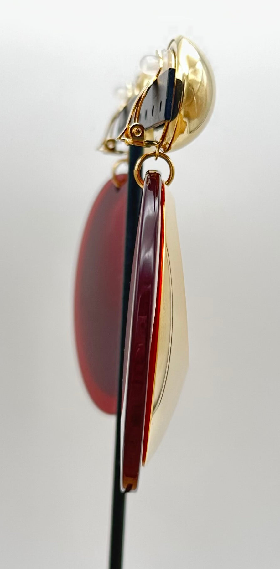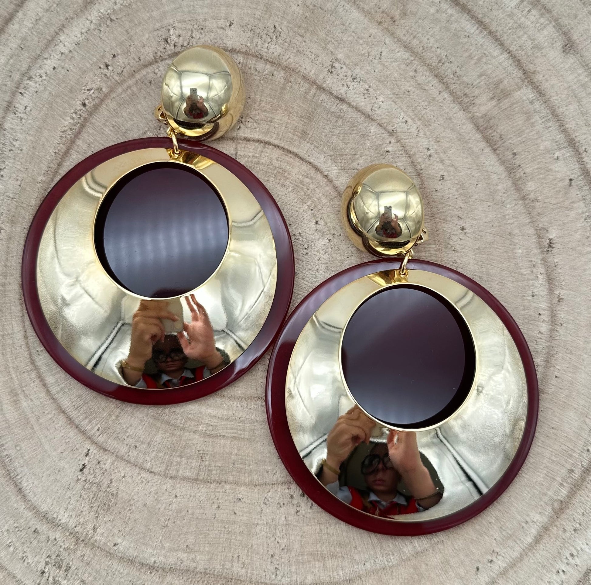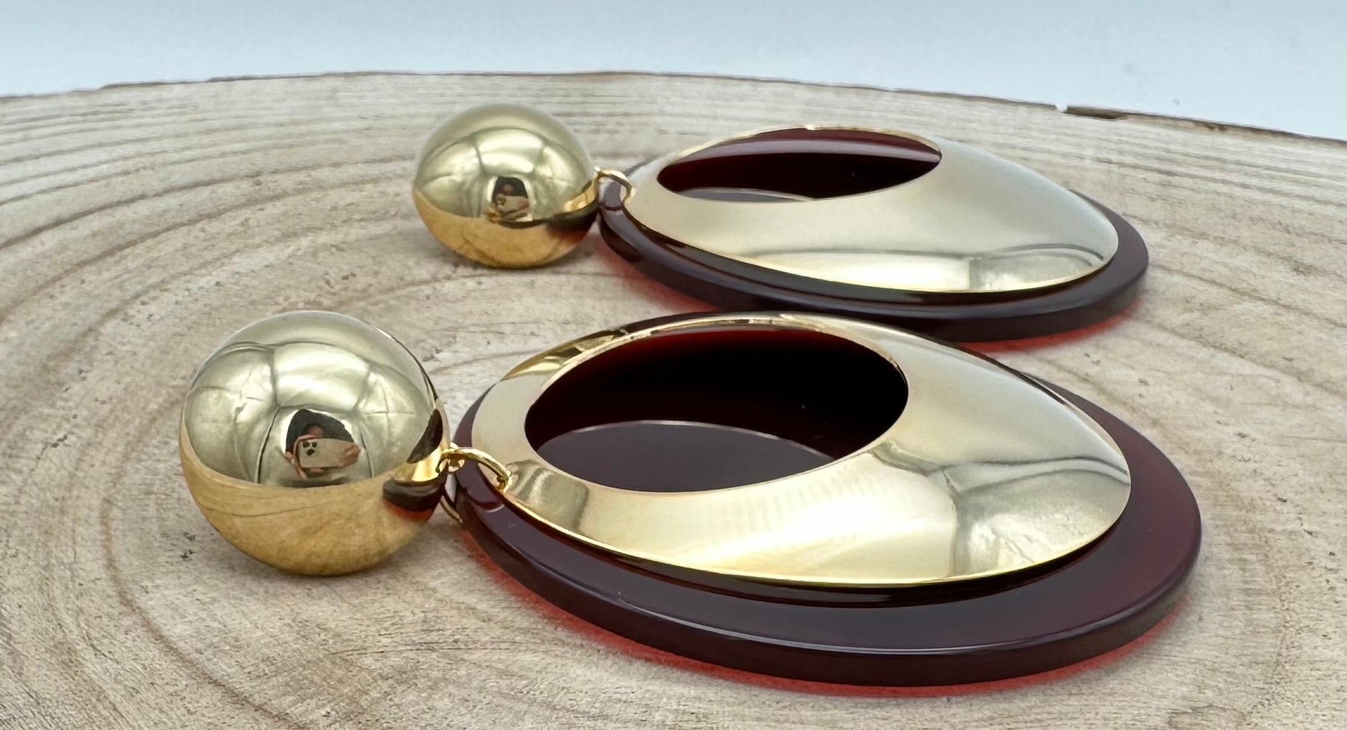 Boucle d’oreille Plaqué, plaque cerise, et petite plaque dorée - Francine BRAMLI