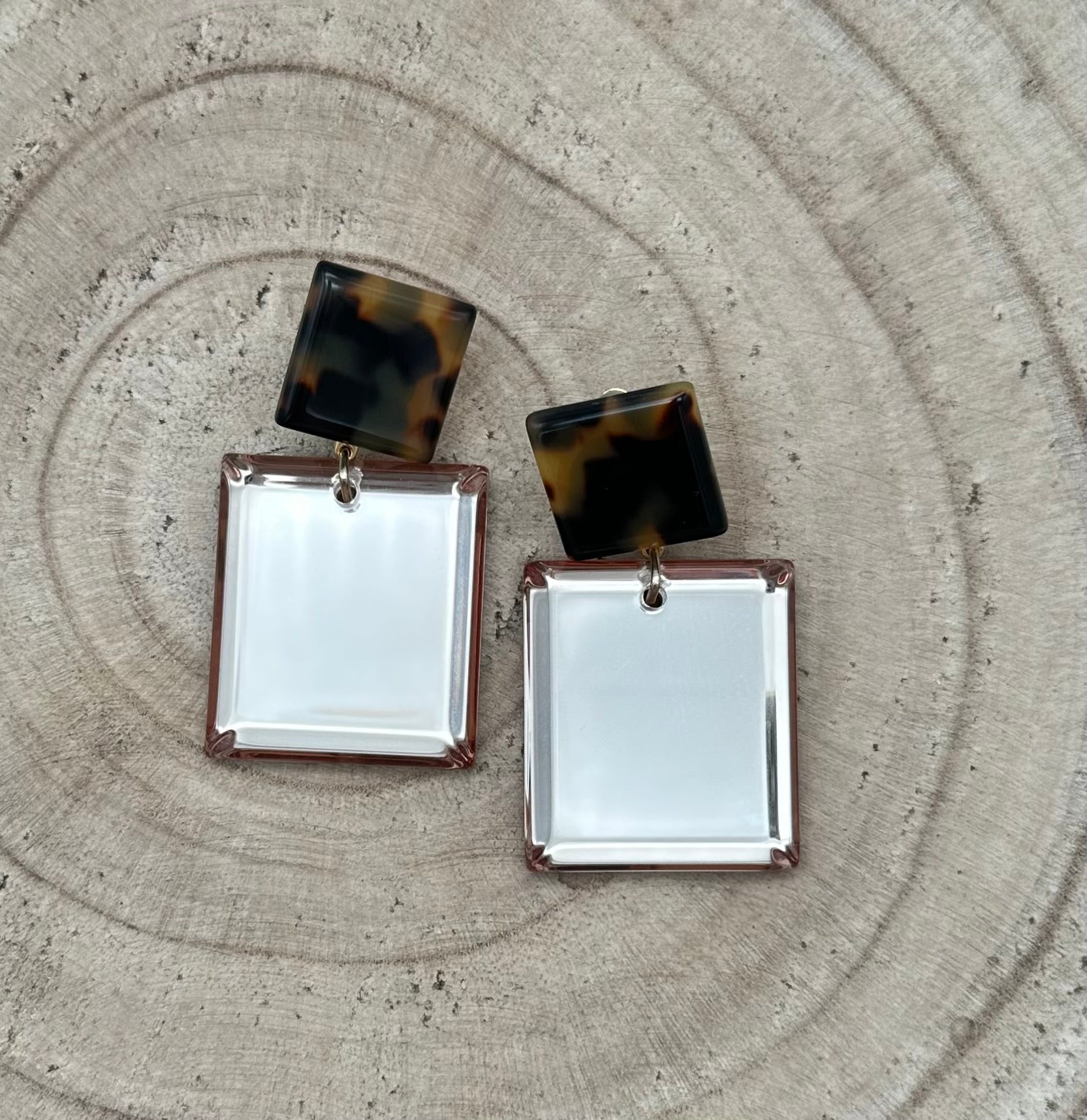 Boucle d’oreille Tokyo, plaque miroir - Francine BRAMLI