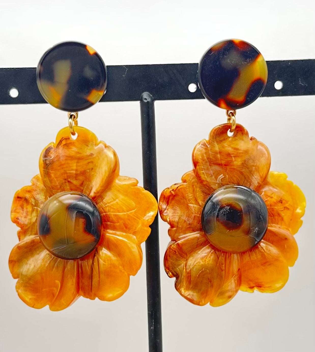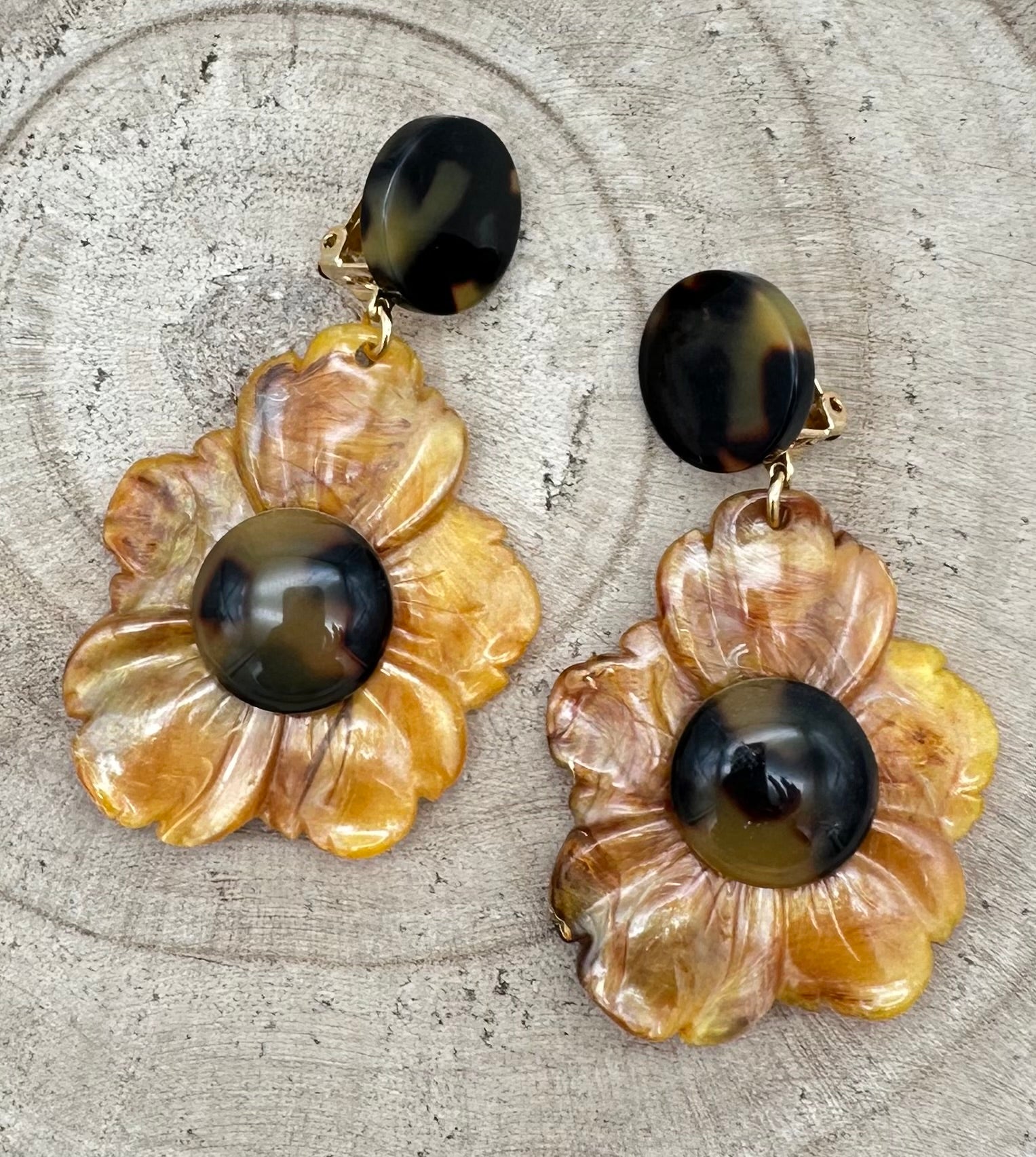 Boucle d’oreille Tokyo, couleur miel , en fleur - Francine BRAMLI