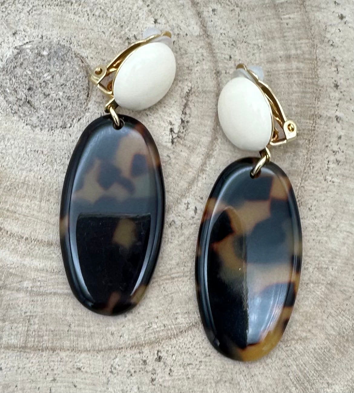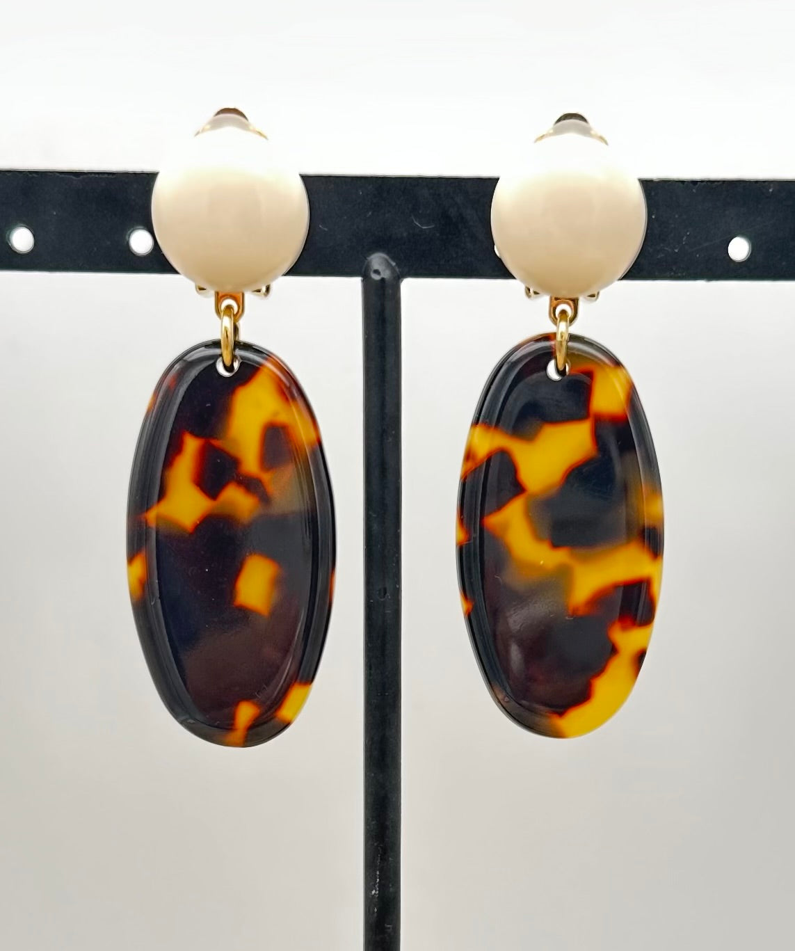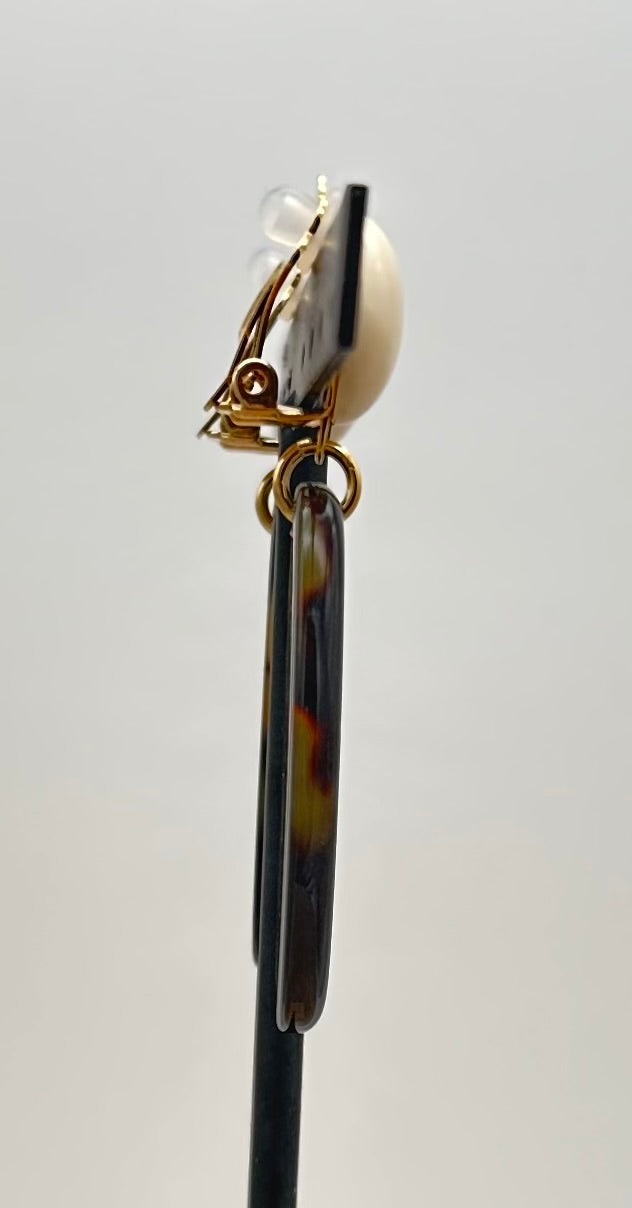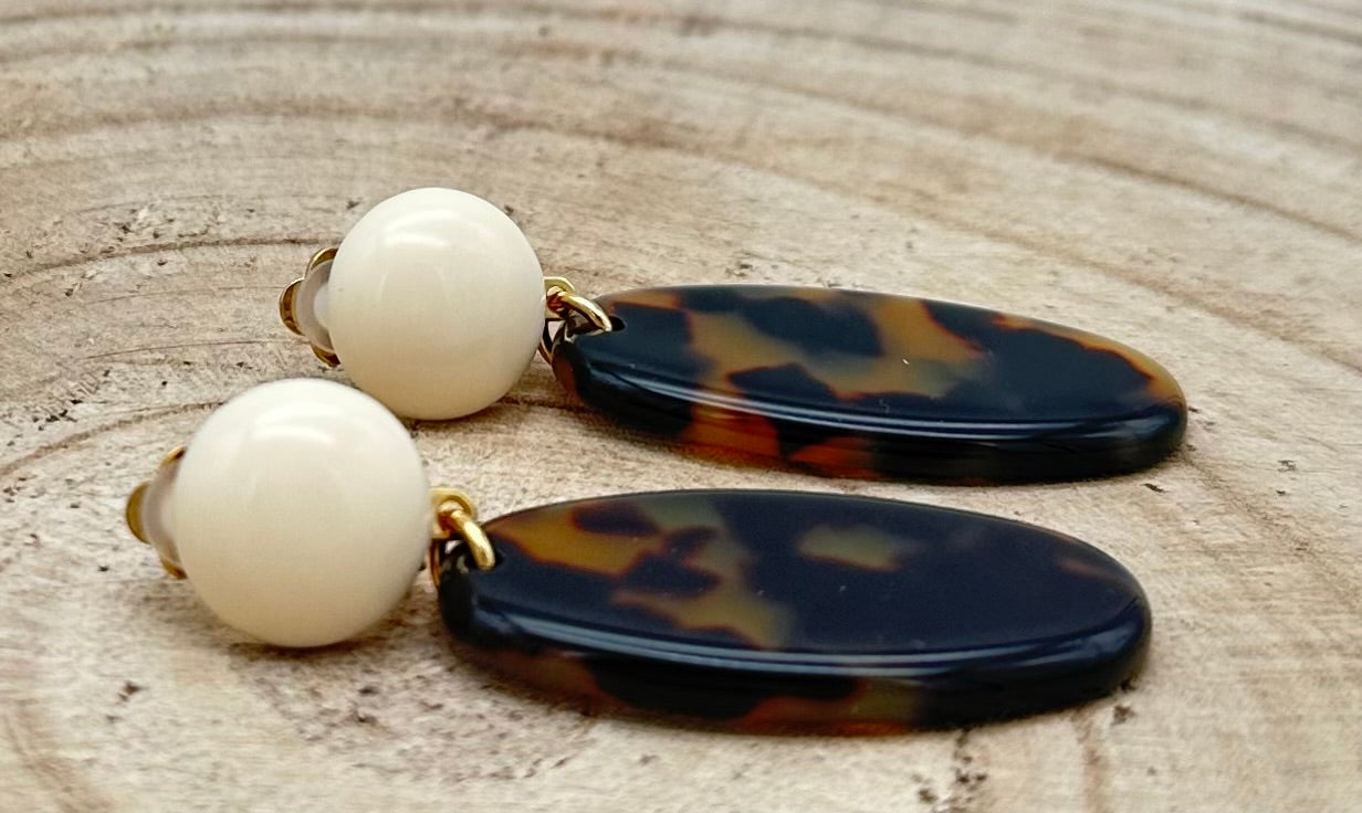 Boucle d’oreille Tokyo, cabochon blanc cassé - Francine BRAMLI