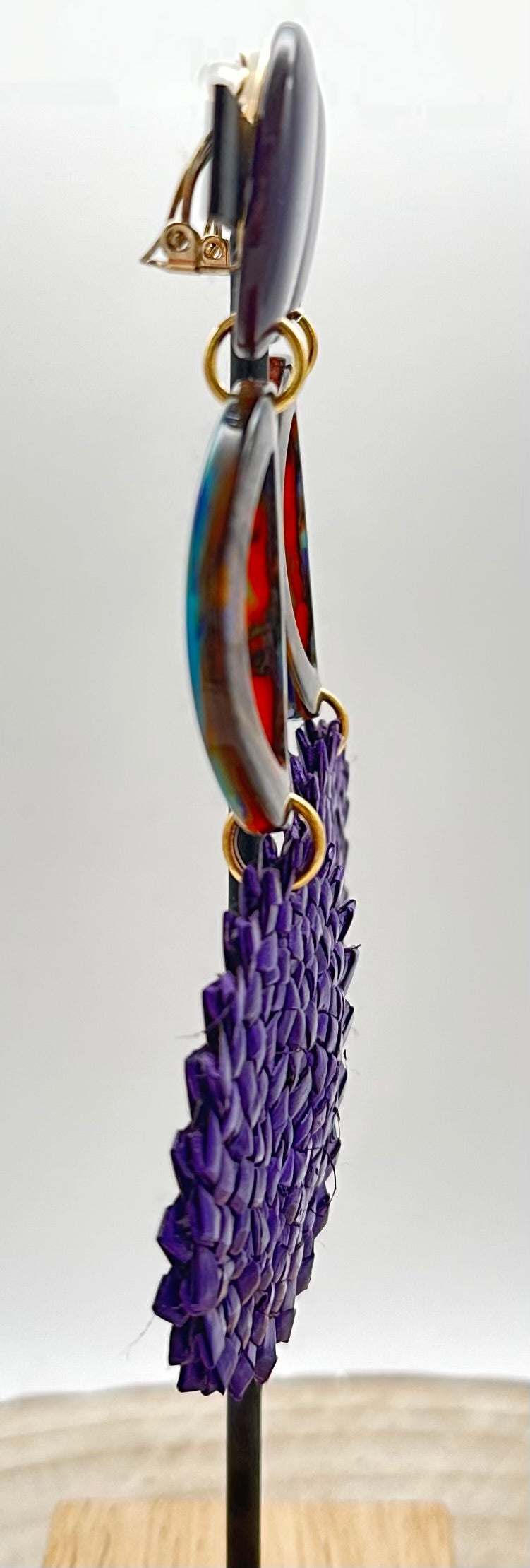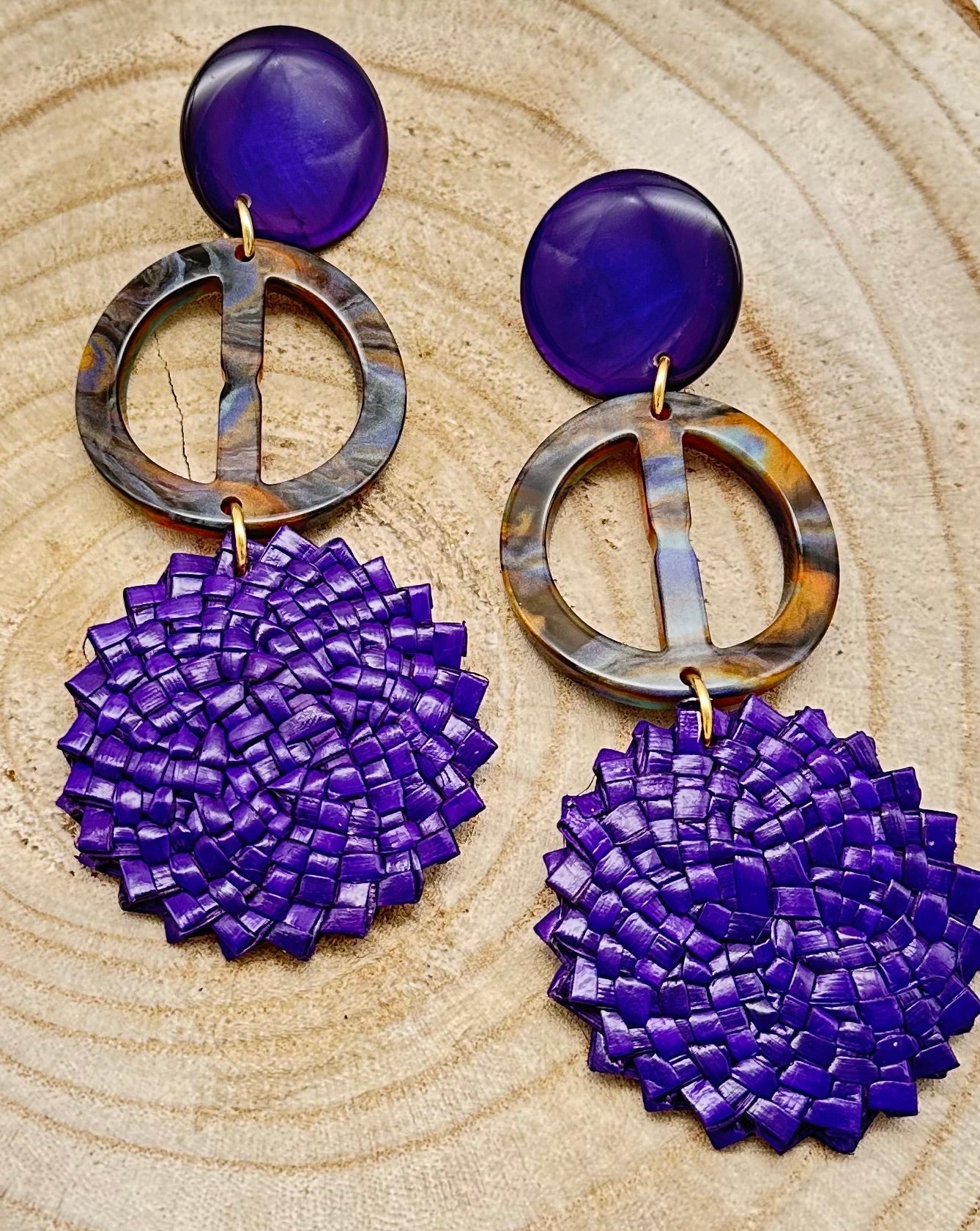 Boucle d’oreille Violette, en raphia - Francine BEAMLI