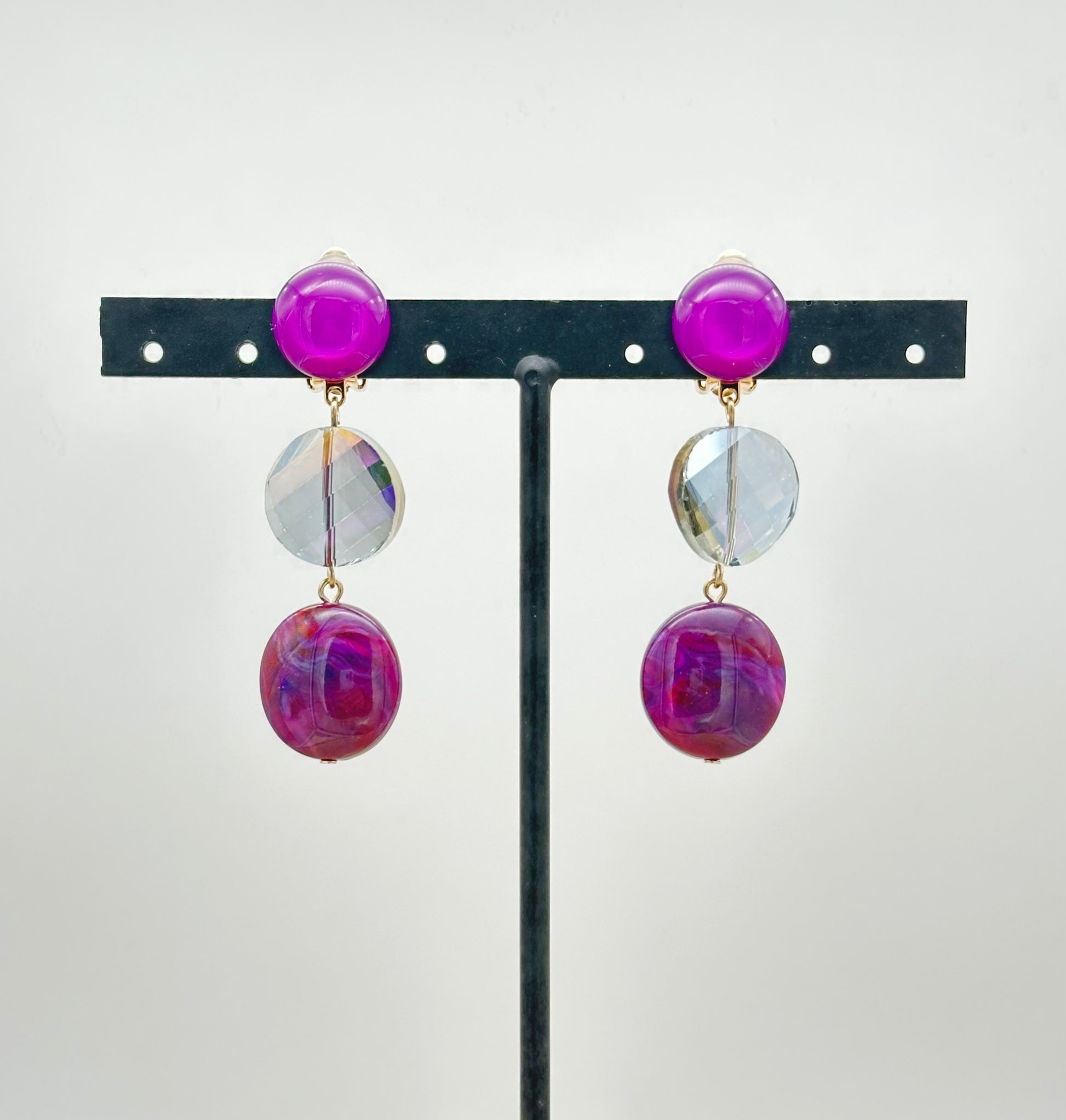 Boucles d’oreilles violettes éléments scintillants, résine végétale - Francine BRAMLI