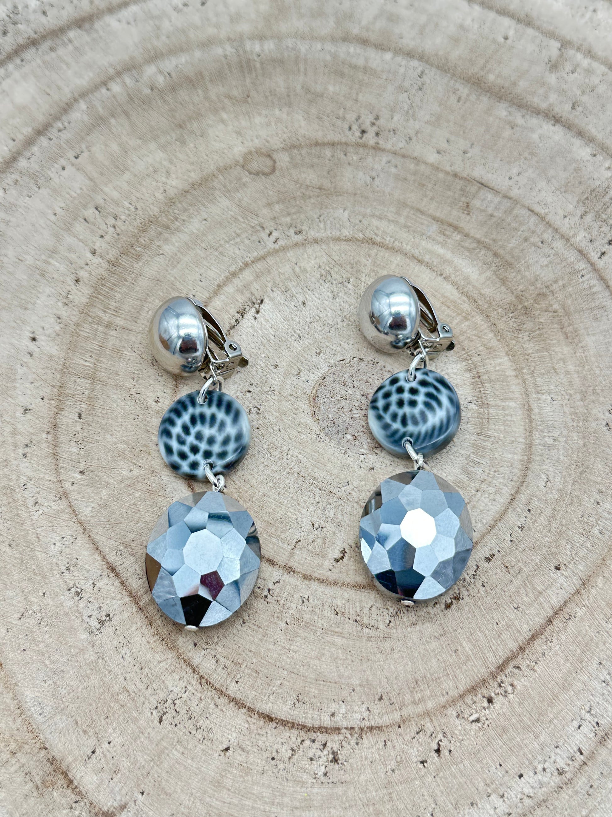 Boucles d’oreilles couleur argent éléments scintillants, motifs animaliers, résine végétale et métal - Francine BRAMLI