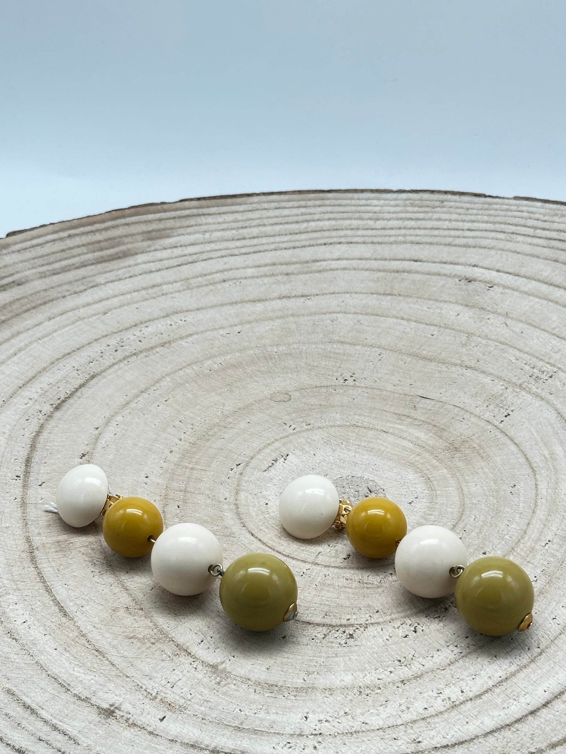 Boucles d’oreilles perles fantaisie en résine végétale, couleur olive marron et beige - Francine BRAMLI