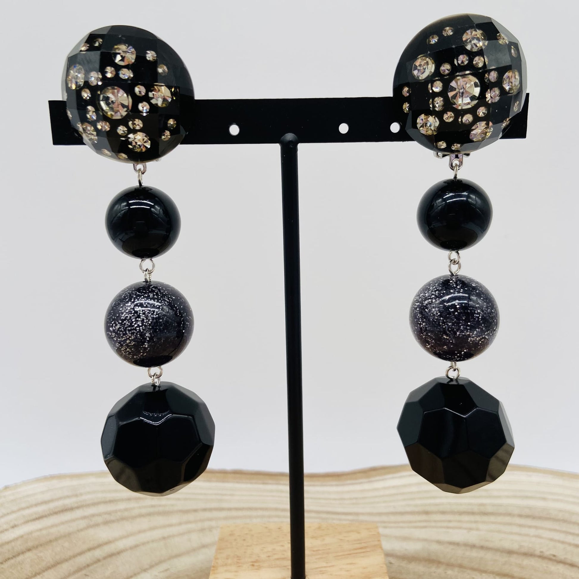 Boucles d'oreilles boules noires et strass - Francine BRAMLI
