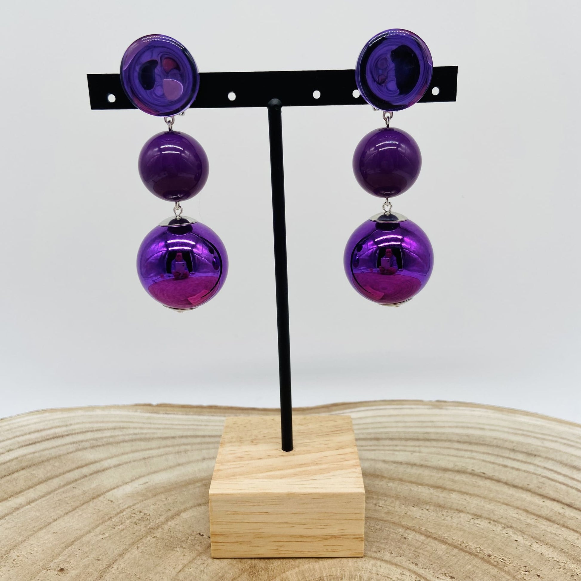 Boucles d'oreilles boules violettes - Francine BRAMLI